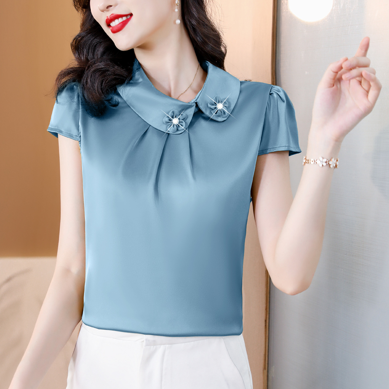 PF1836#重磅真丝上衣女短袖小衫 夏季宽松洋气桑蚕丝衬衣纯色