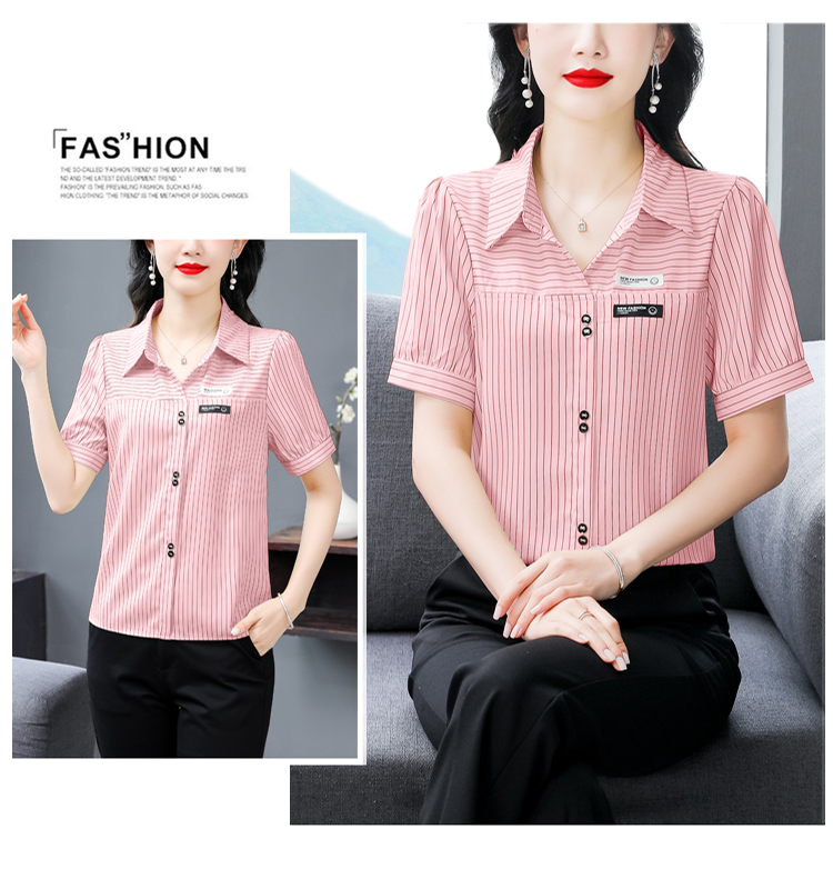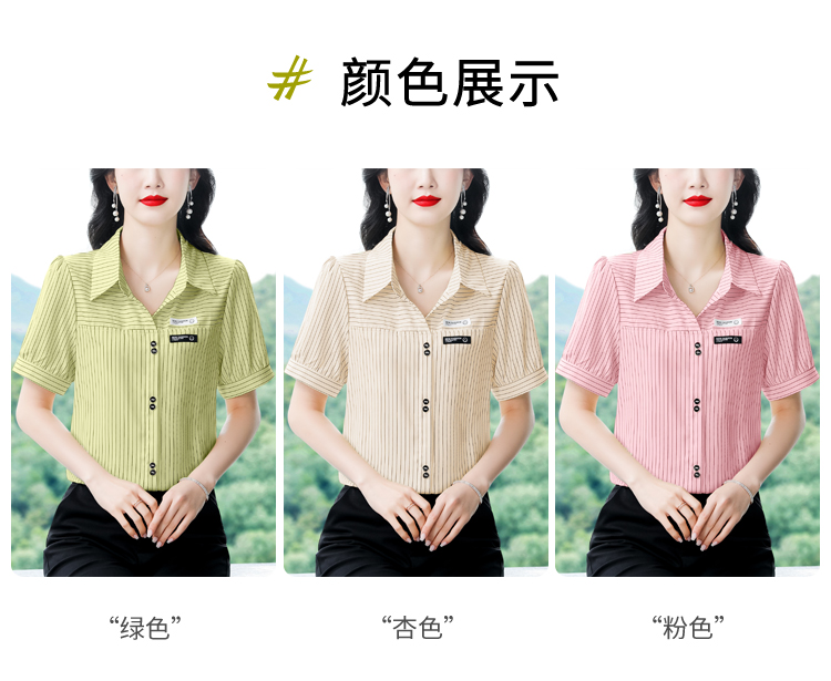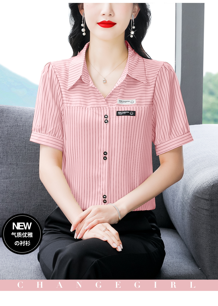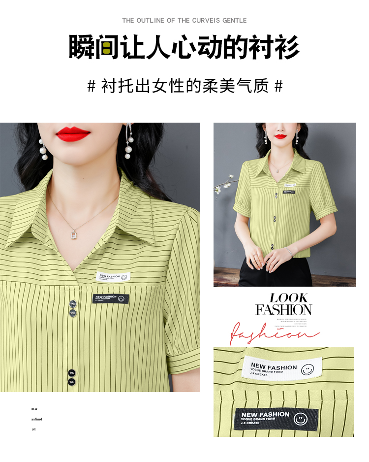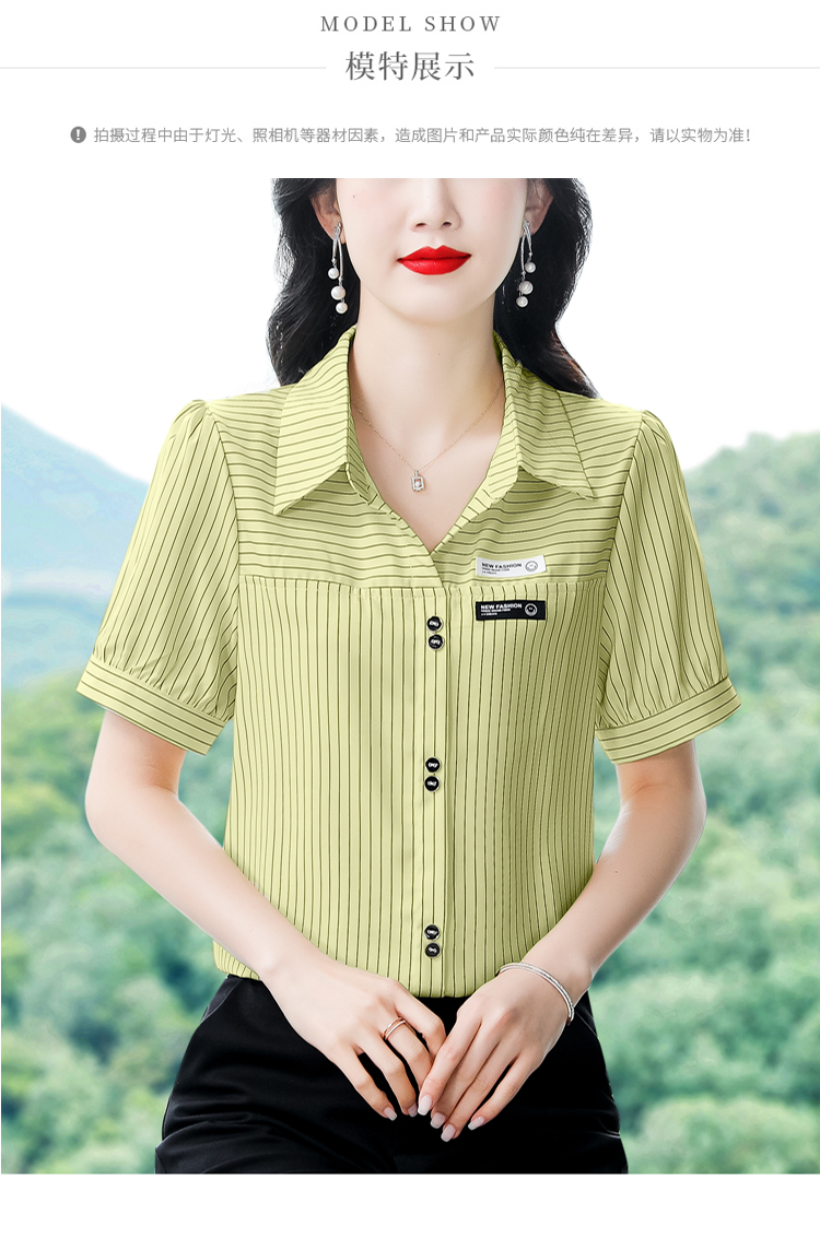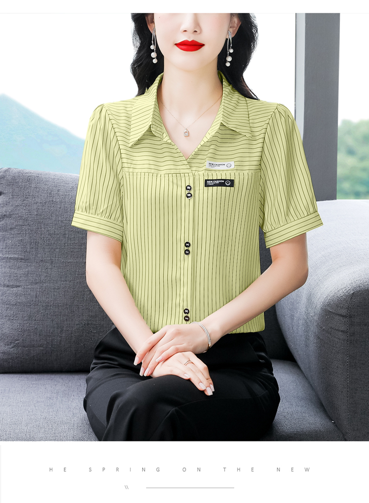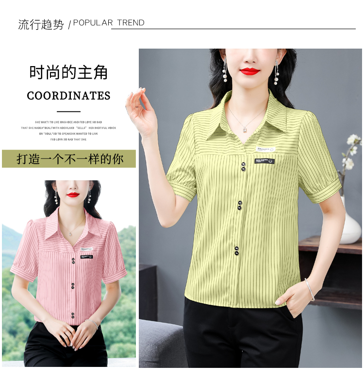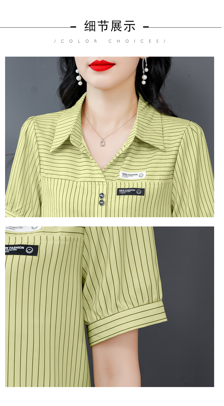 PF1860#夏装新款 polo领短袖条纹衬衫女休闲洋气减龄雪纺开衫上衣潮