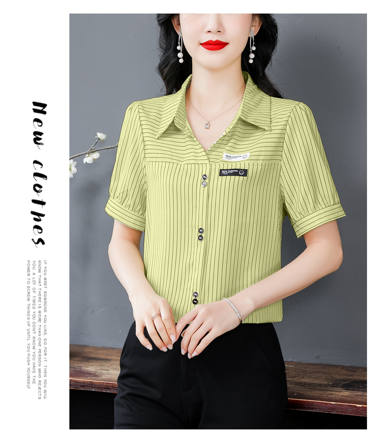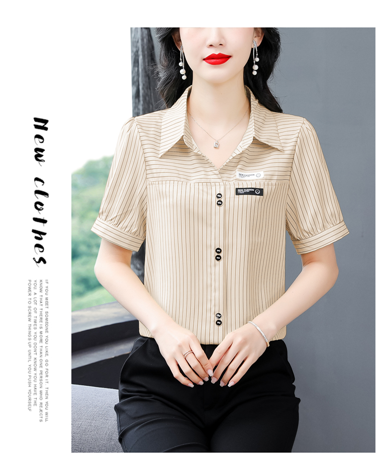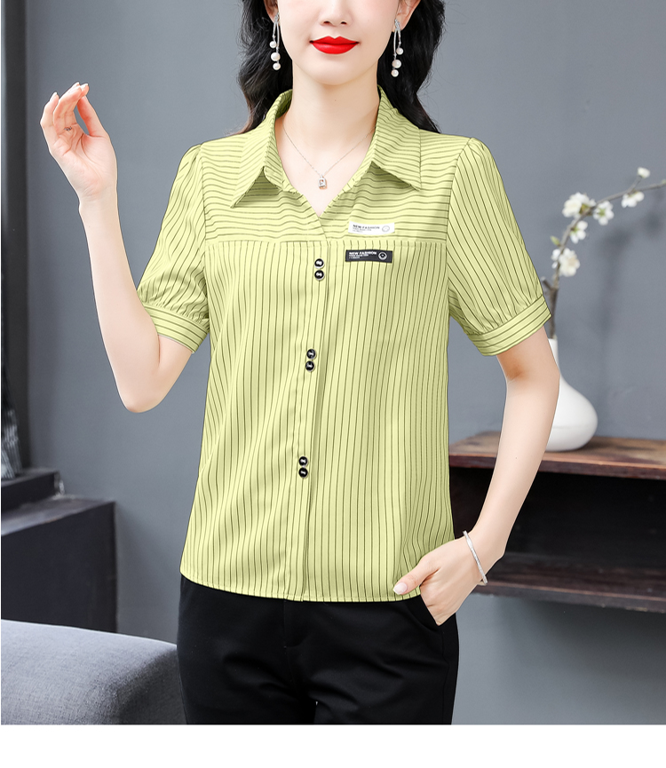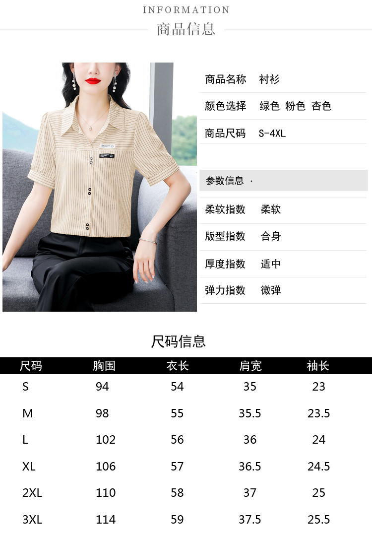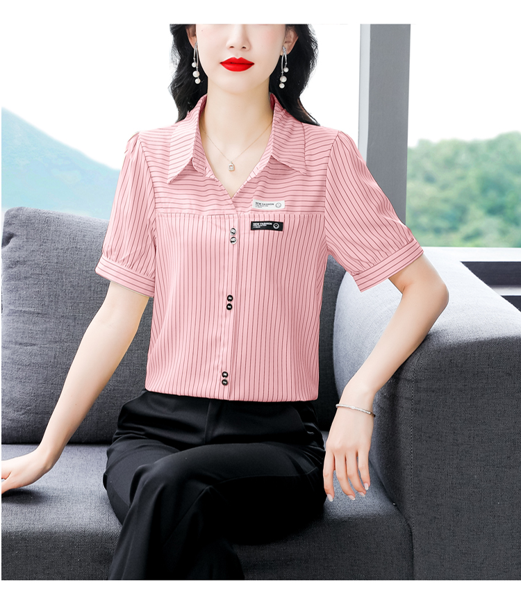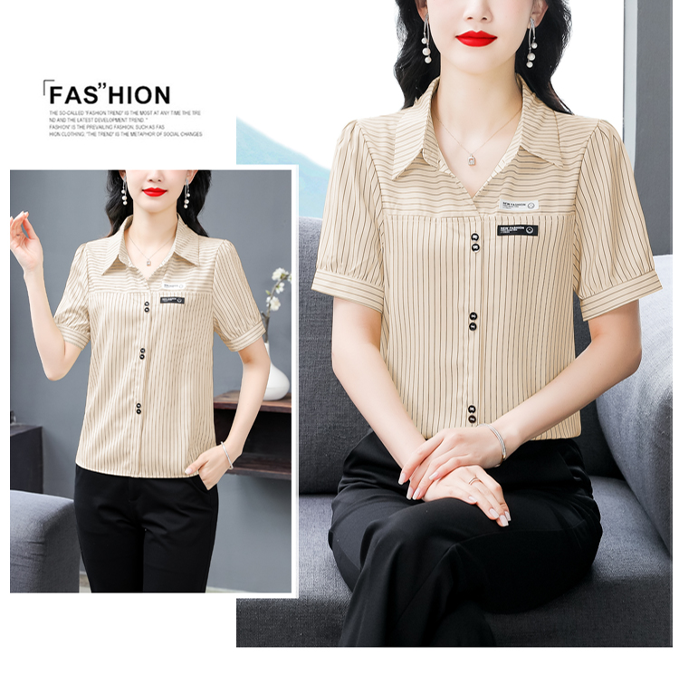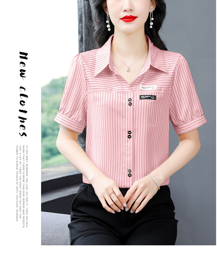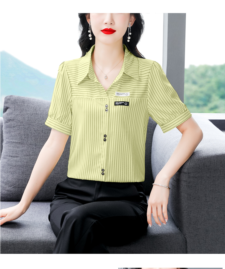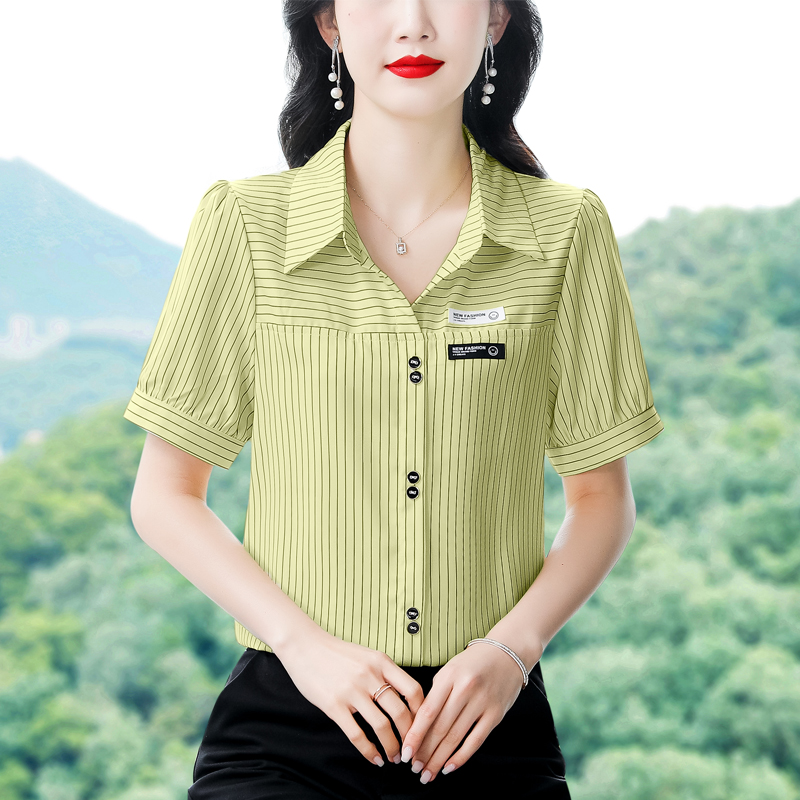 PF1860#夏装新款 polo领短袖条纹衬衫女休闲洋气减龄雪纺开衫上衣潮