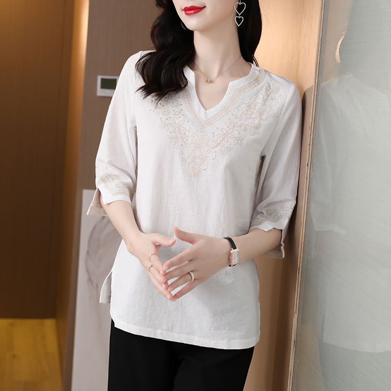 PF1869#日系女装 夏季精致手工重工花型刺绣小宽松中长弧形领7分袖罩衫