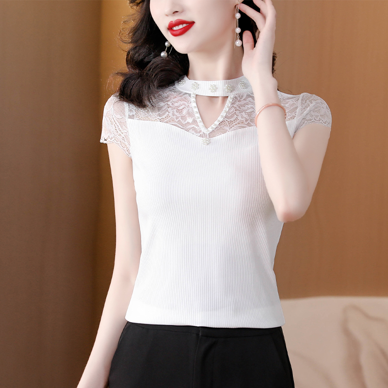 PF1872#新款棉T蕾丝花边拼接修身洋气打底衫