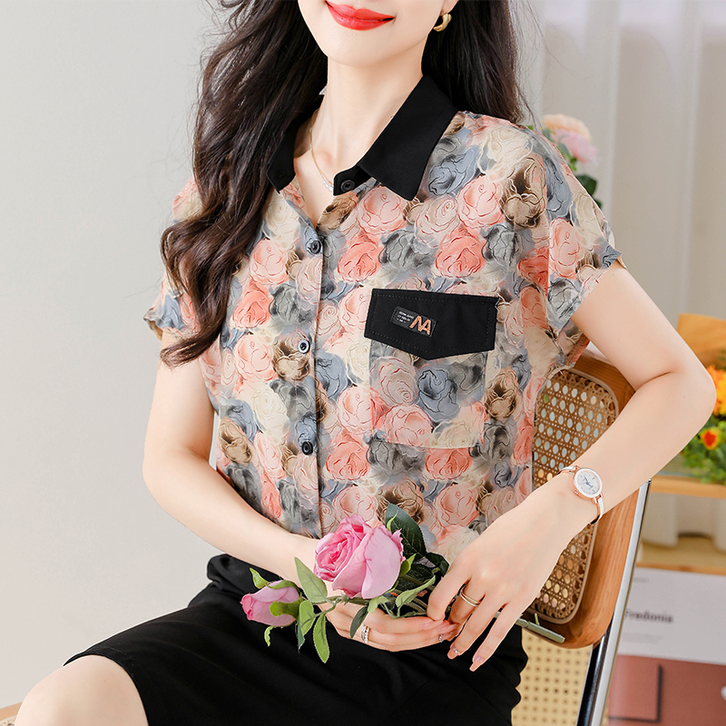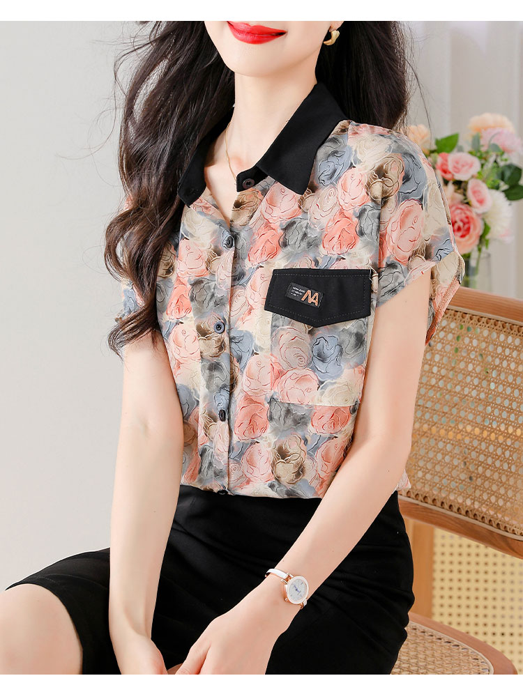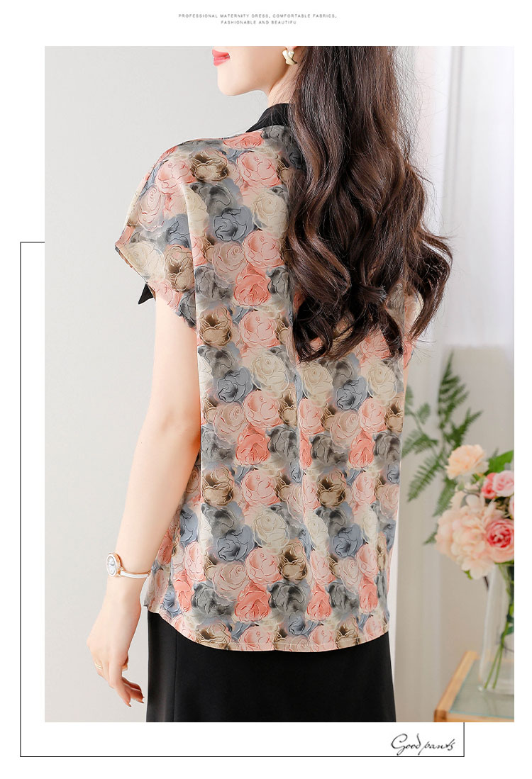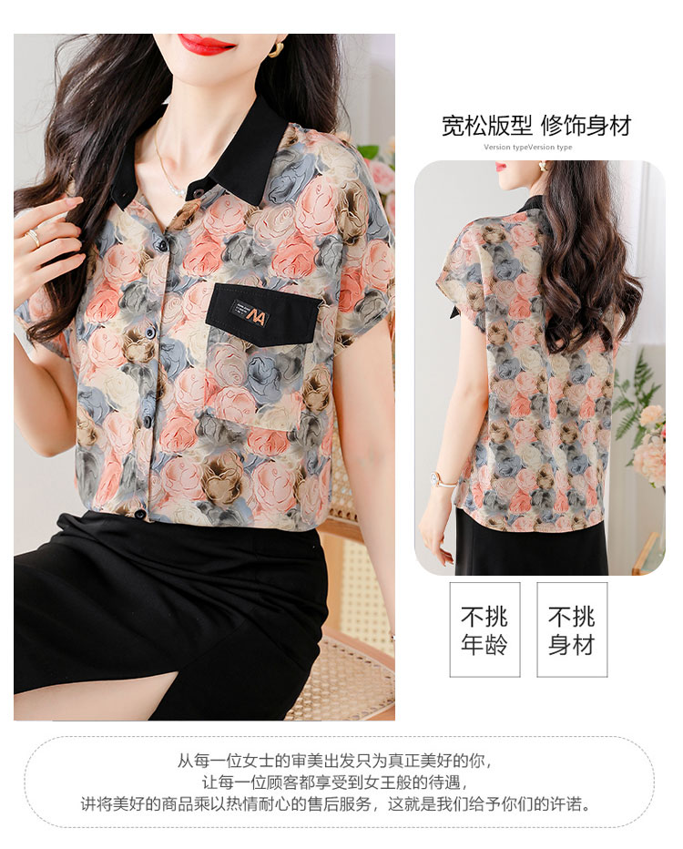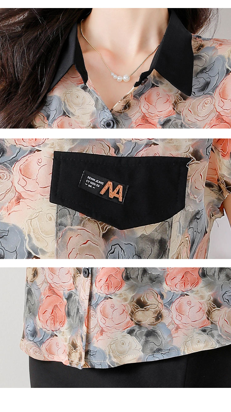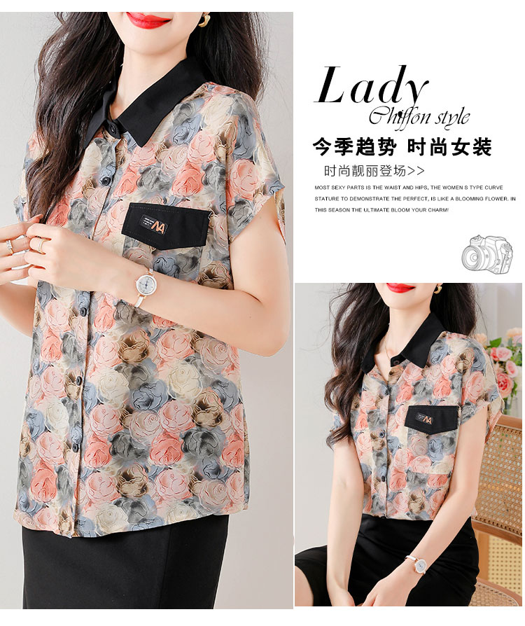PF1878#新品雪纺印花植物花卉衬衣宽松型衬衫