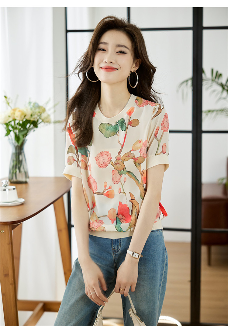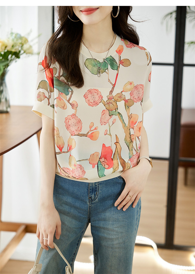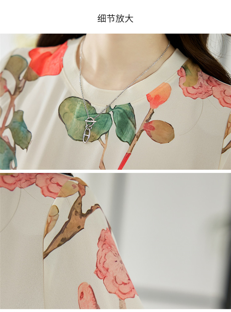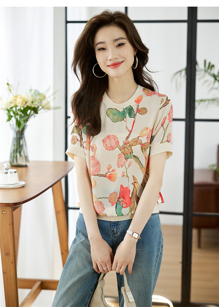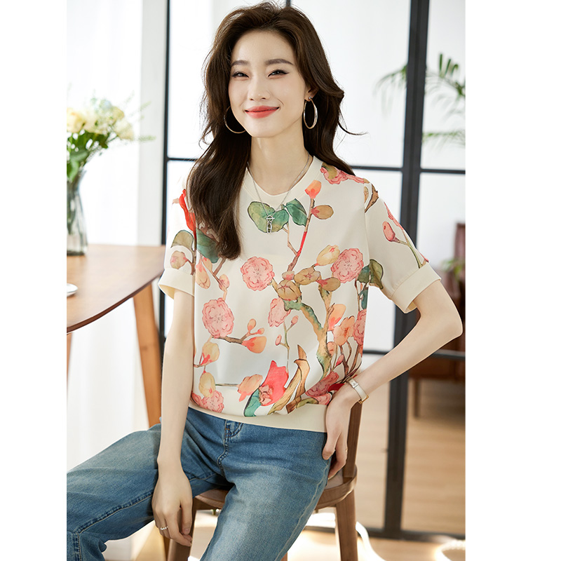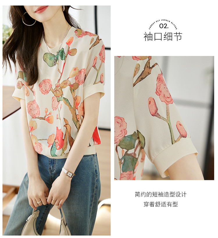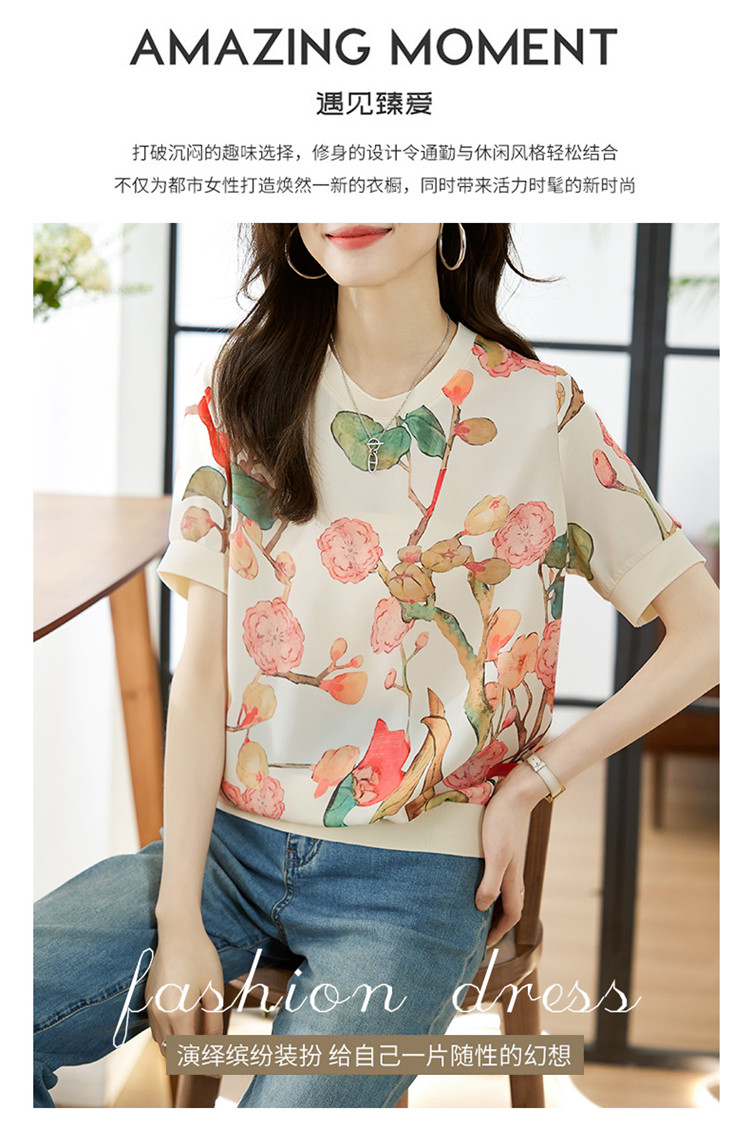 PF1893#女短袖 夏季新款显瘦高端乱麻印花气质半袖T恤