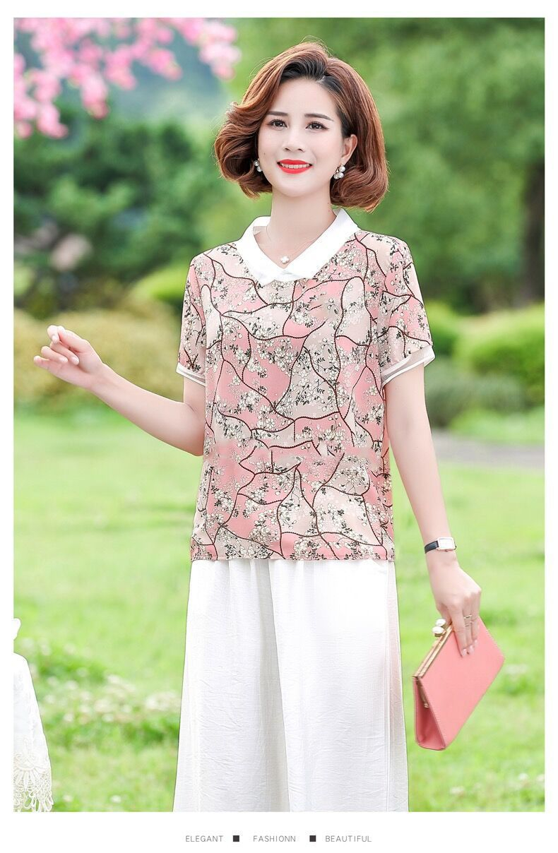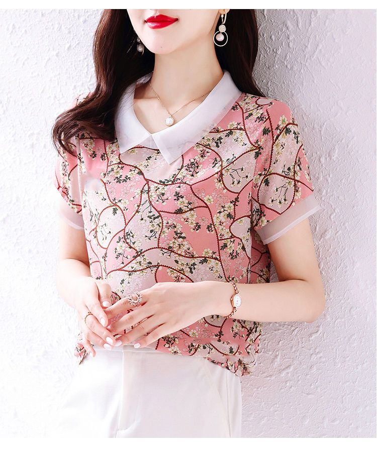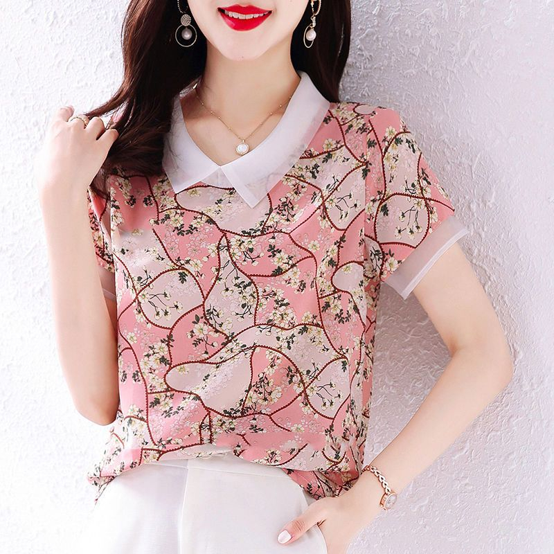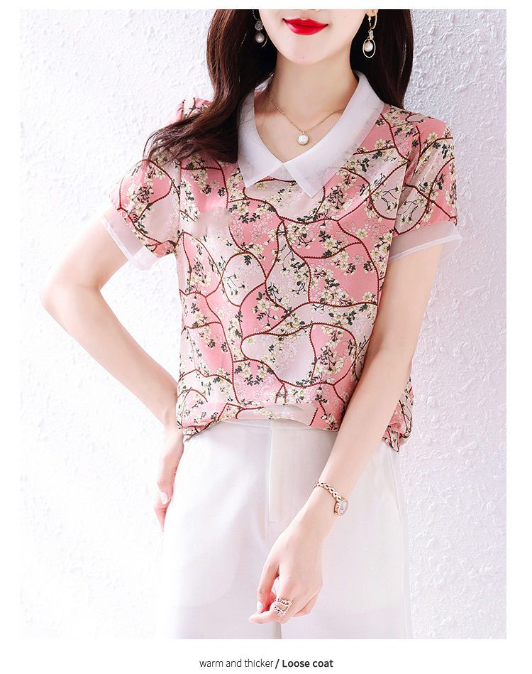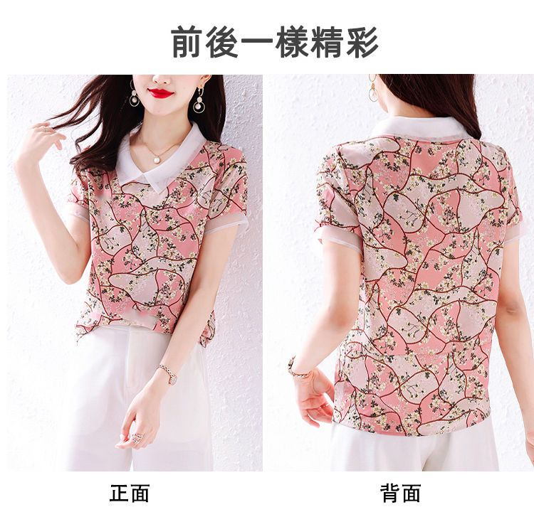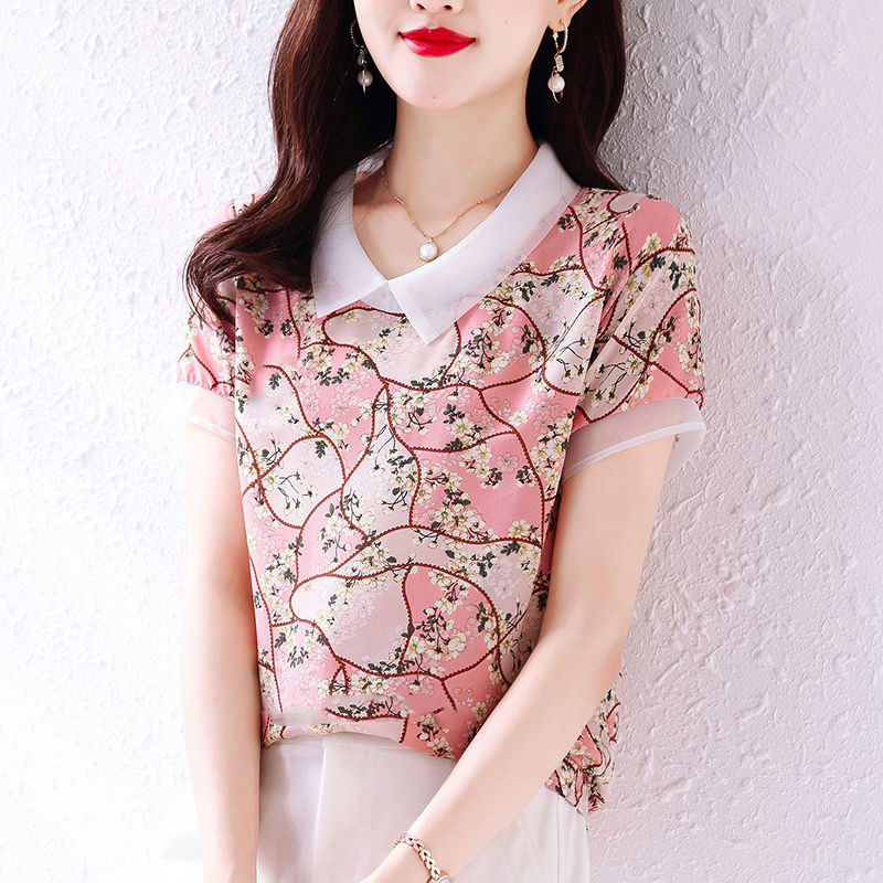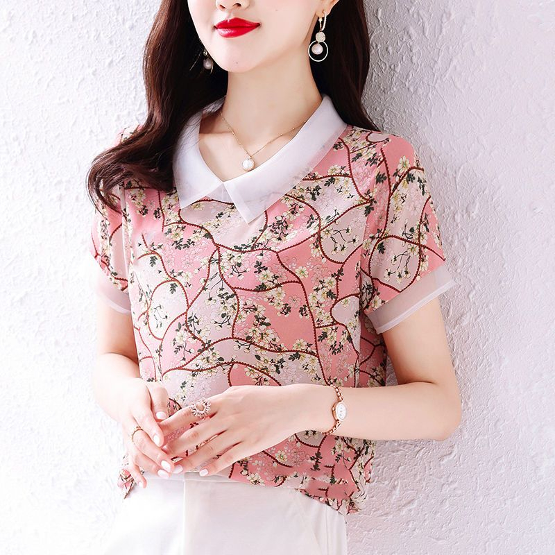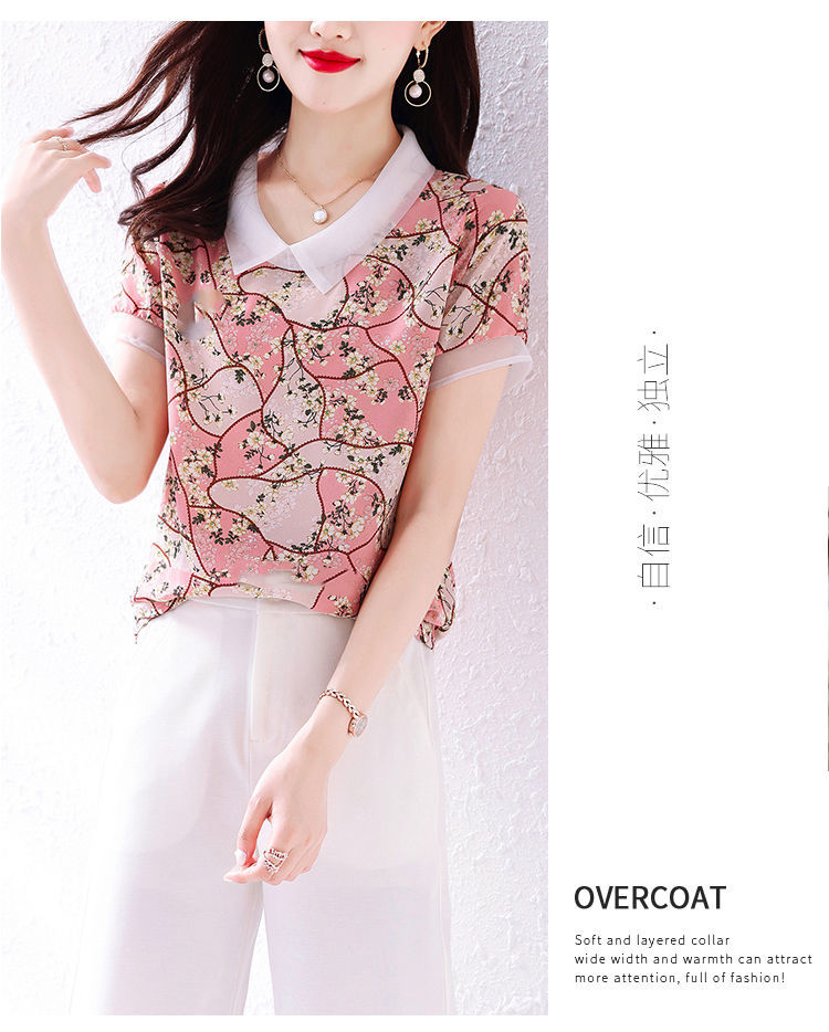 PF1913#新款碎花雪纺衬衫女士夏季装薄款宽松短袖上衣漂亮洋气女衫