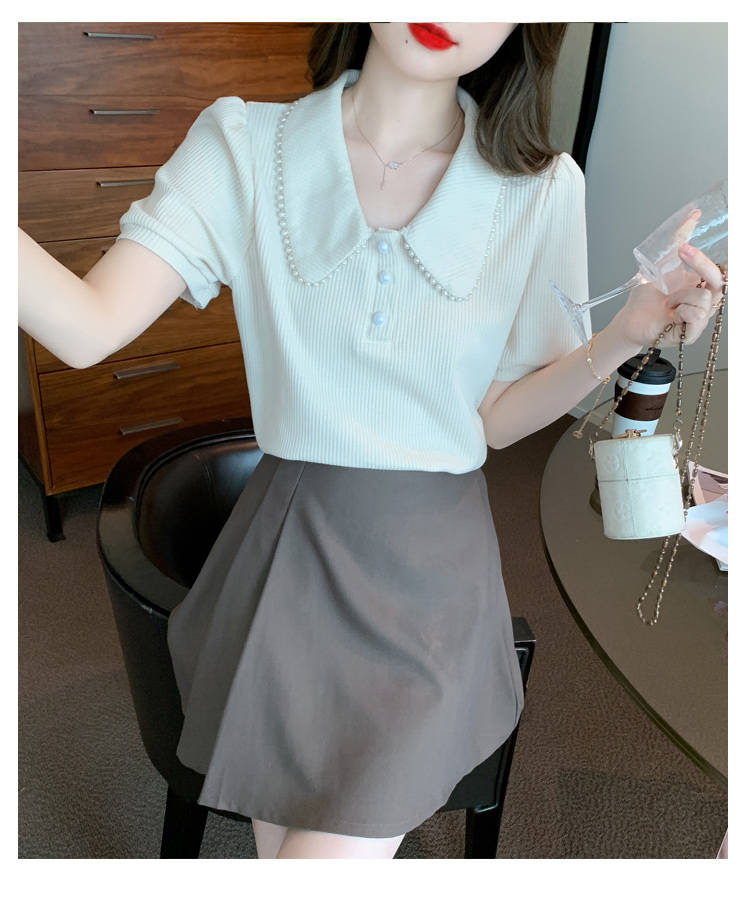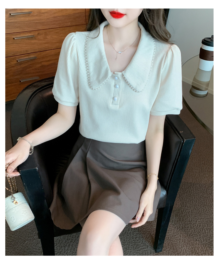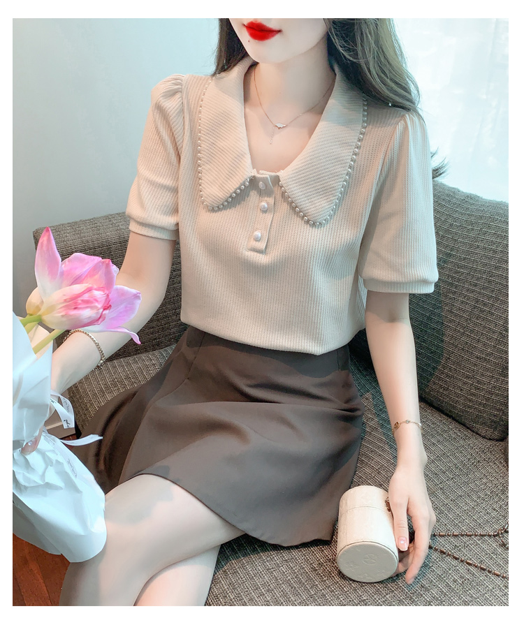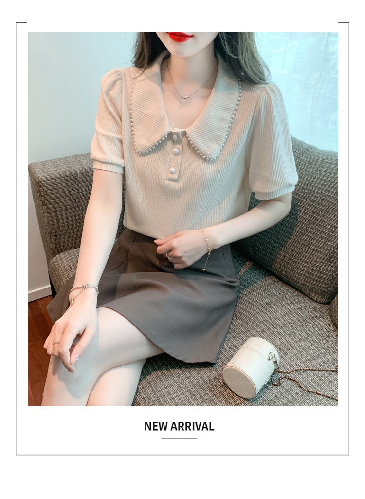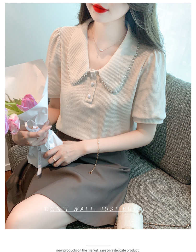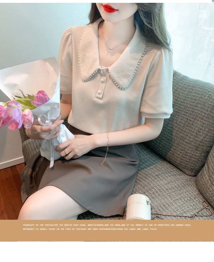 PF1928#夏季新款娃娃领套头雪纺衫衬衫韩版洋气短袖上衣小衫女