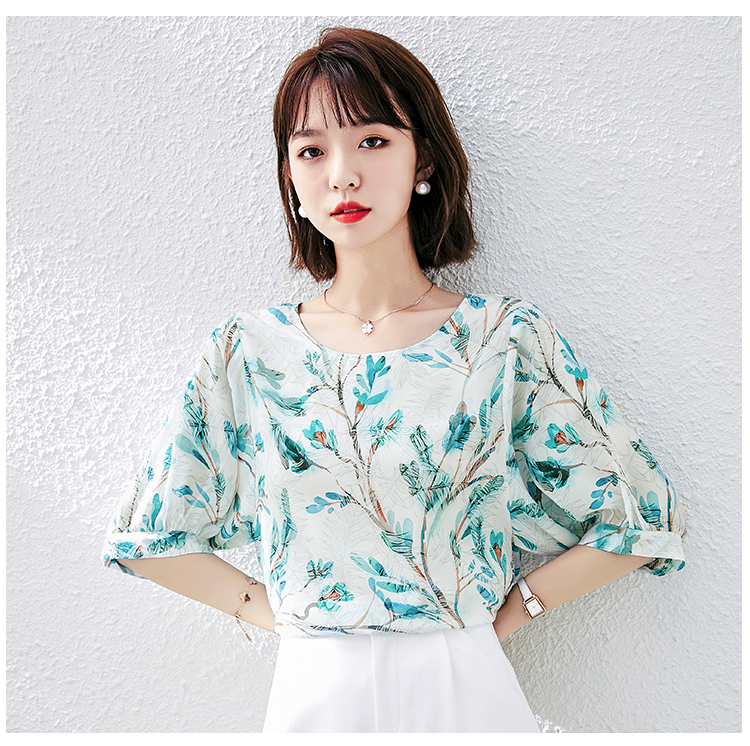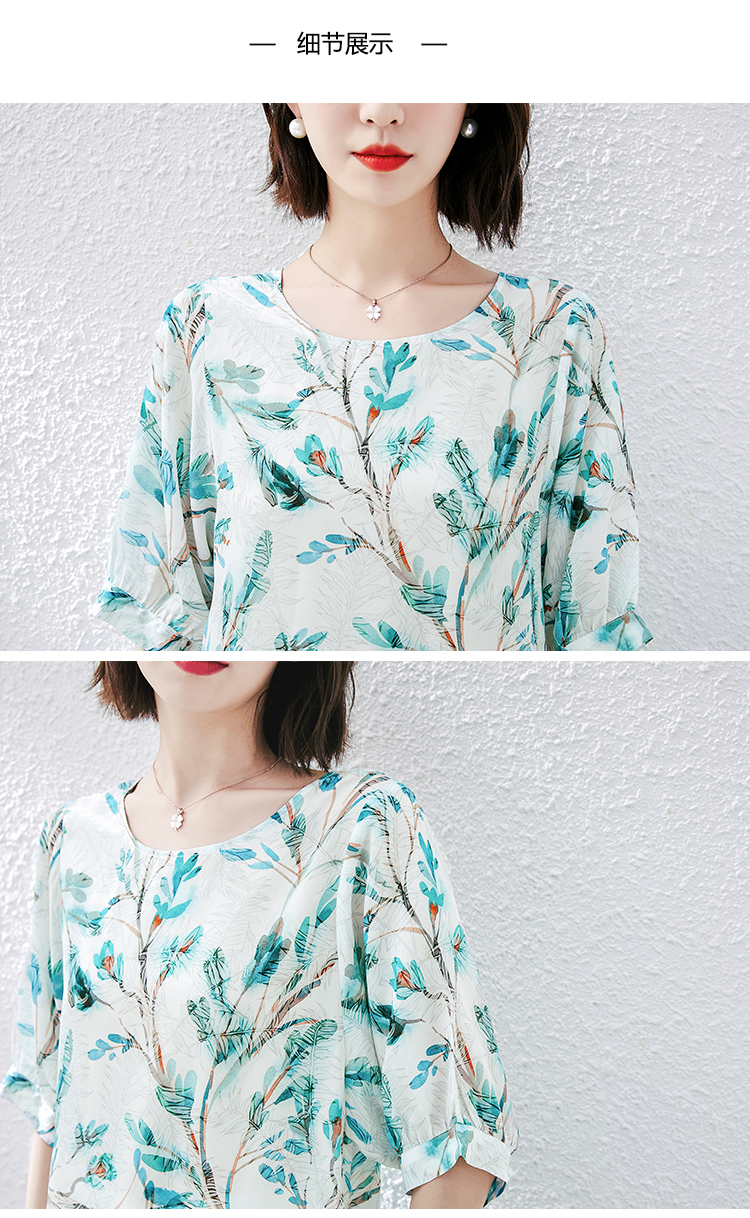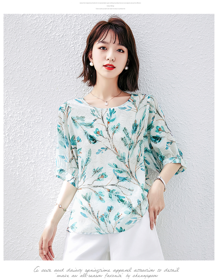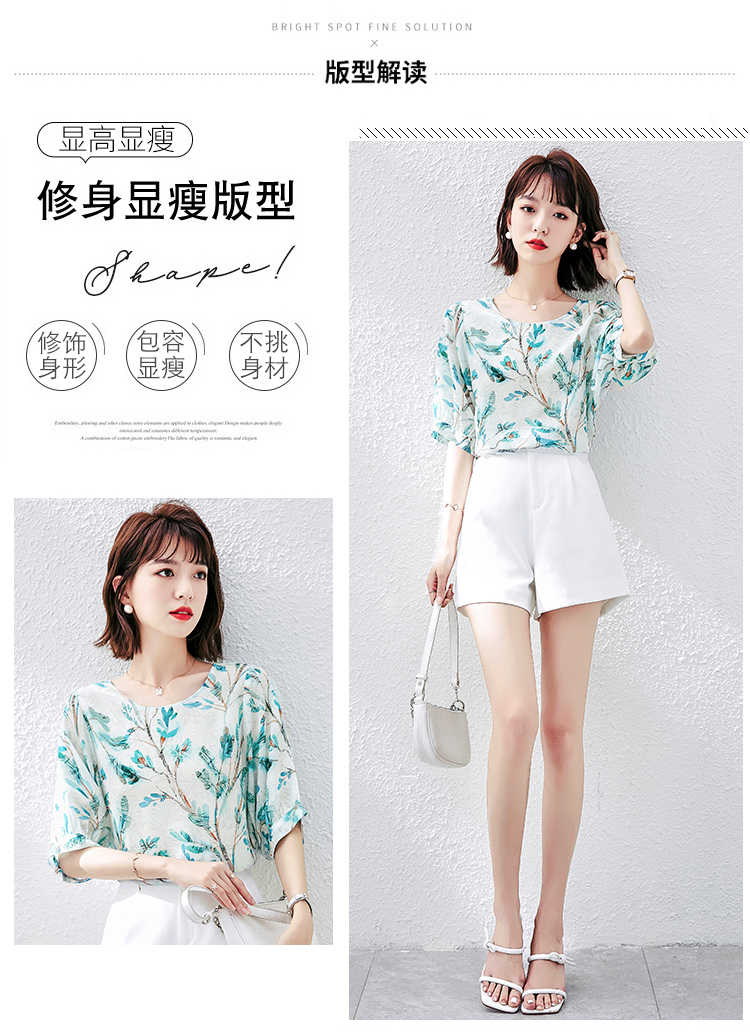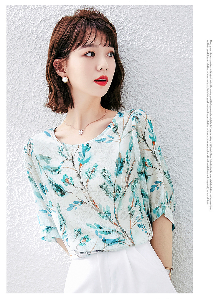 PF1997#雪纺衫短袖衬衫女夏 新款气质印花桑蚕丝半袖衬衣上衣女