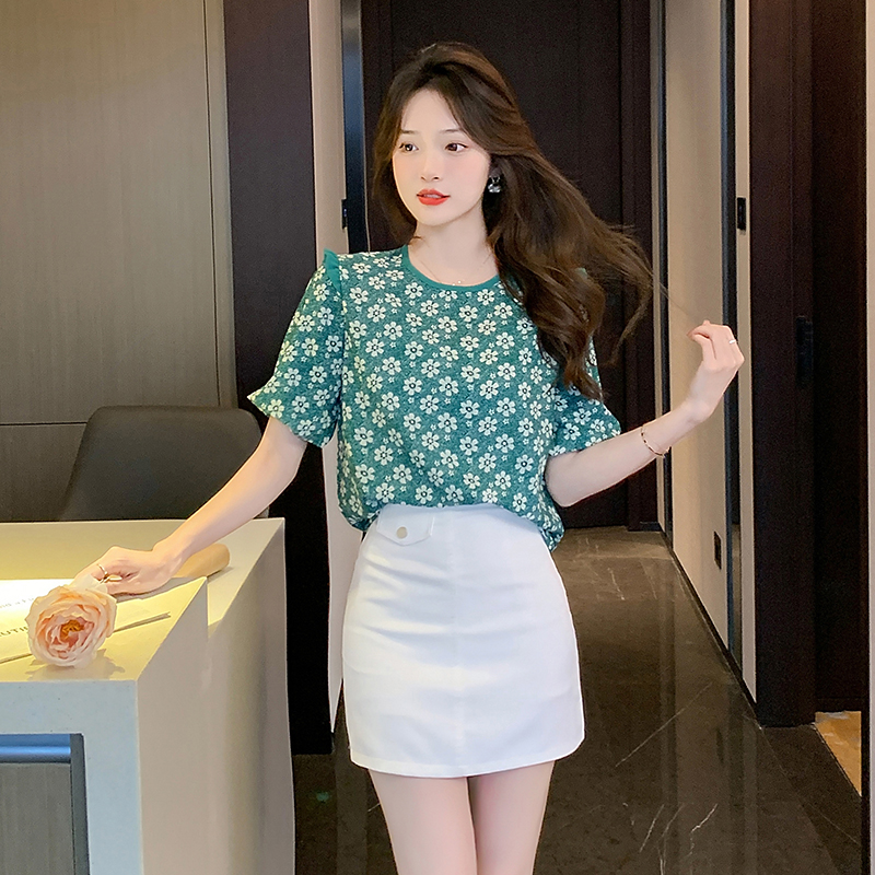 PF2001#夏季新品小花设计时尚休闲宽松韩版短袖女式t恤