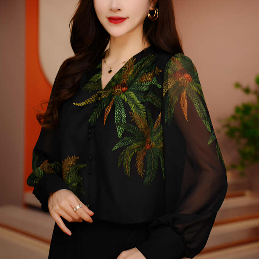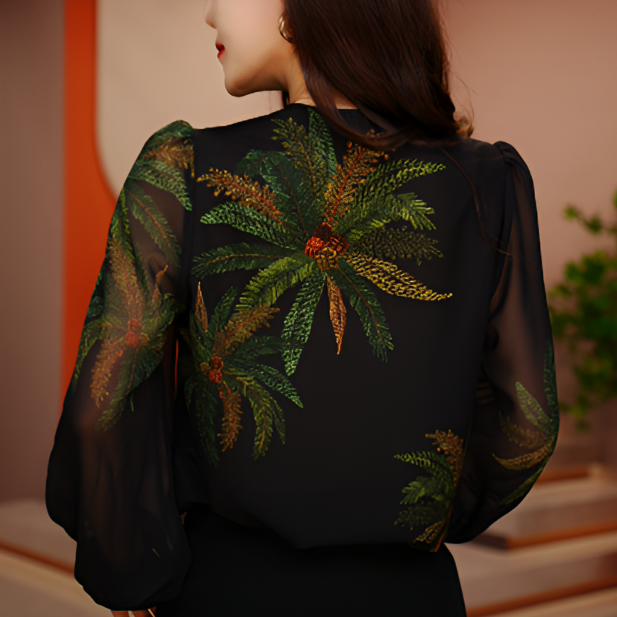 PF2028#新款肌肤网纱高领显瘦减龄透气印花套头小衫