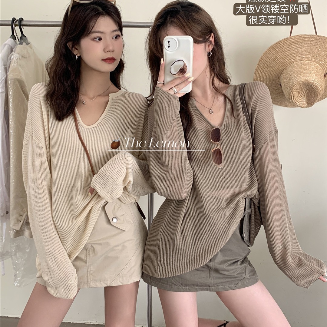 PF2115#the lemon镂空针织衫女薄款罩衫 夏季新款上衣宽松慵懒风