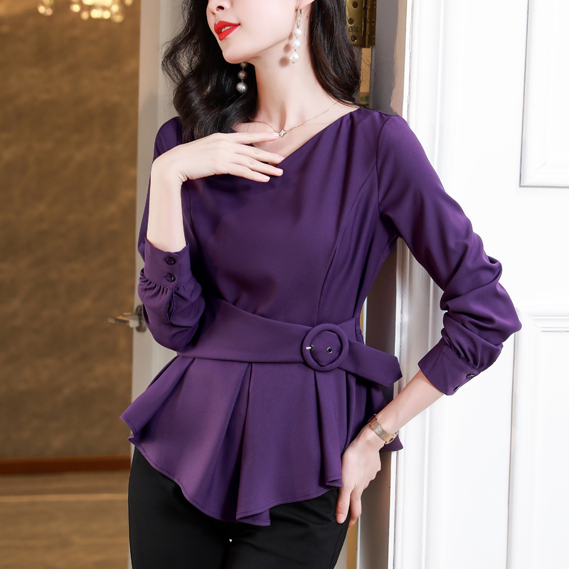 BY20#洋气薰衣草紫设计感衬衫女春装新款气质收腰显瘦衬衣v领别致