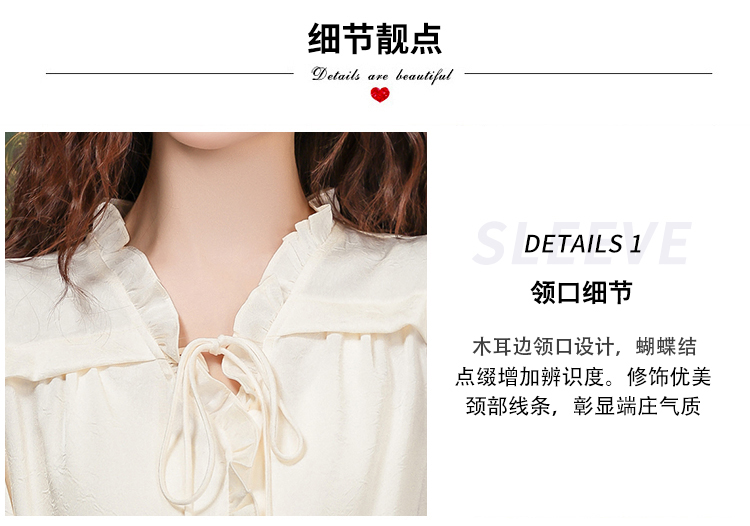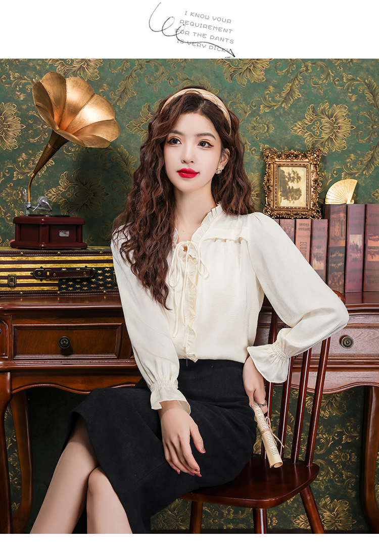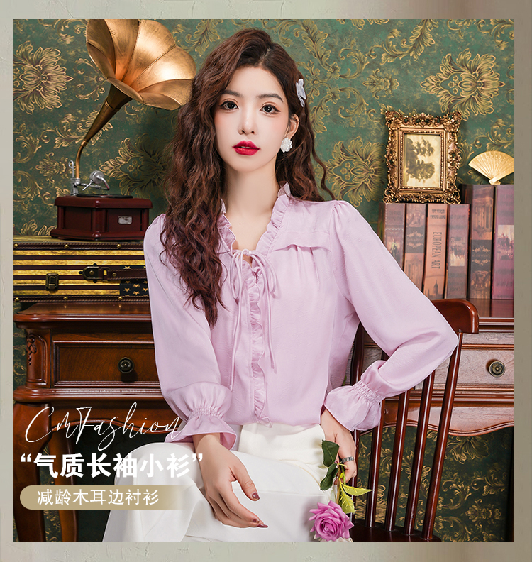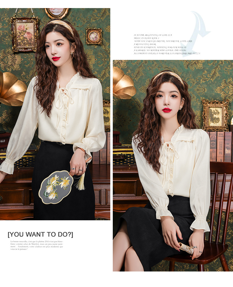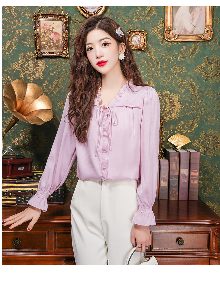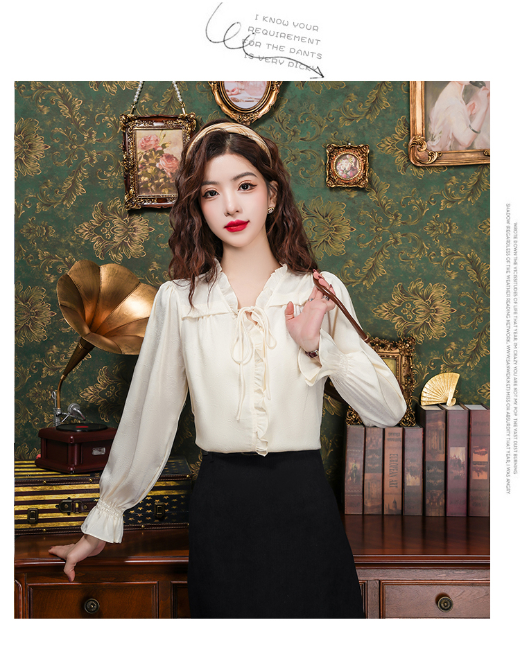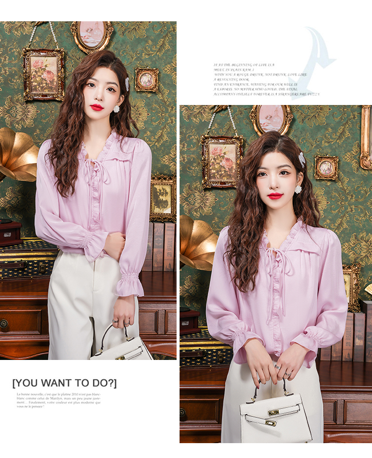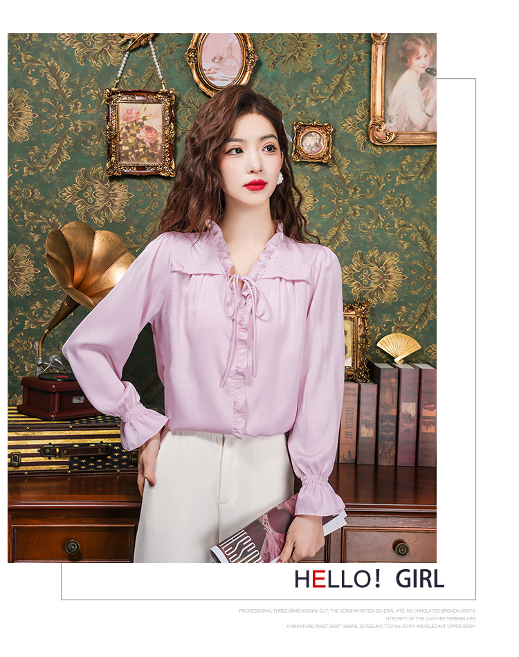 PF2442#法式温柔风蕾丝衫/雪纺衫韩版大气甜美系带荷叶边长袖洋气上衣女