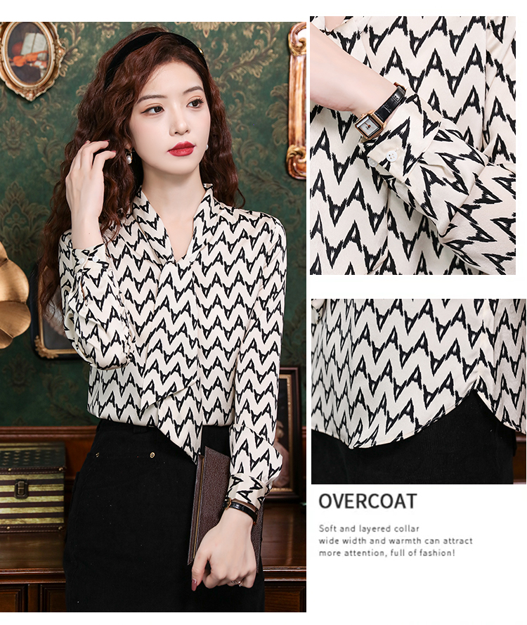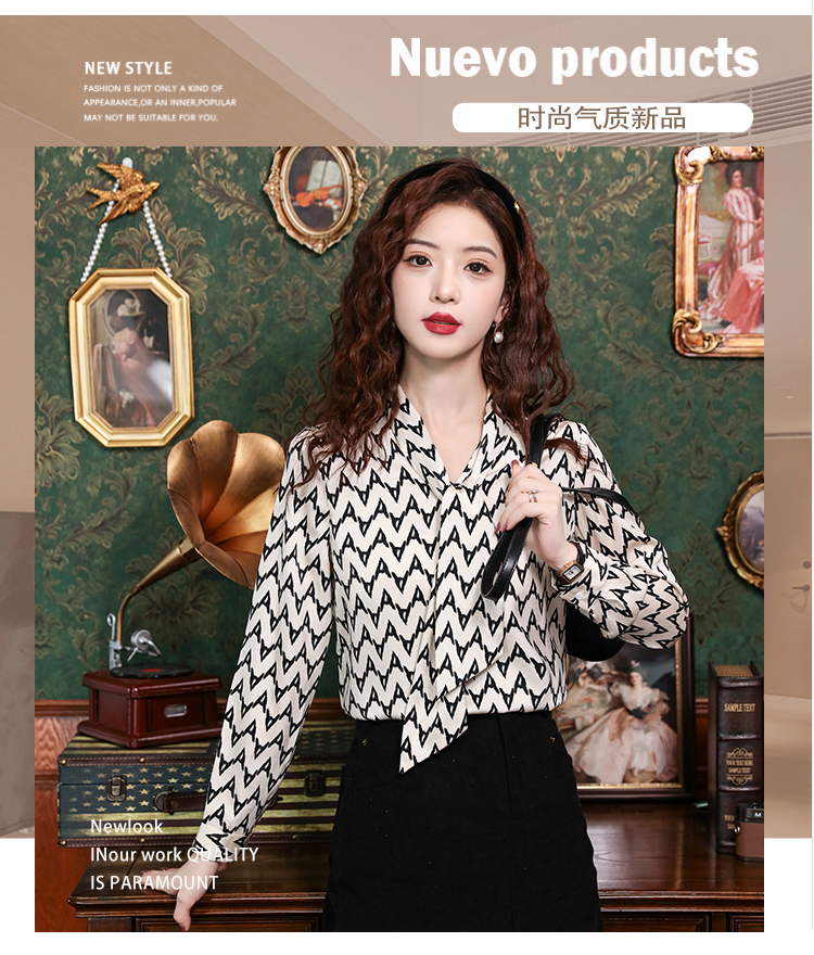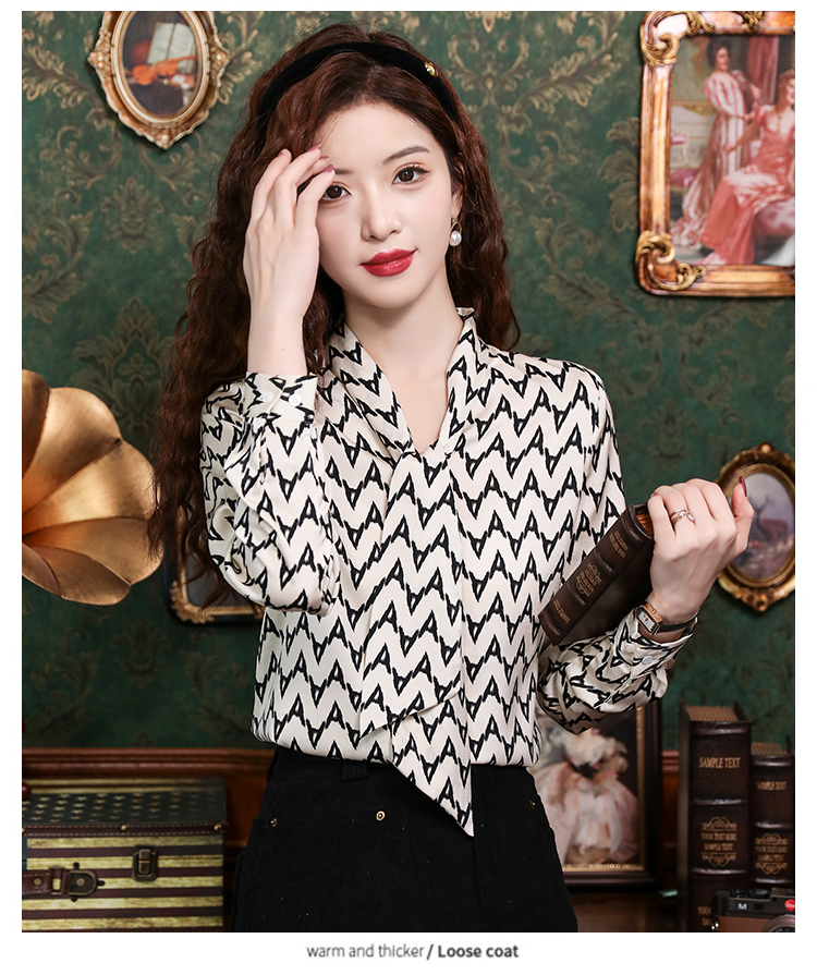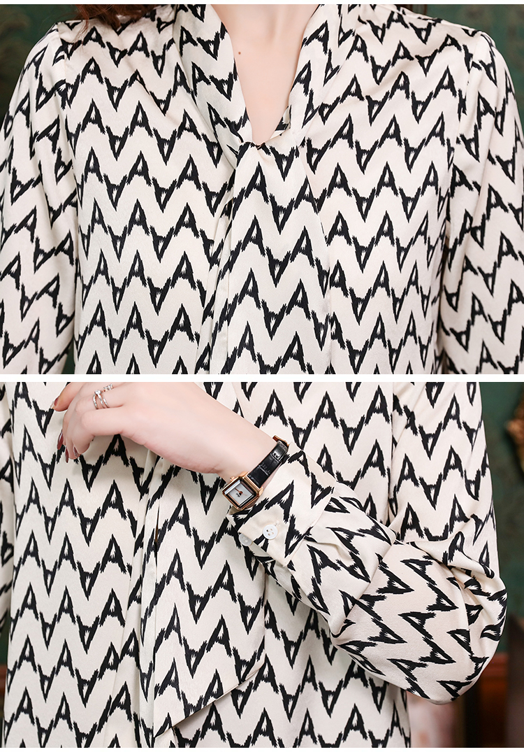 PF2473#新款知性OL花色系带领衬衫气质缎面减龄通勤小众衬衣