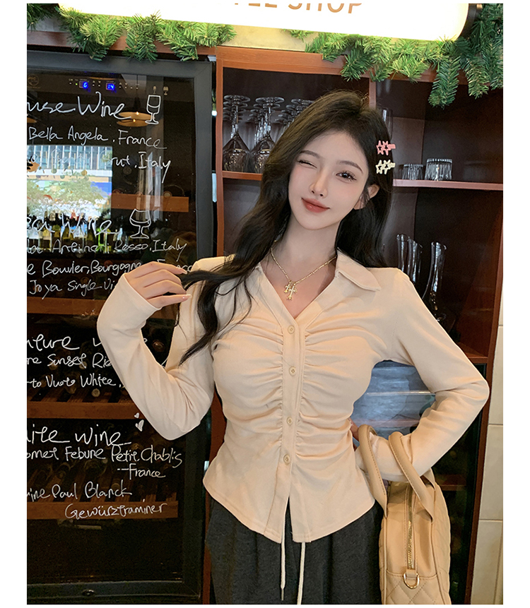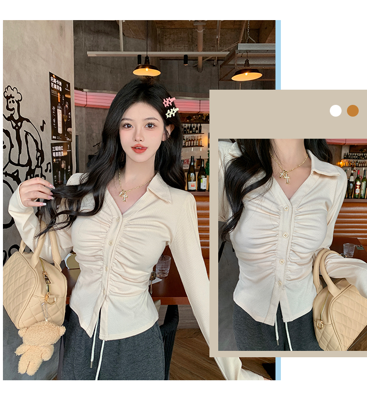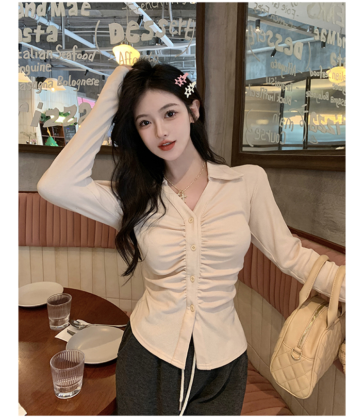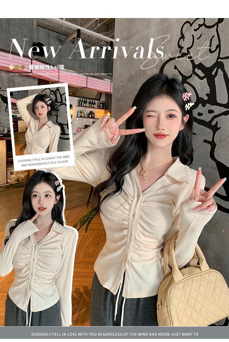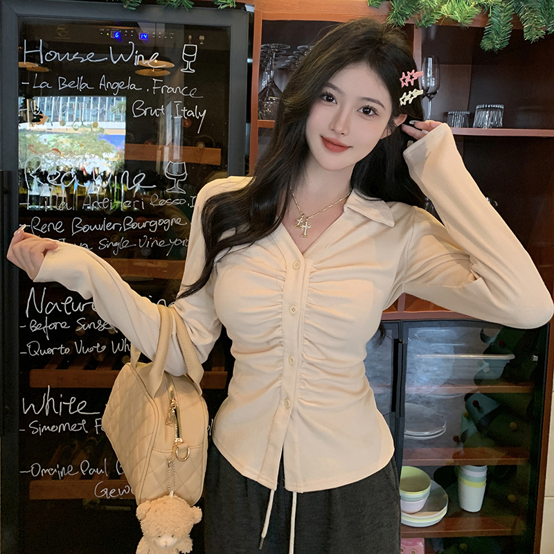 PF2564#大码微胖春季内搭褶皱长袖正肩衬衫胖MM设计感小众显瘦上衣