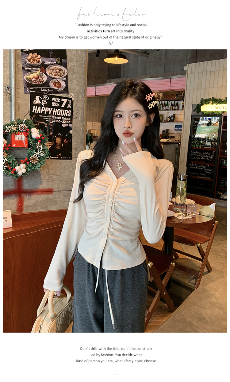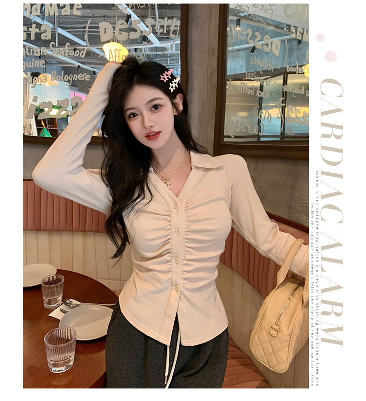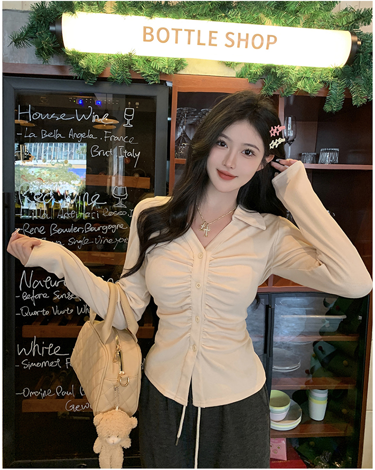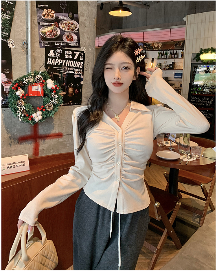 PF2564#大码微胖春季内搭褶皱长袖正肩衬衫胖MM设计感小众显瘦上衣