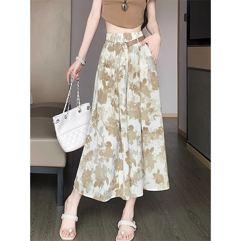 PF2701#原版做工夏季薄款2024新款高腰宽松显瘦水墨印花八分阔腿裤女