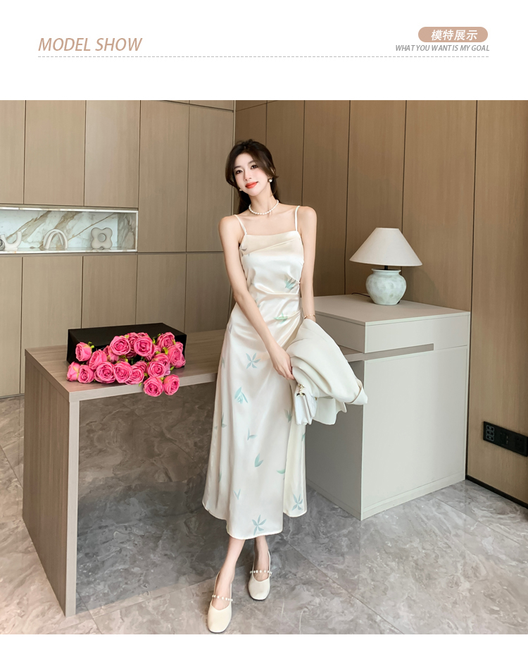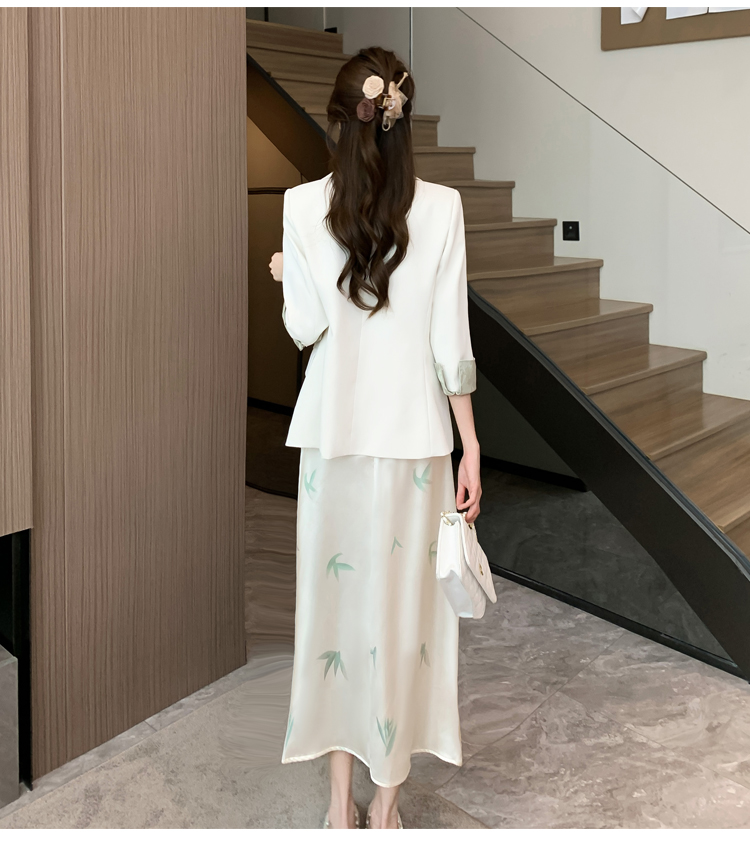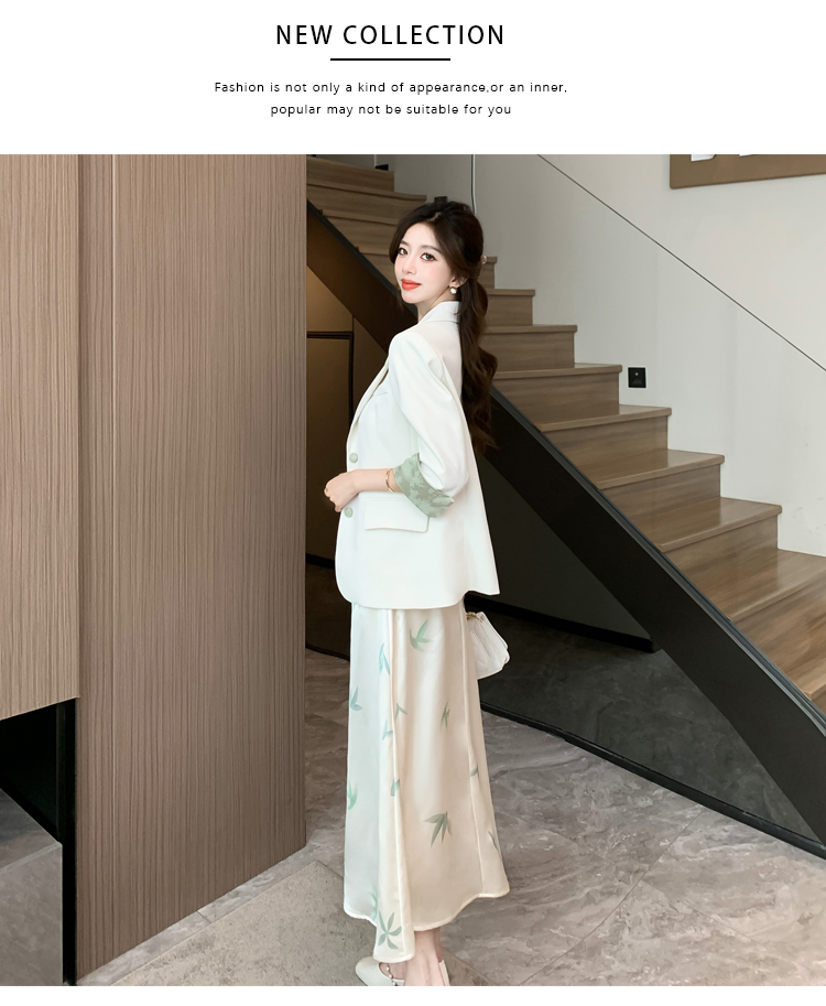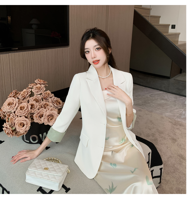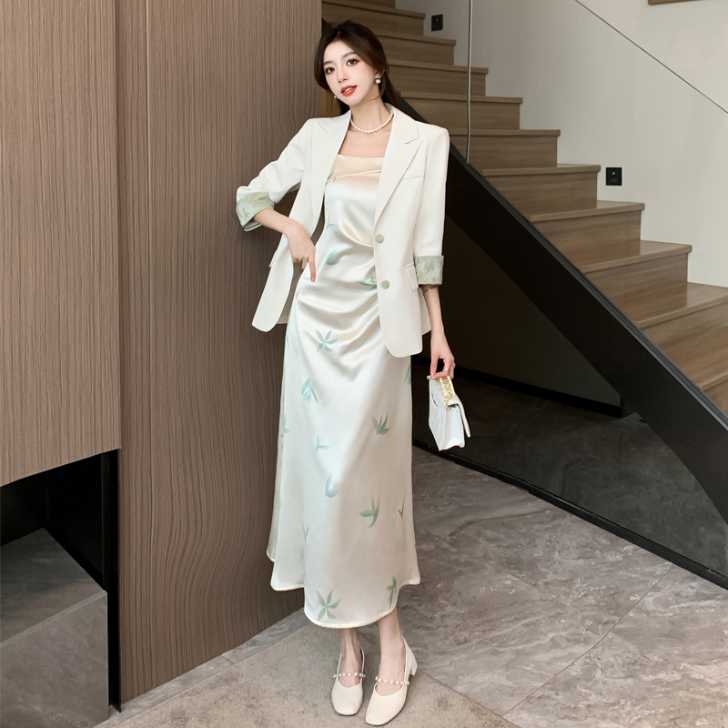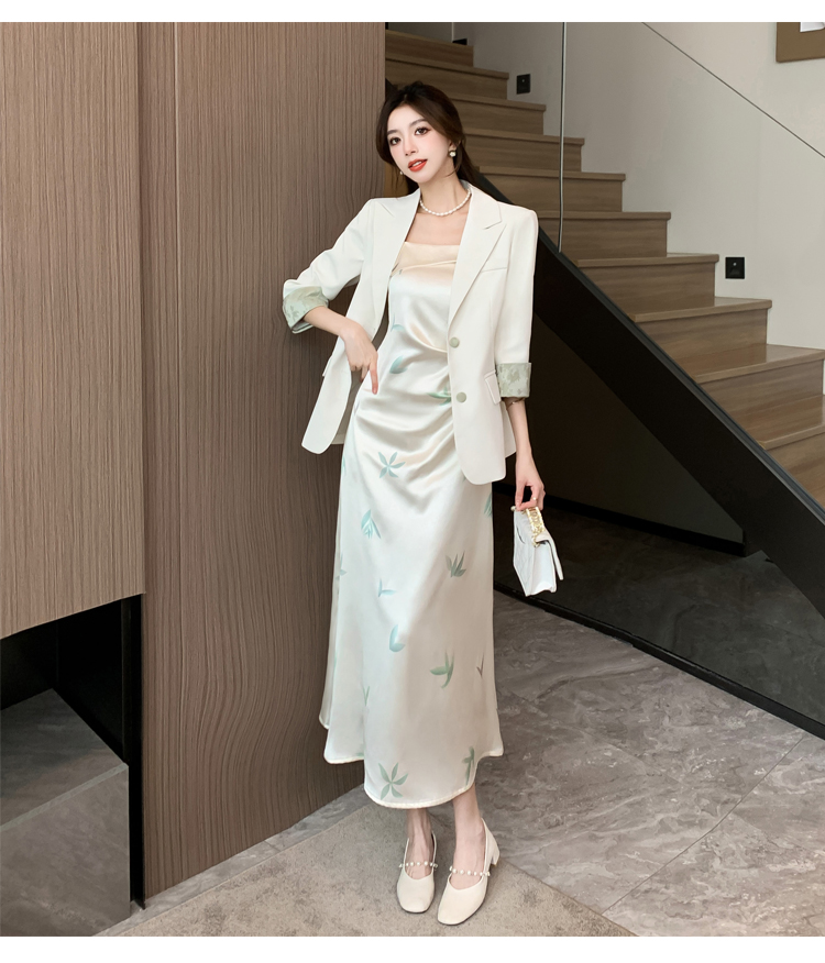 PF2728#白色西装碎花吊带裙套装女春夏七分袖温柔风通勤两件套