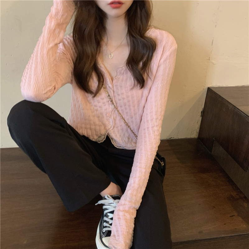 V领搭配蕾丝的设计流淌着甜美的少女气息