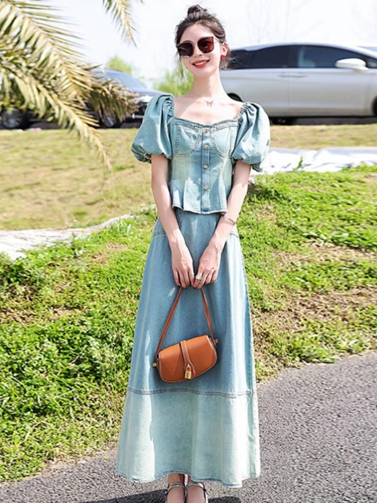 PF2902#牛仔连衣裙 新款女夏季时尚洋气质高级感高端品牌两件套装
