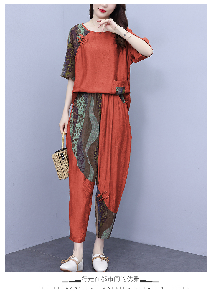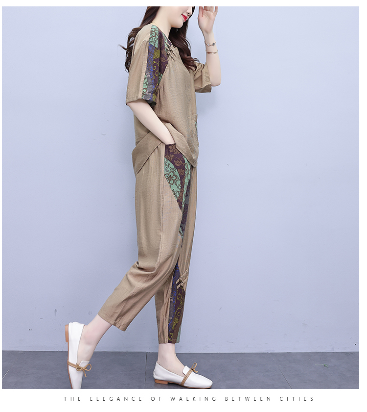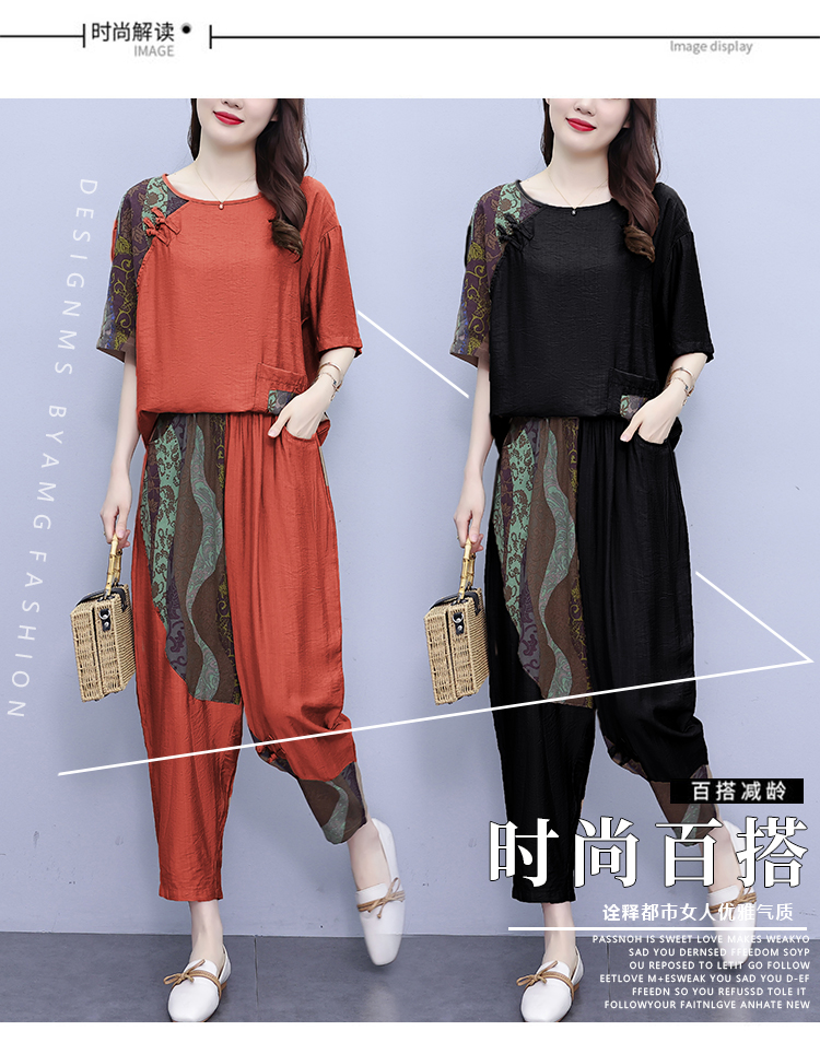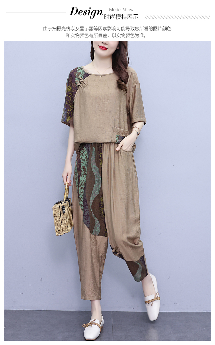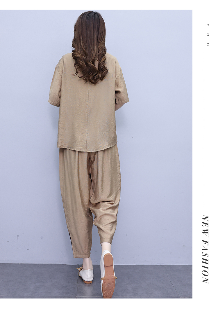 PF2918#大码套装 夏季新款洋气显瘦胖mm两件套宽松休闲棉麻套装