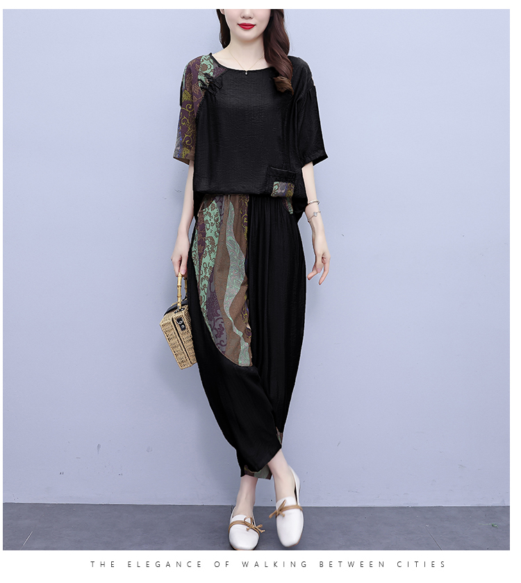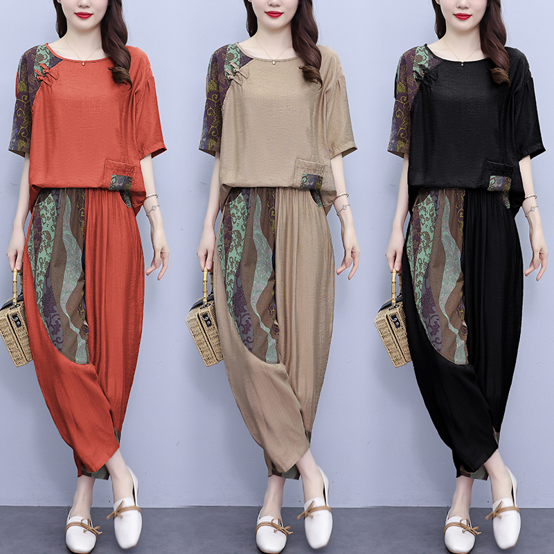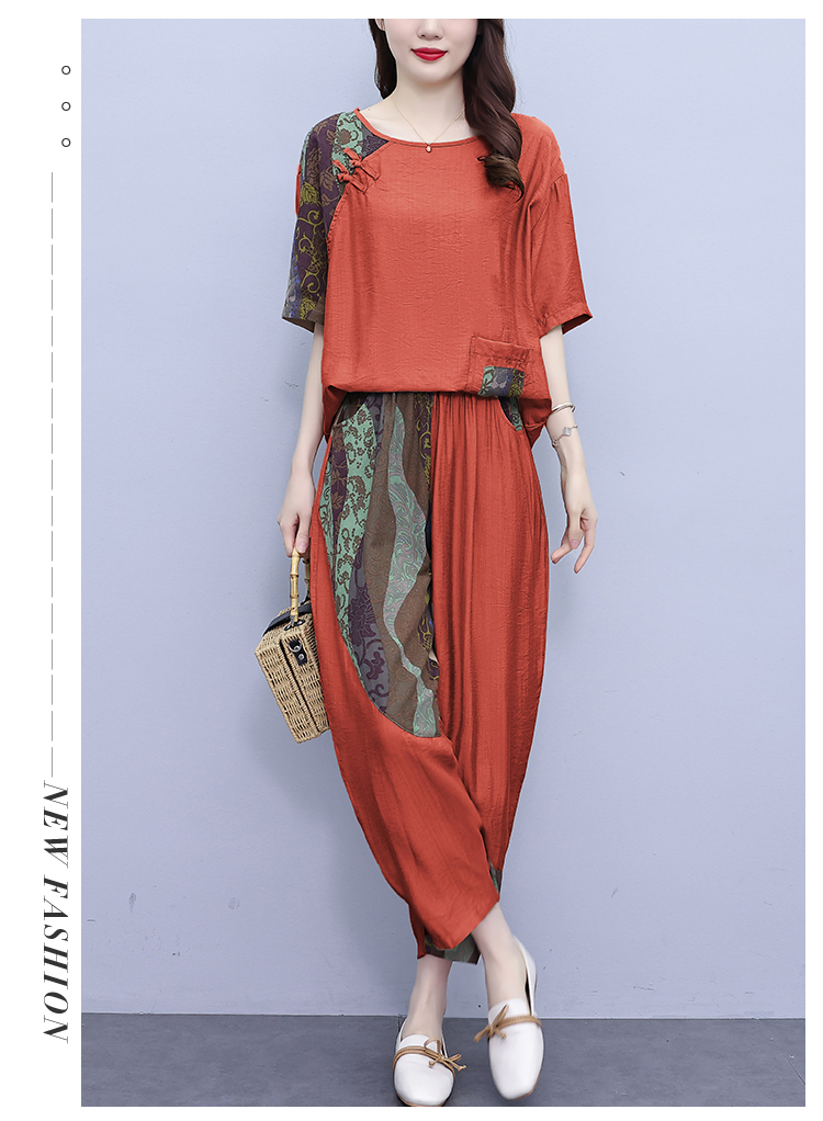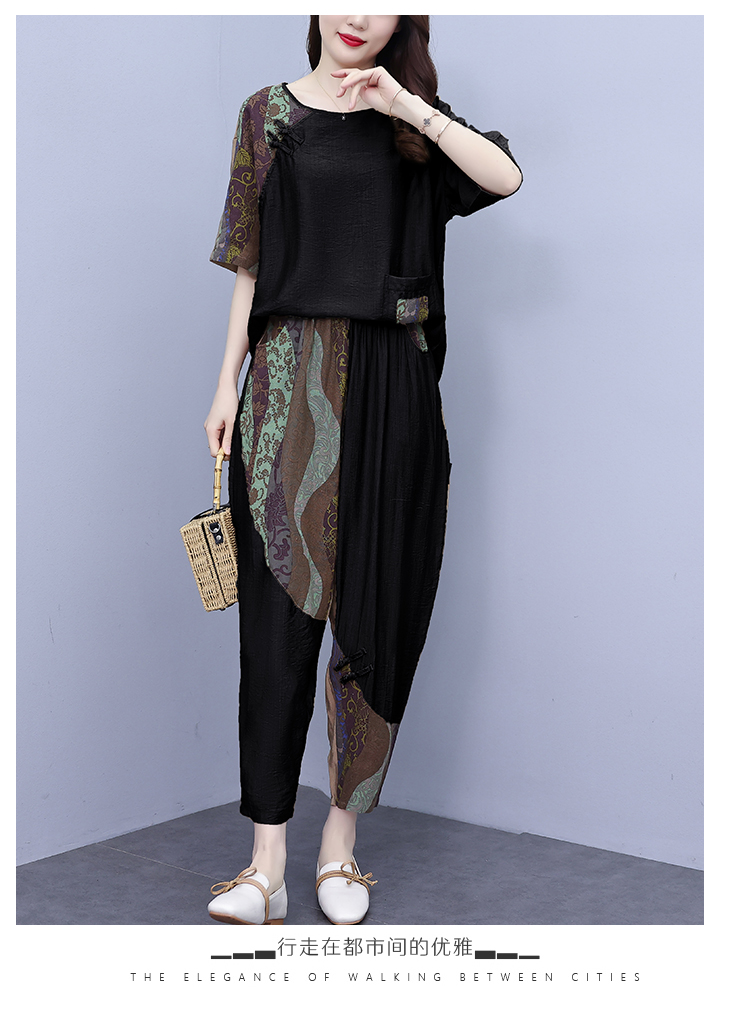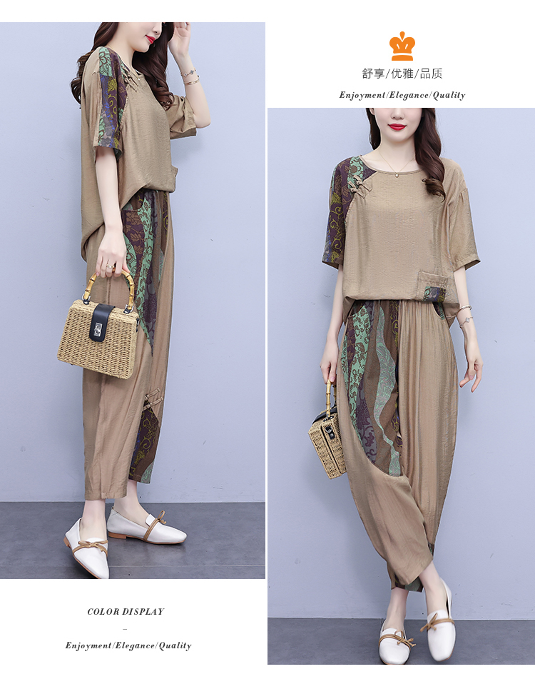PF2918#大码套装 夏季新款洋气显瘦胖mm两件套宽松休闲棉麻套装