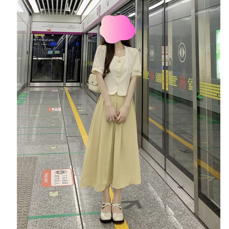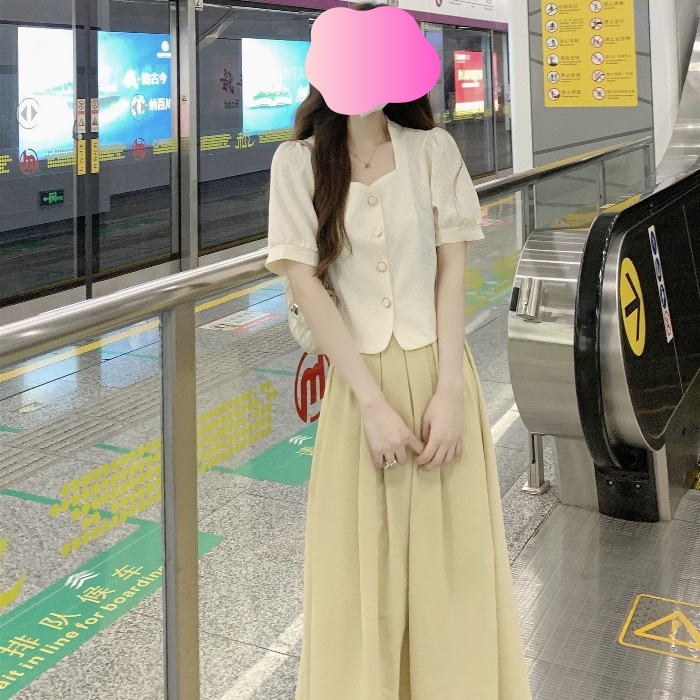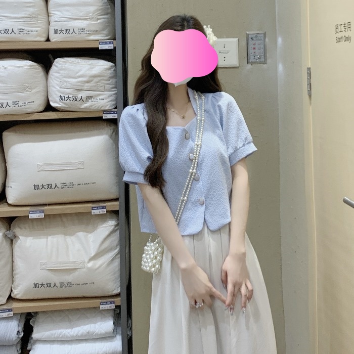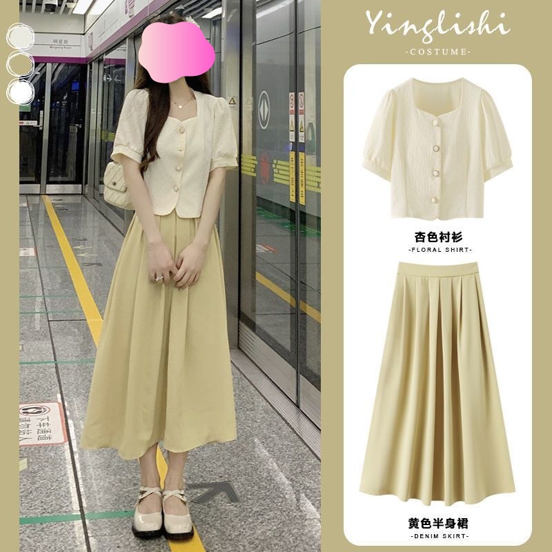 PF2939#夏季套装温柔小众 新款韩版短款衬衫显瘦百搭上衣半身裙两件套