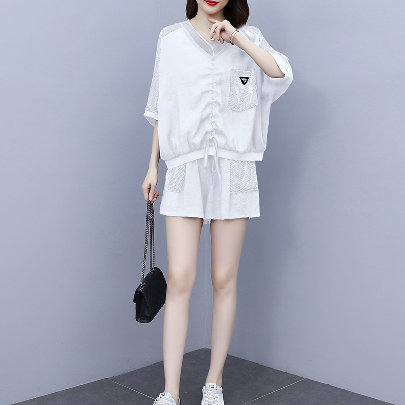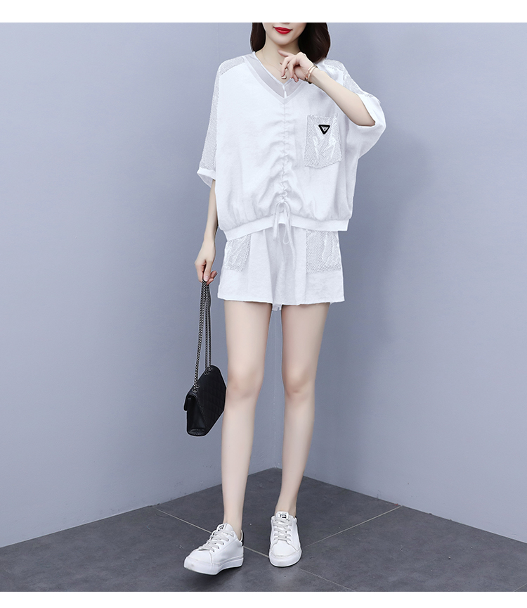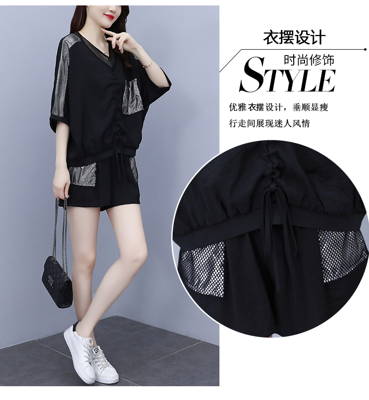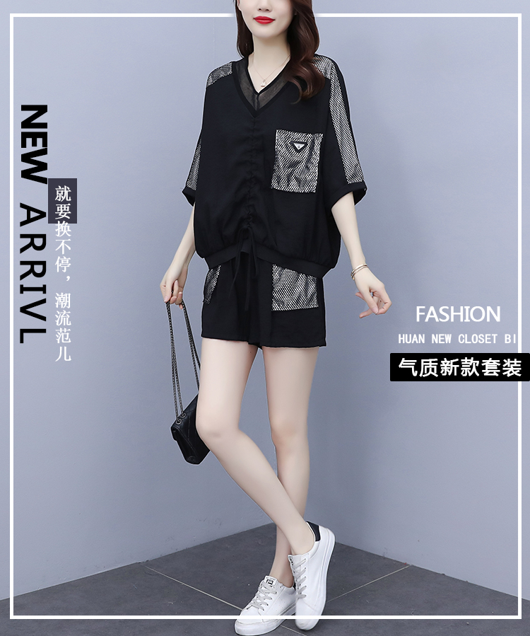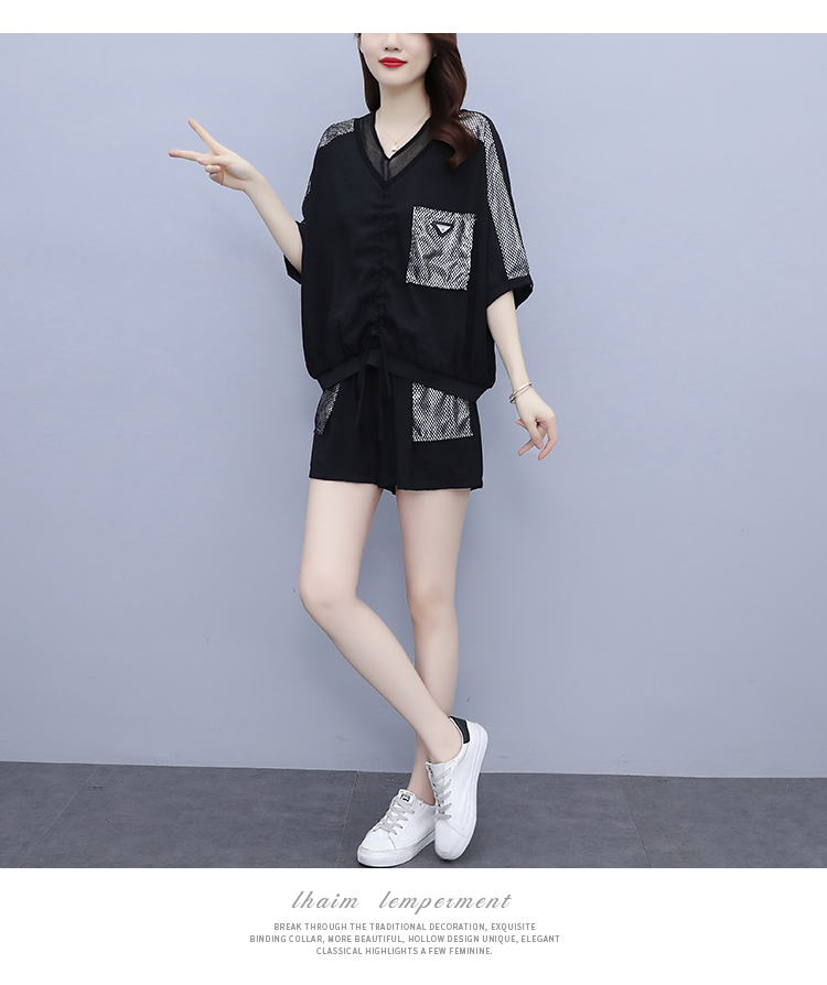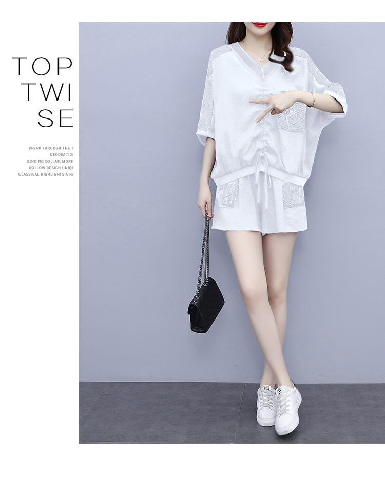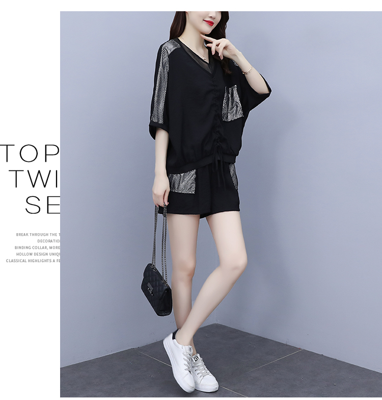 PF2943#夏季新款镂空拼接短裤套装韩版时尚休闲百搭套装裤两件套女装