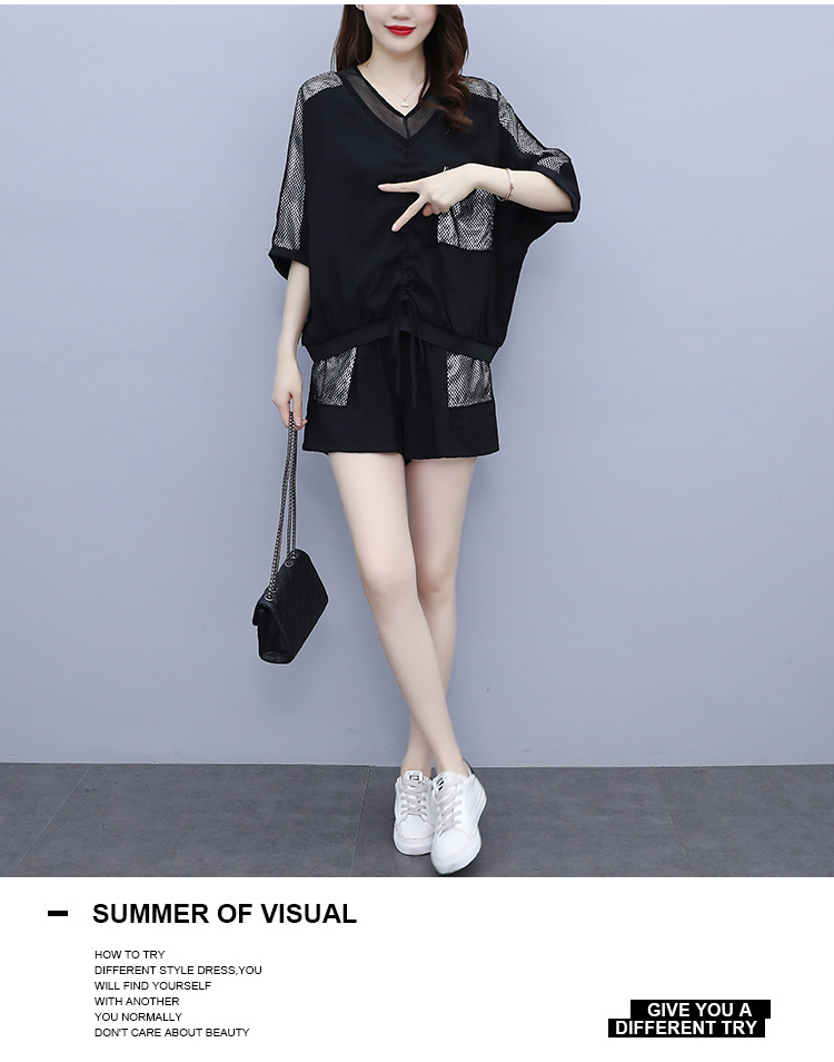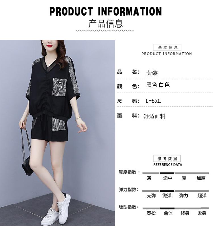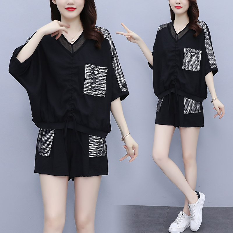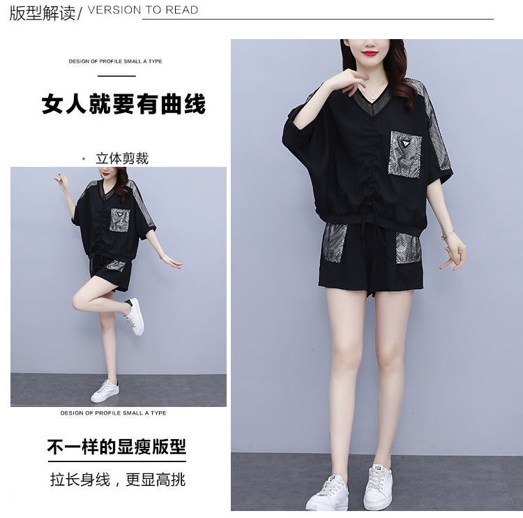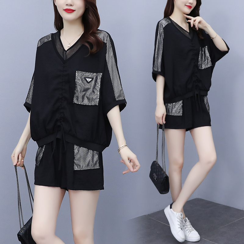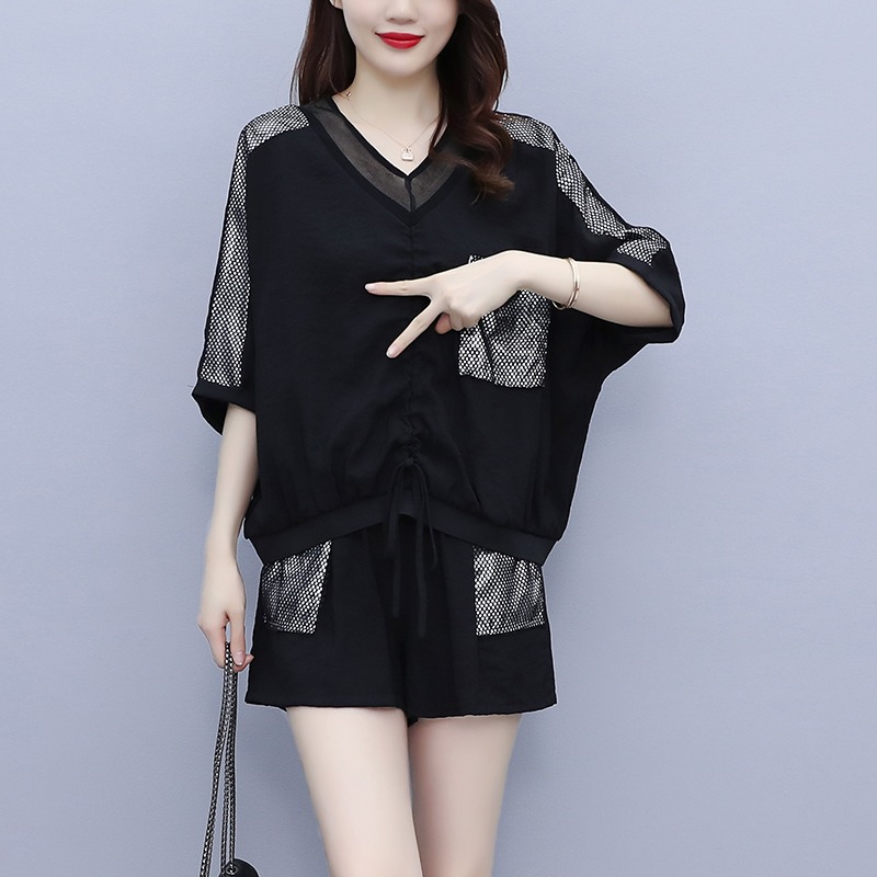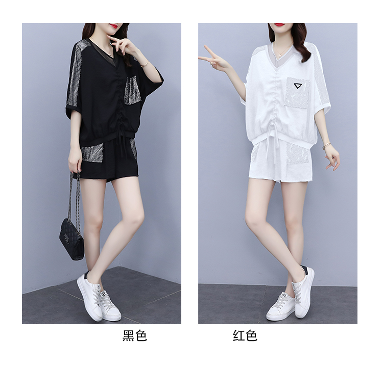 PF2943#夏季新款镂空拼接短裤套装韩版时尚休闲百搭套装裤两件套女装