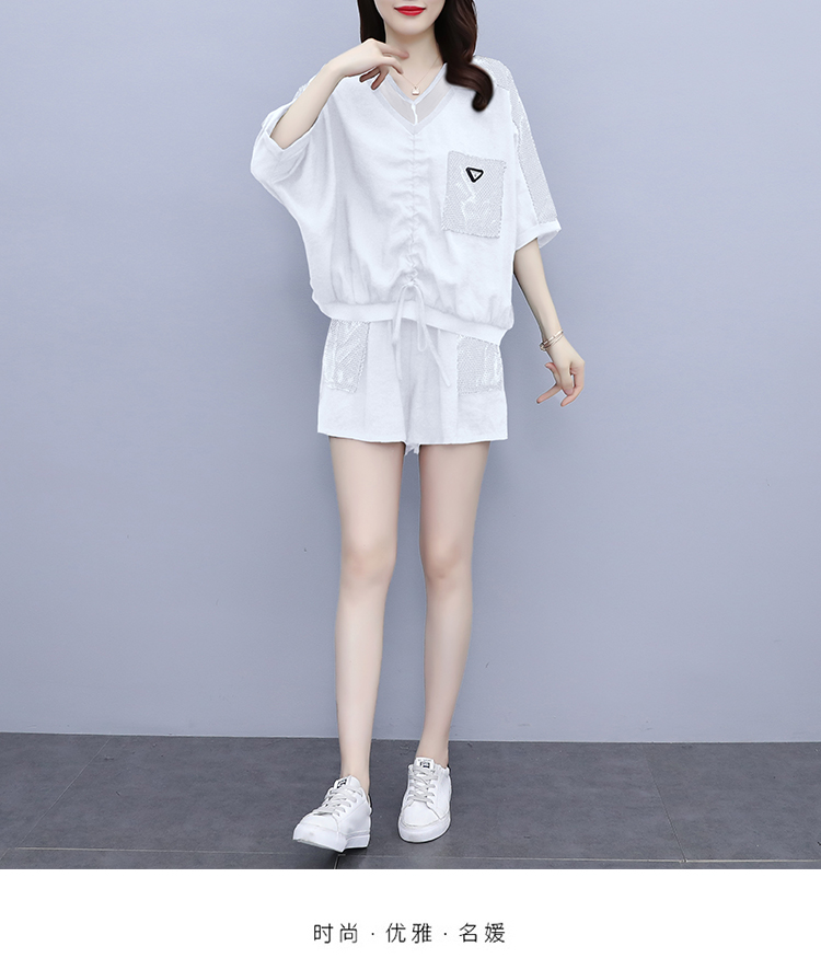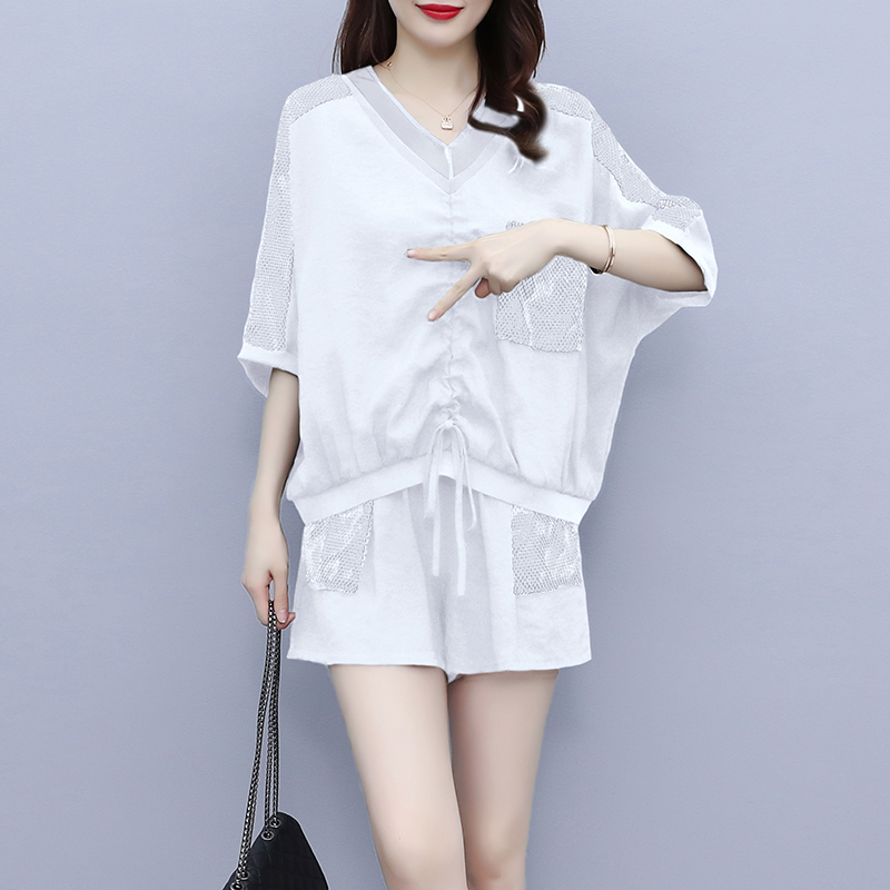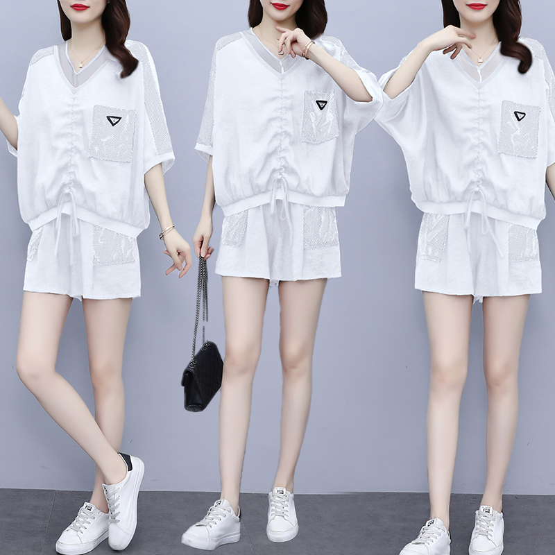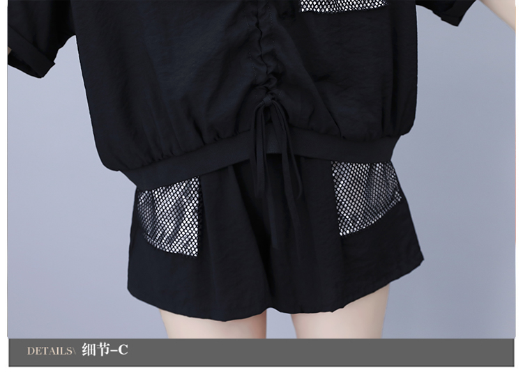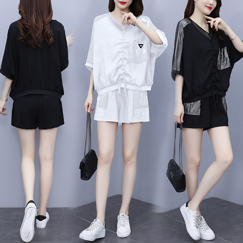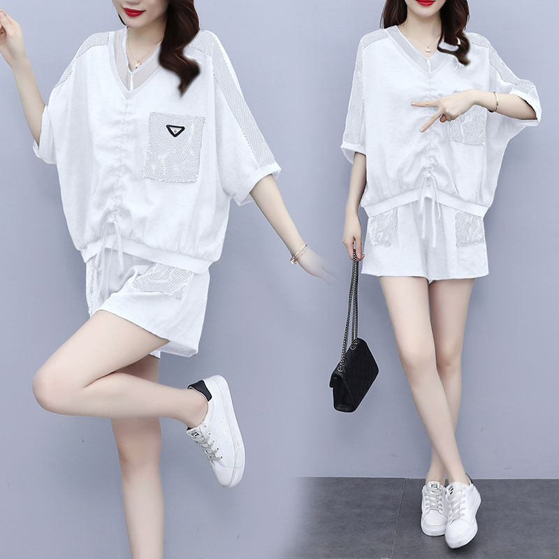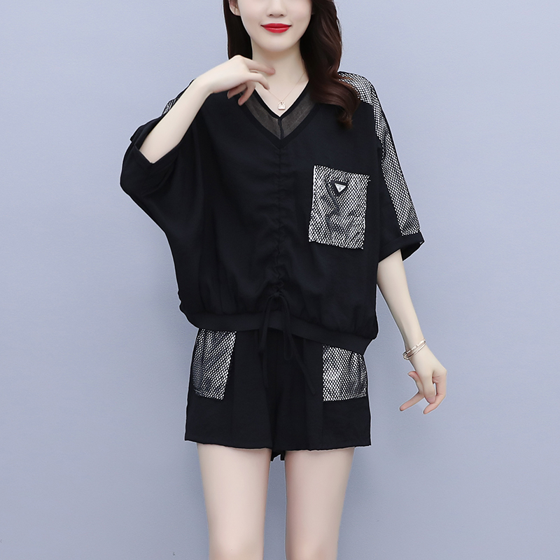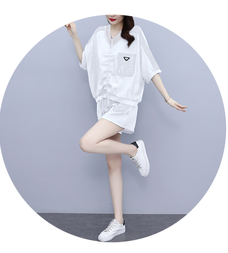 PF2943#夏季新款镂空拼接短裤套装韩版时尚休闲百搭套装裤两件套女装