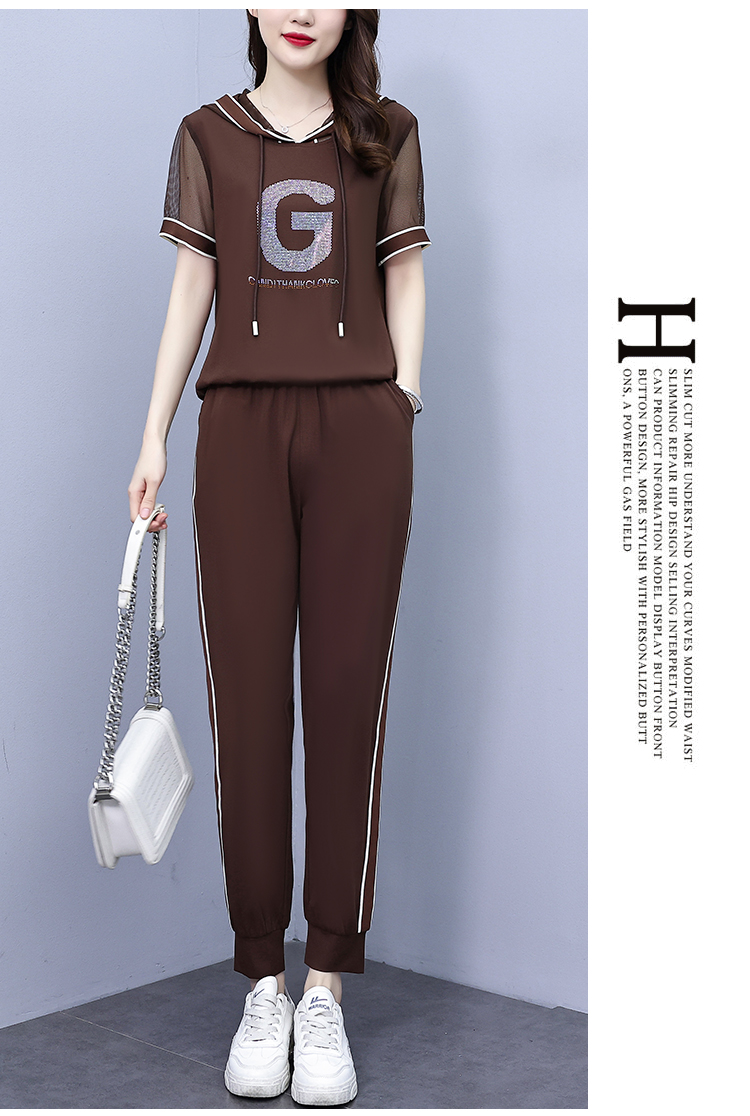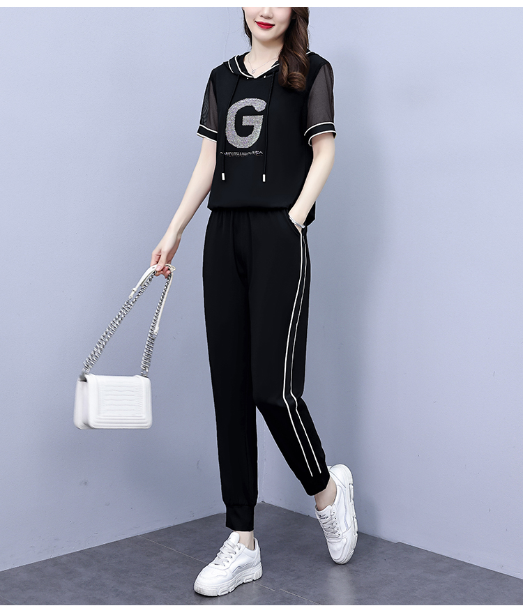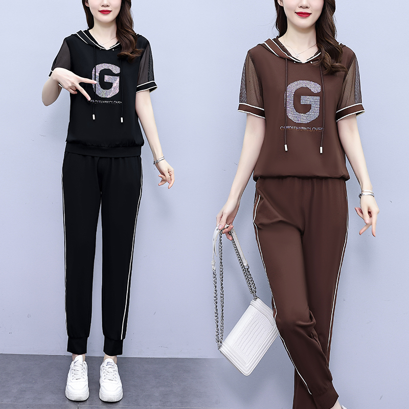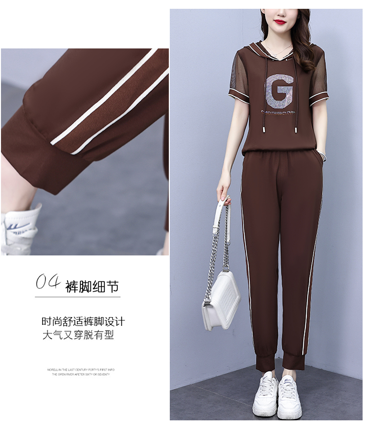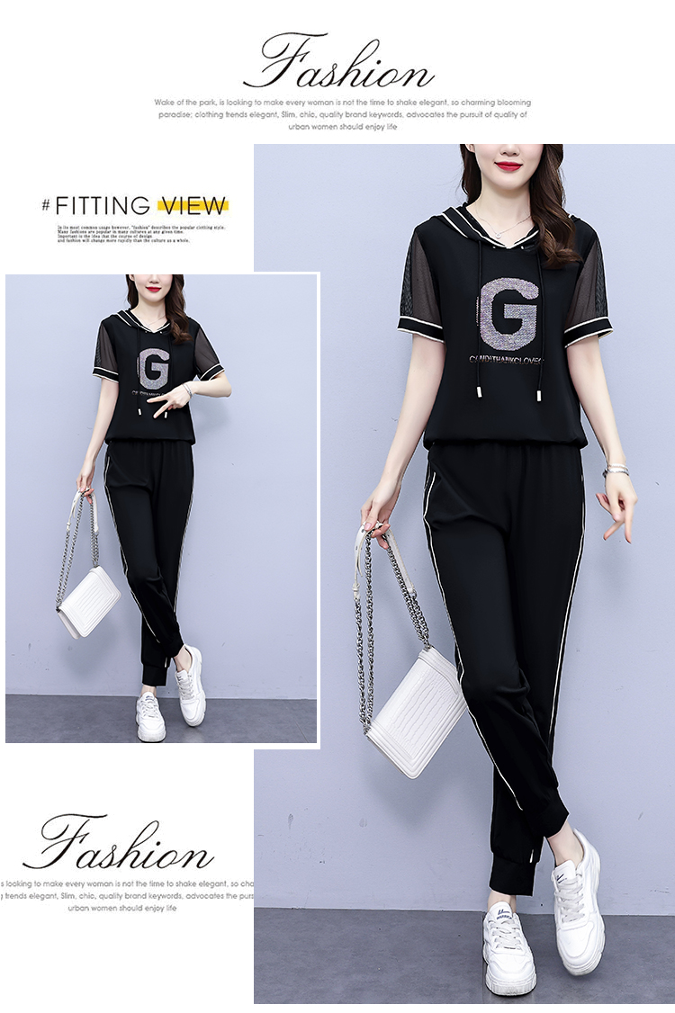 PF2945#大码女装 新款时尚休闲连帽短袖宽松舒适跑步运动套装