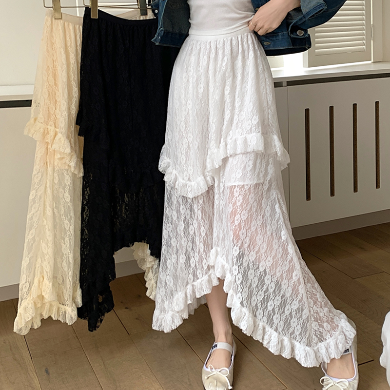 PF2955#韩系夏季设计感不规则流行蕾丝个性网纱仙女潮搭大摆伞裙女