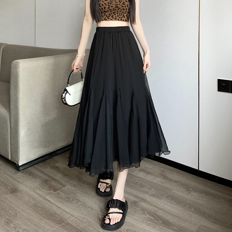 PF3048#不规则雪纺裙子网纱半身裙夏季显瘦高腰蓬蓬鱼尾半身裙