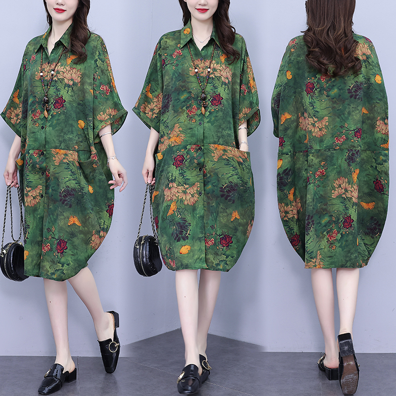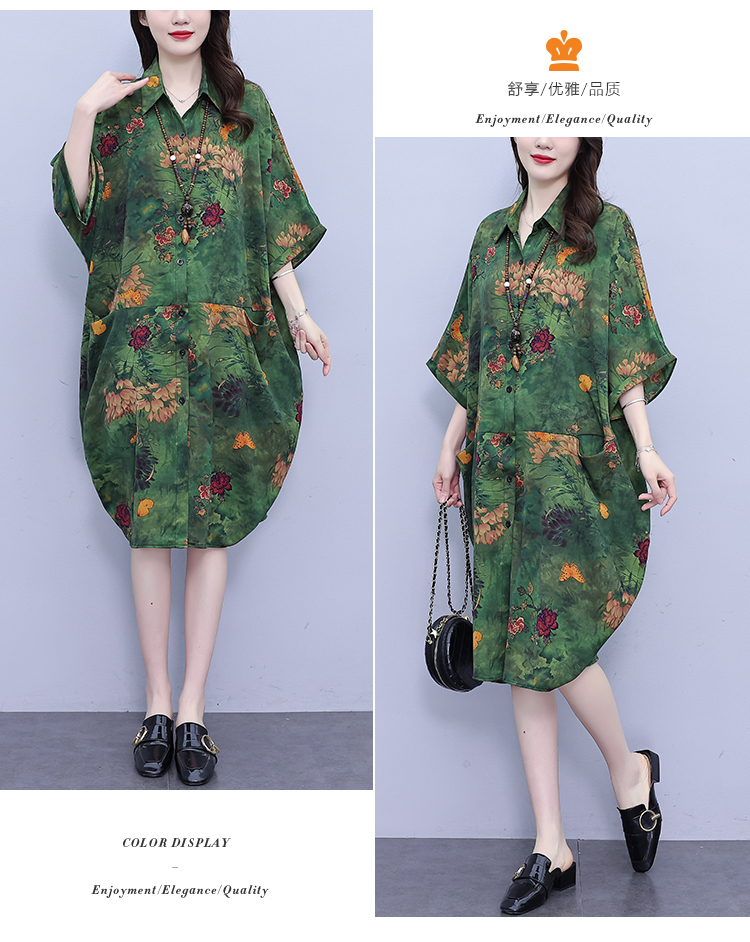 PF3267#夏季新款韩版胖MM大码POLO领遮肉衬衫连衣裙中长款休闲宽松型