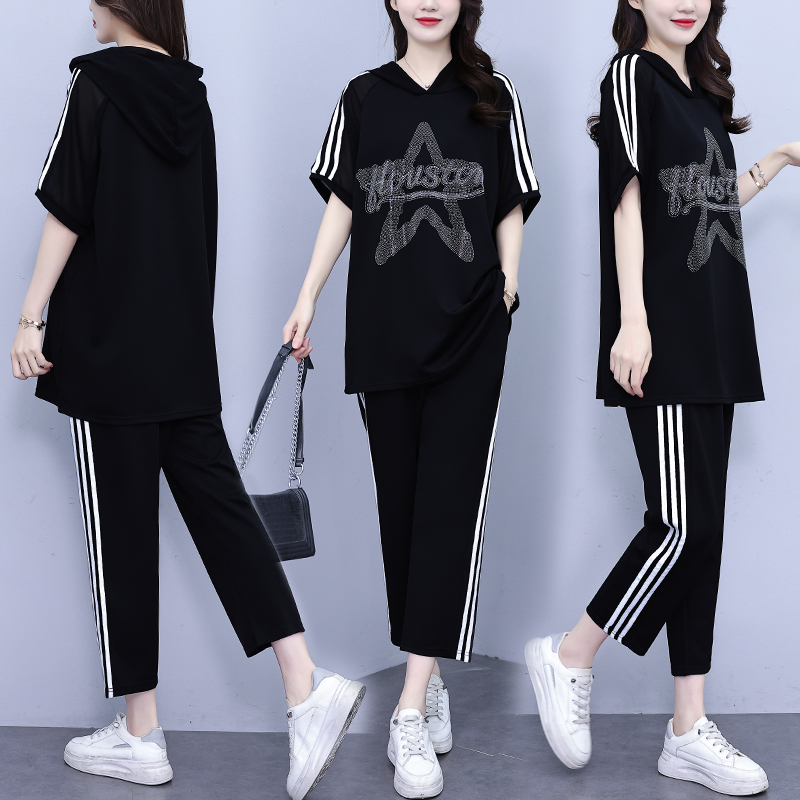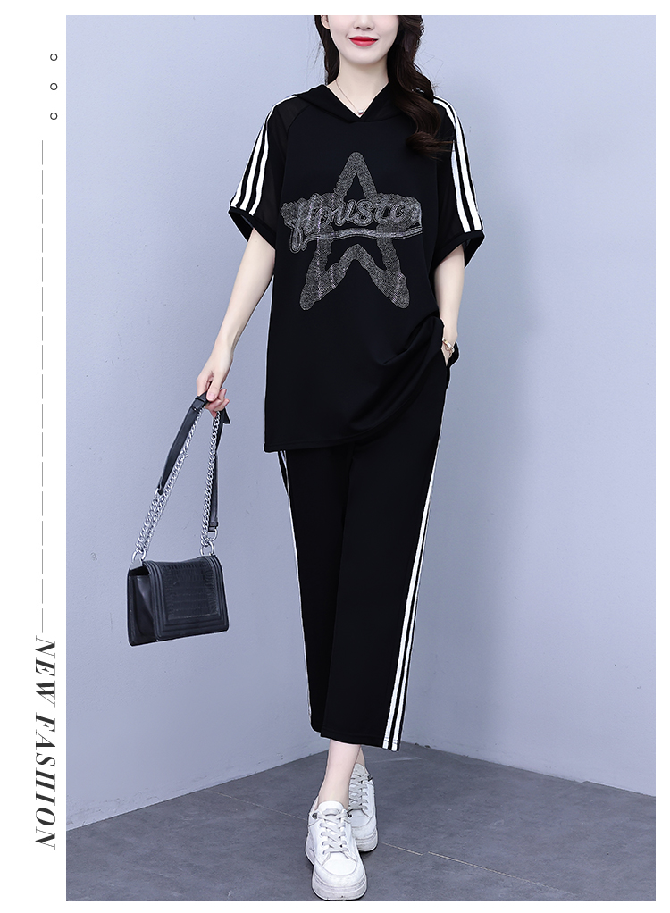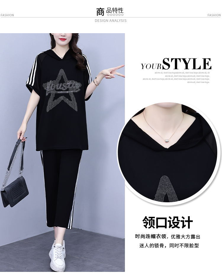 PF3268#大码休闲运动两件套胖妹妹2024夏新款女装套装宽松显瘦T恤七分裤