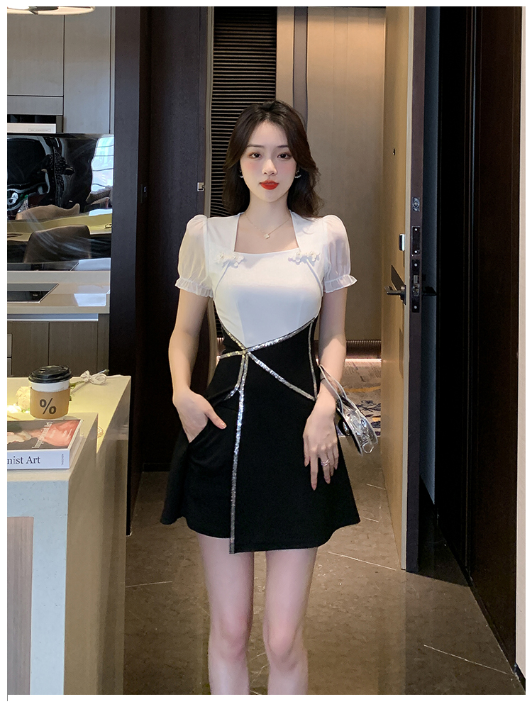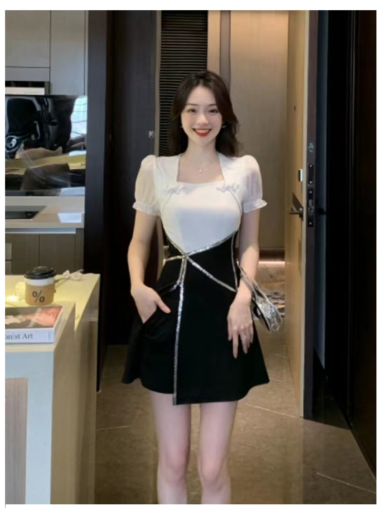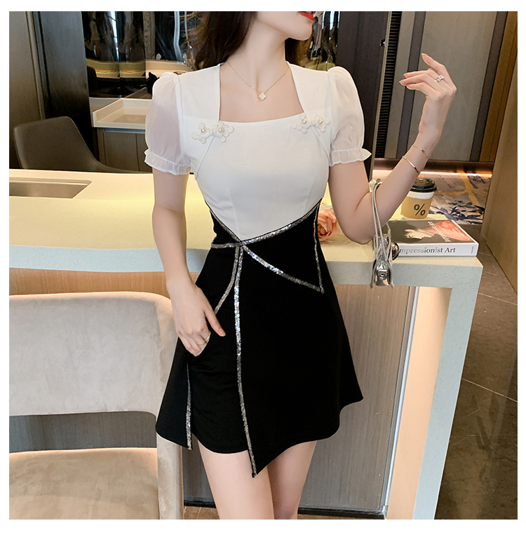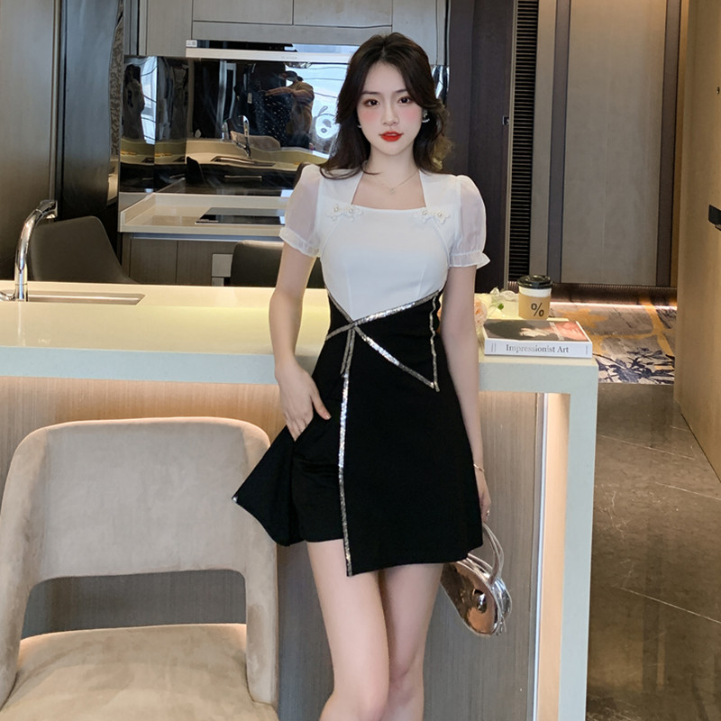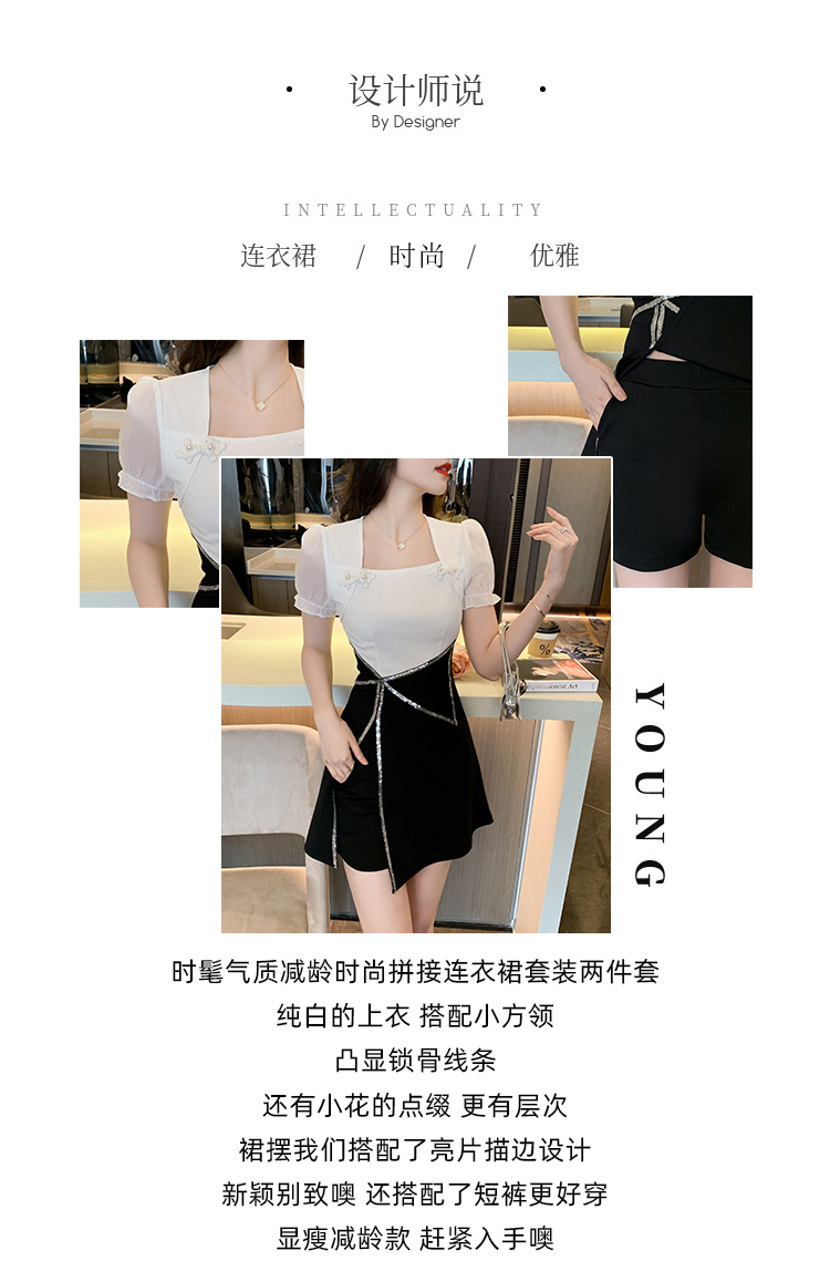 PF3437#新款气质减龄显瘦拼接时尚连衣裙+短裤套装两件套