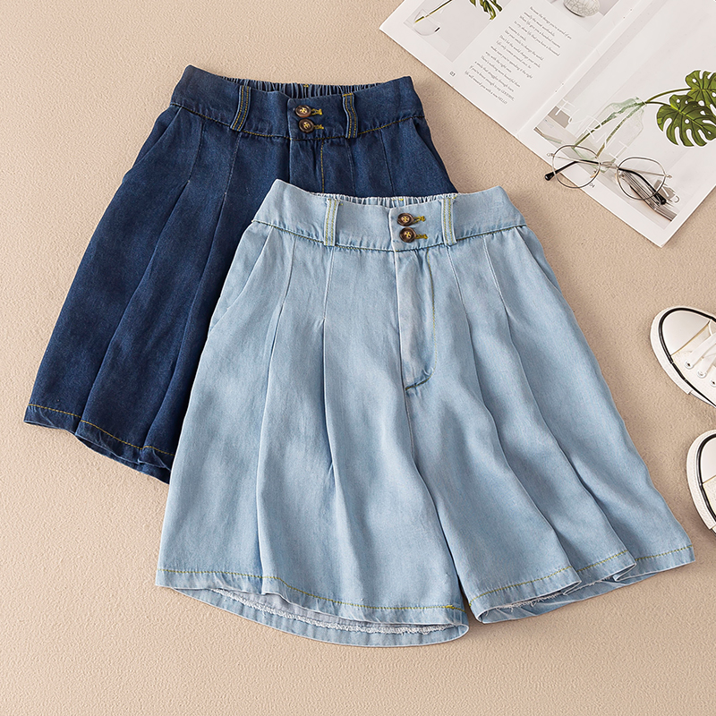 PF3726#大码收腹五分裤女夏季新款高腰a字牛仔天丝外穿阔腿热裤