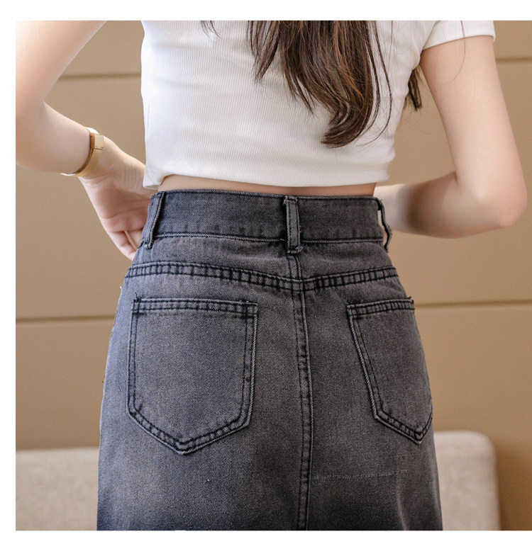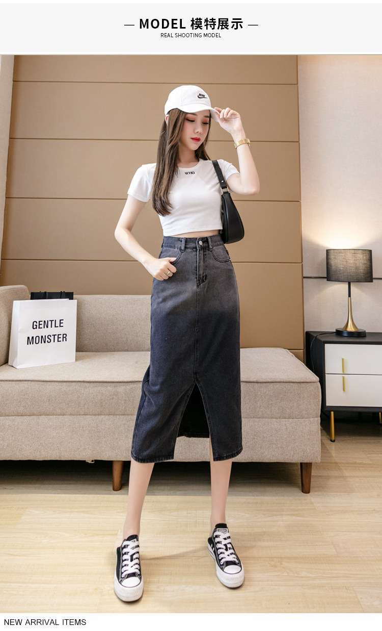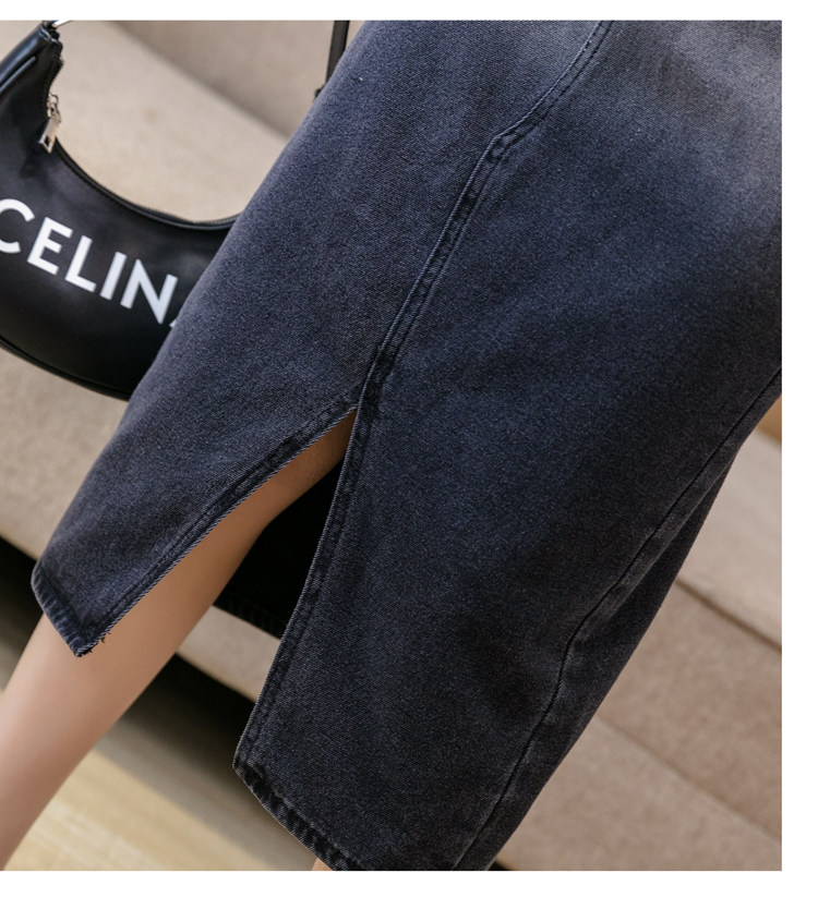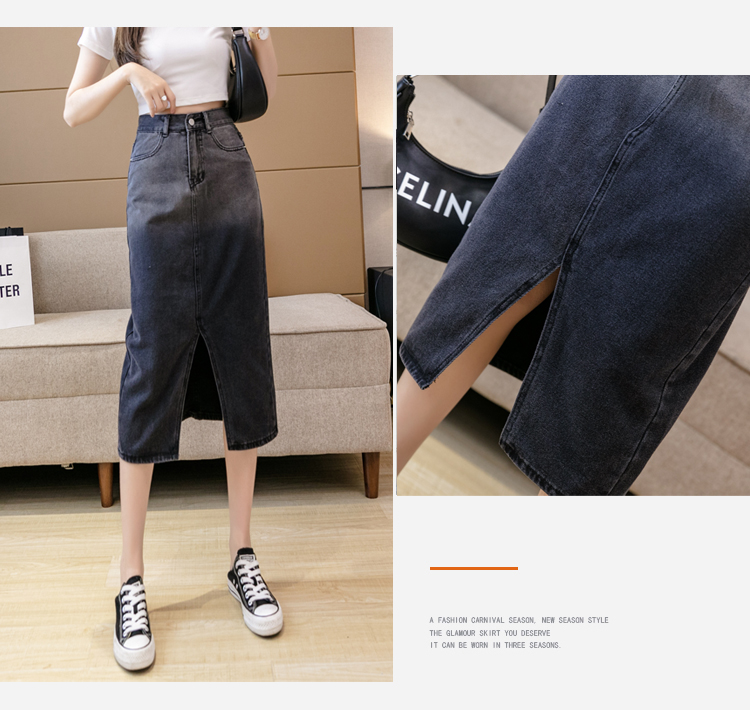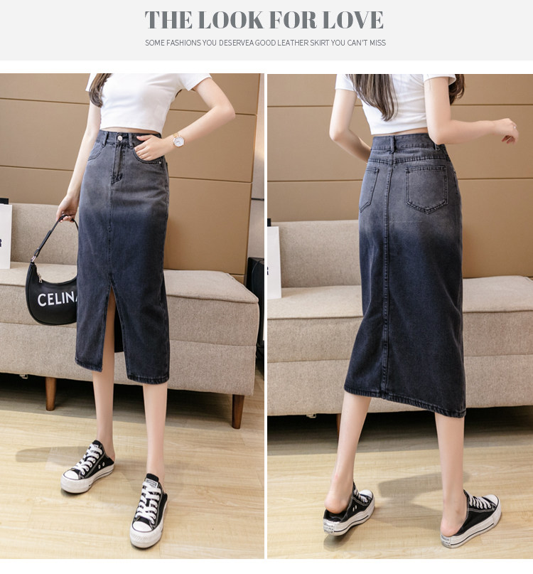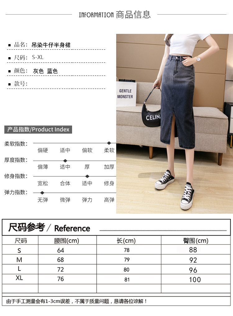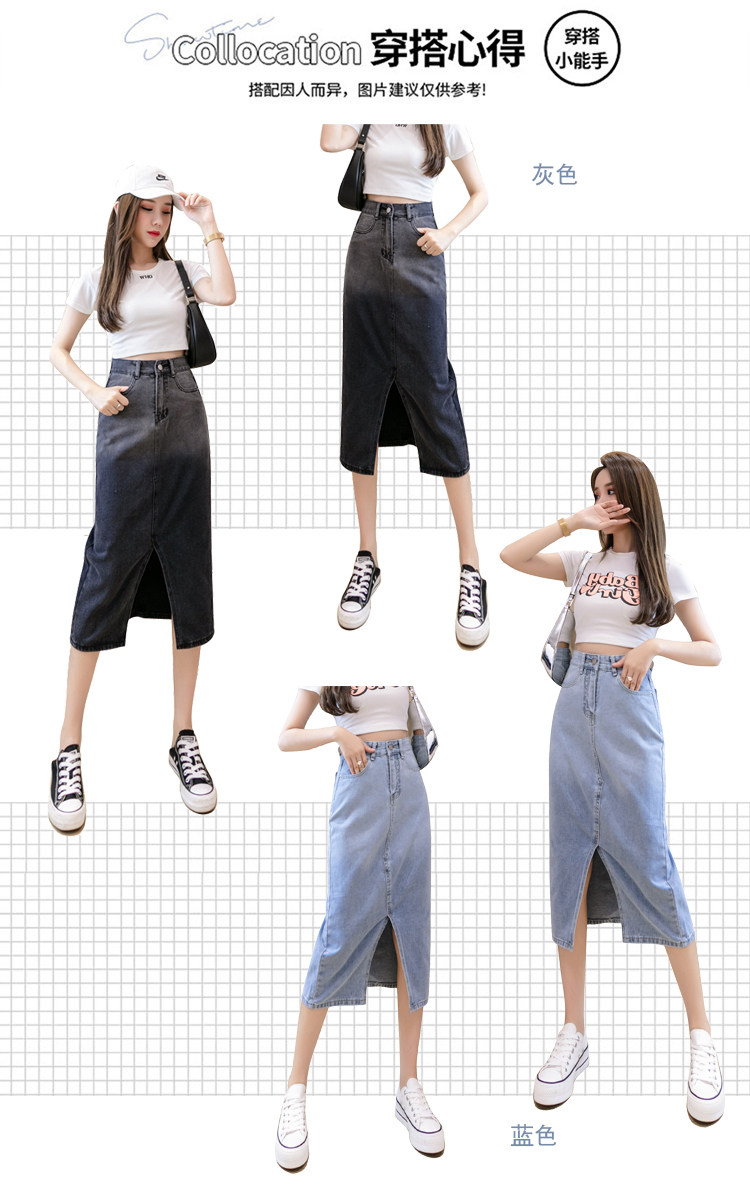 PF3940#渐变色开叉牛仔半身裙女2024年夏季高腰显瘦中长款一步包臀裙