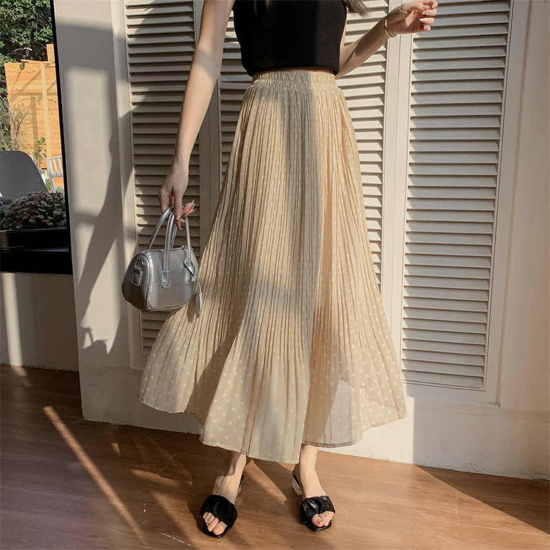 PF3978#春夏时尚韩版大码波点百褶裙中长款仙女雪纺裙