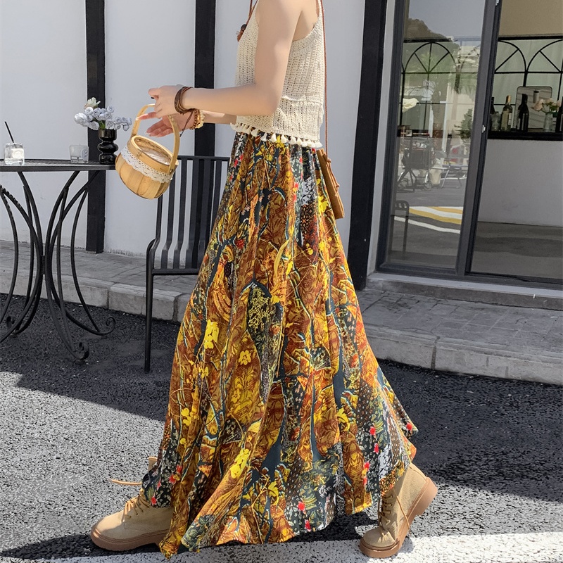 PF3979#波西米亚度假民族风特色半身裙松紧腰大摆A字裙长裙