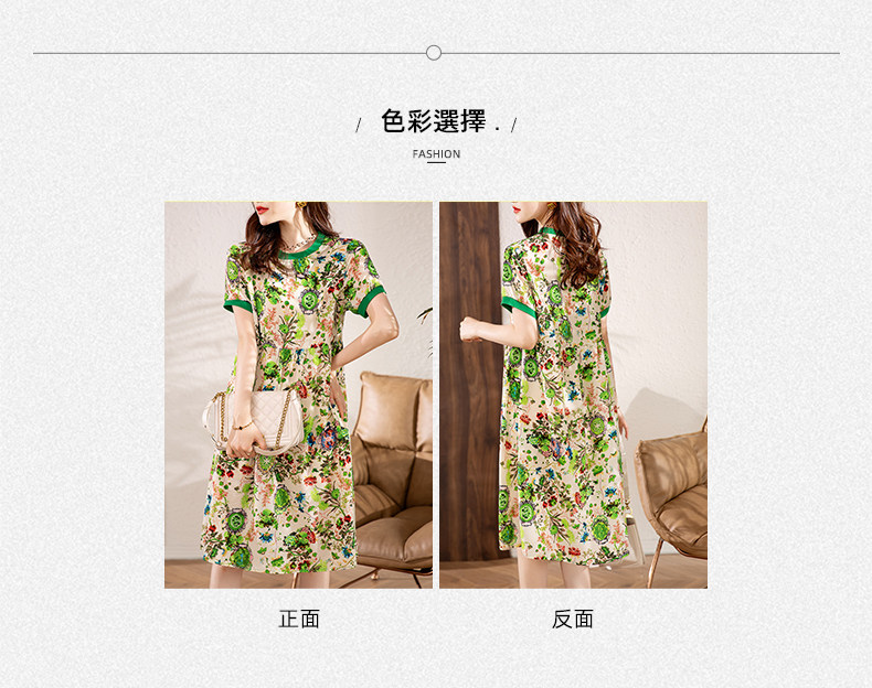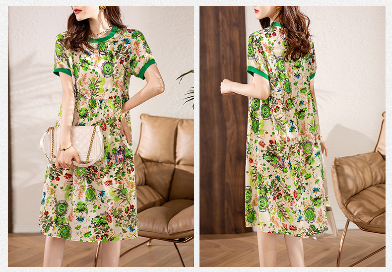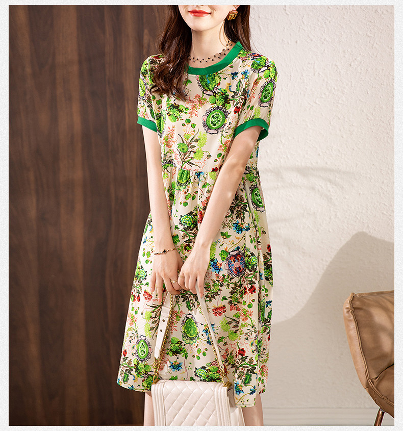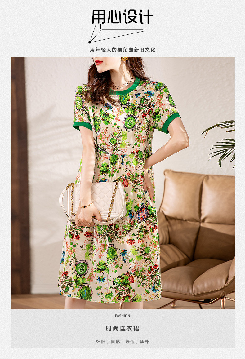 PF4302#夏季新款圆领桑蚕丝碎花宽松显瘦连衣裙女女裝批發 服裝批發 服裝貨源
