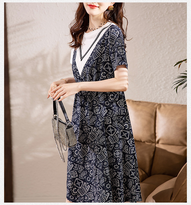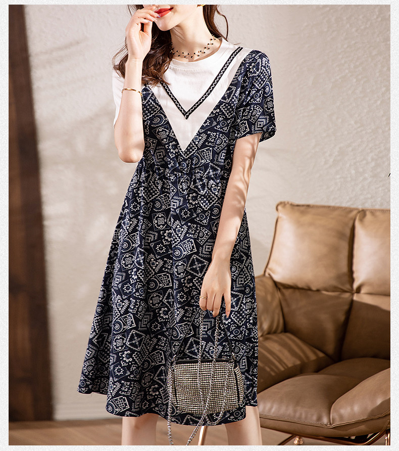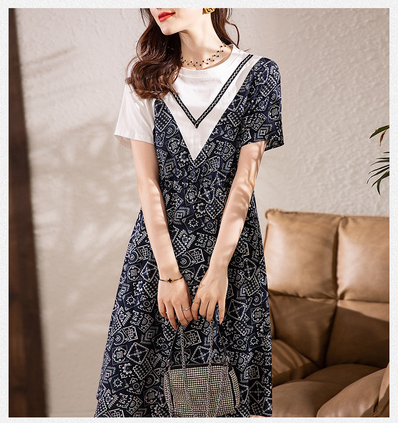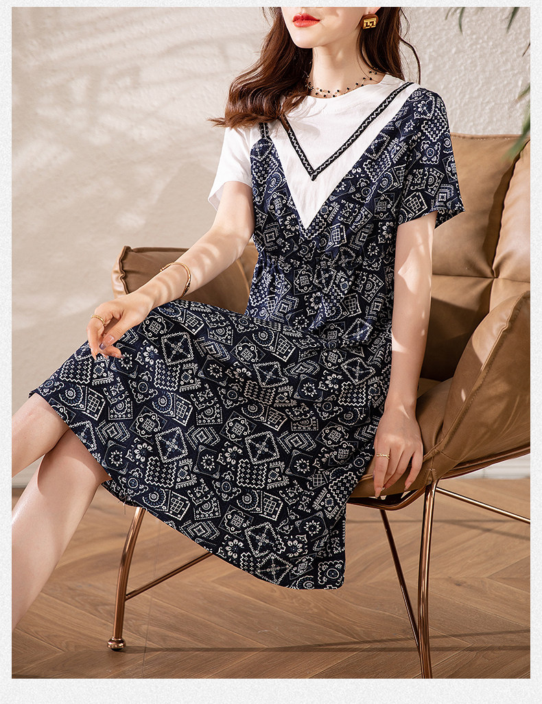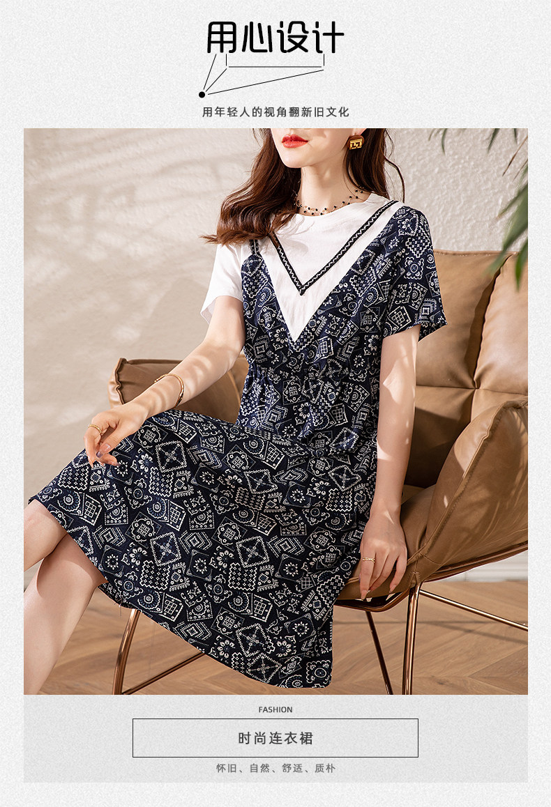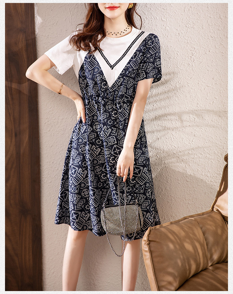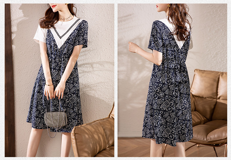 PF4304#夏季新款韩版假两件拼接碎花收腰连衣裙女女裝批發 服裝批發 服裝貨源