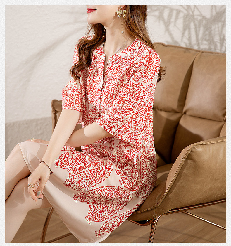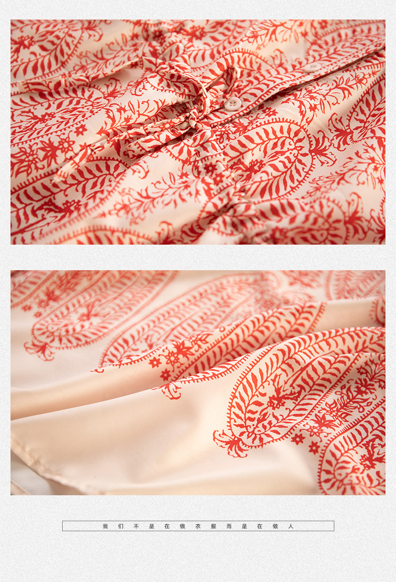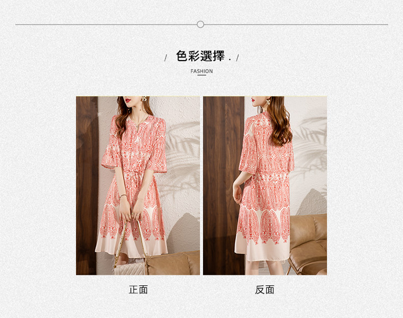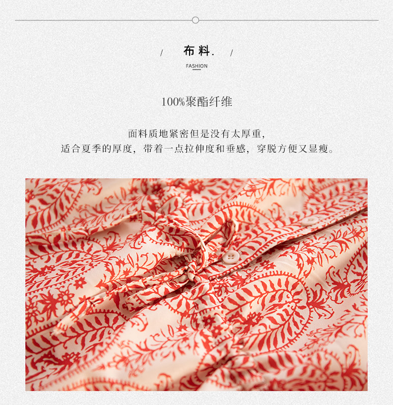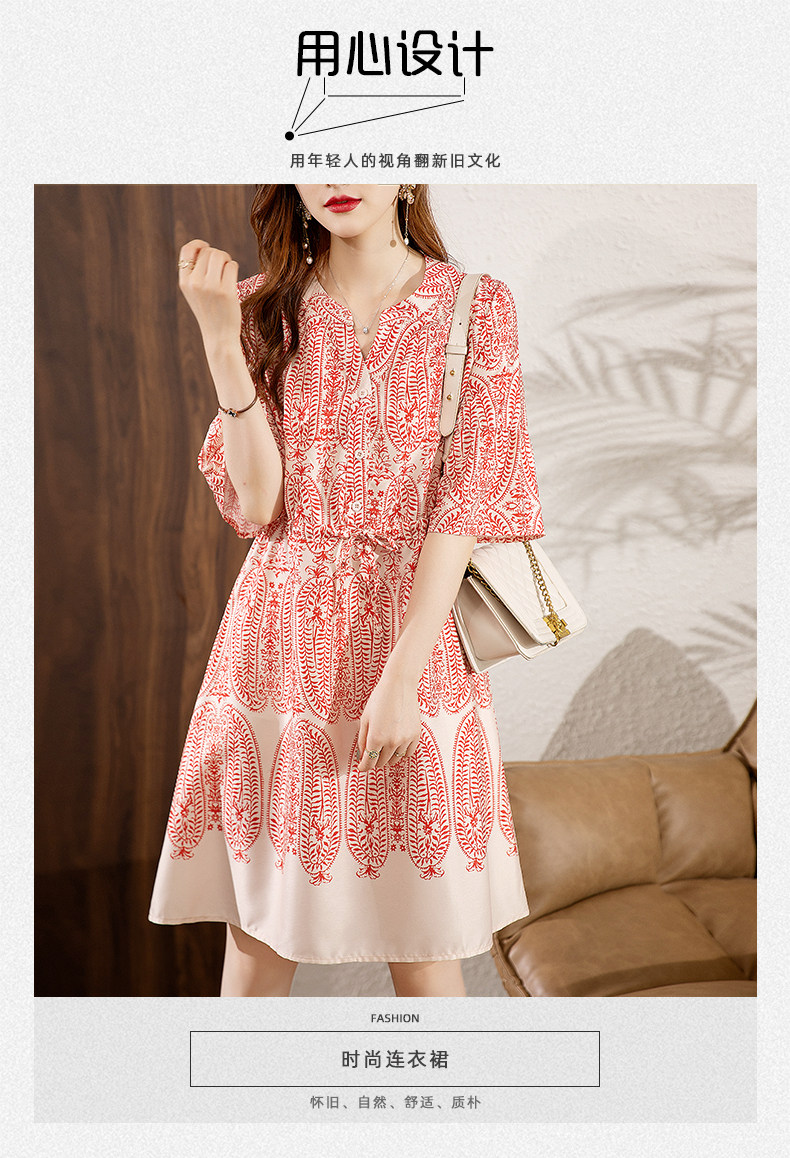 PF4306#夏季新款时尚印花气质v领收腰显瘦法式裙子女女裝批發 服裝批發 服裝貨源