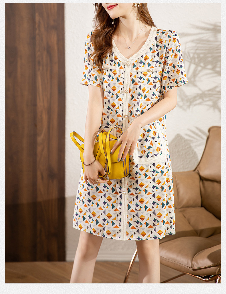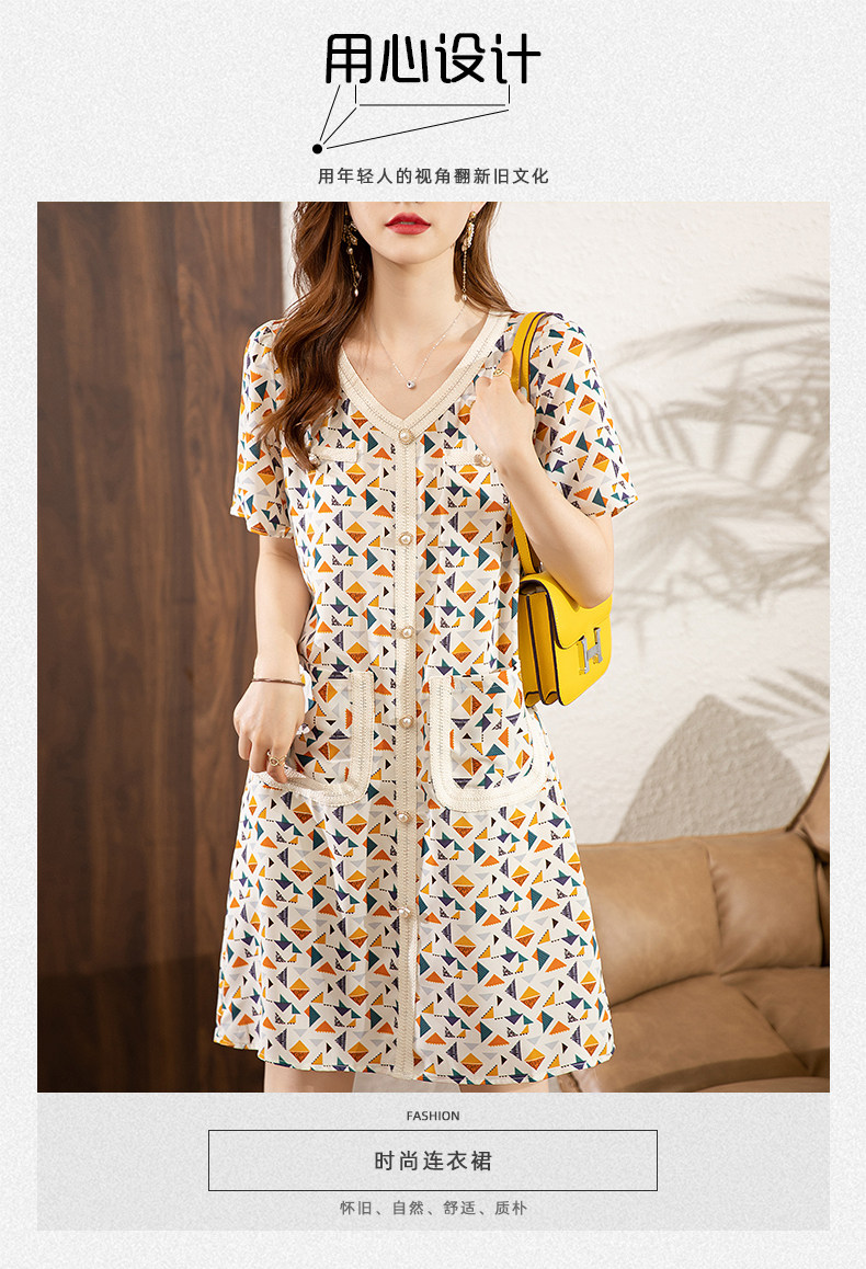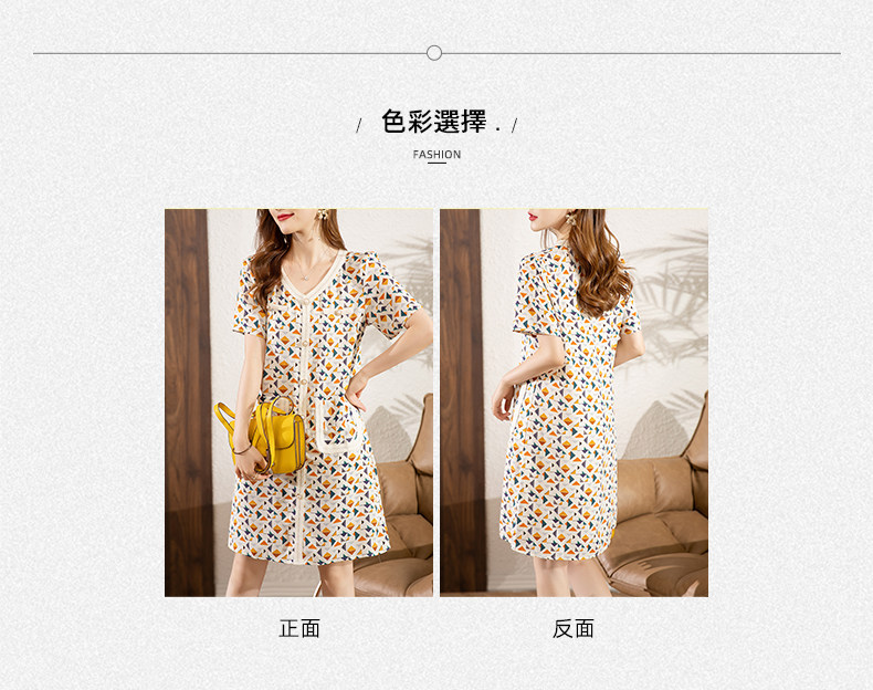 PF4307#夏季新款碎花V领宽松百搭优雅气质短袖连衣裙女裝批發 服裝批發 服裝貨源