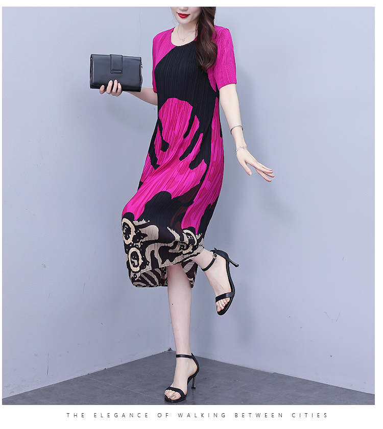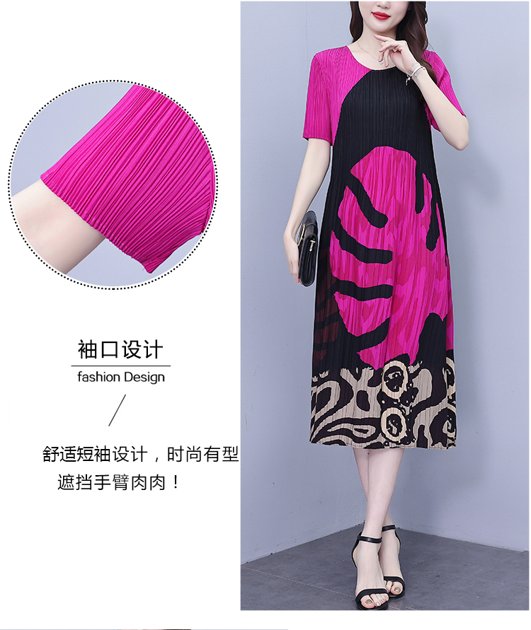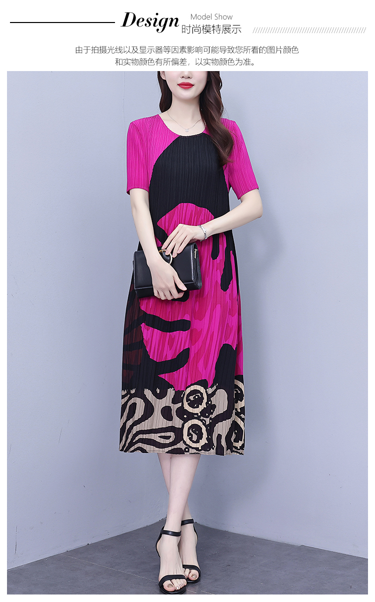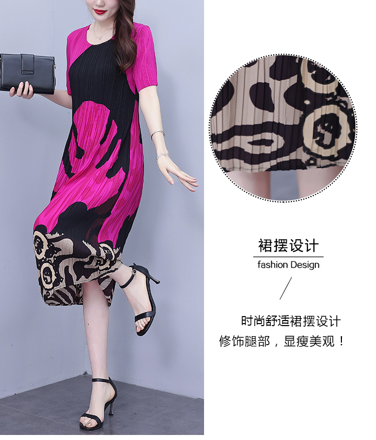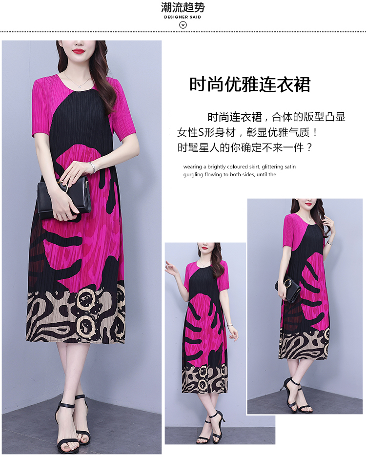 PF4409#大码女装2024夏季新款时尚印花圆领气质连衣裙遮肚子显瘦裙子女裝批發 服裝批發 服裝貨源