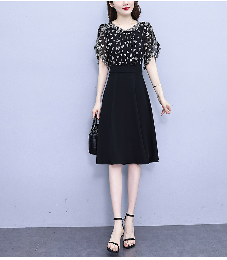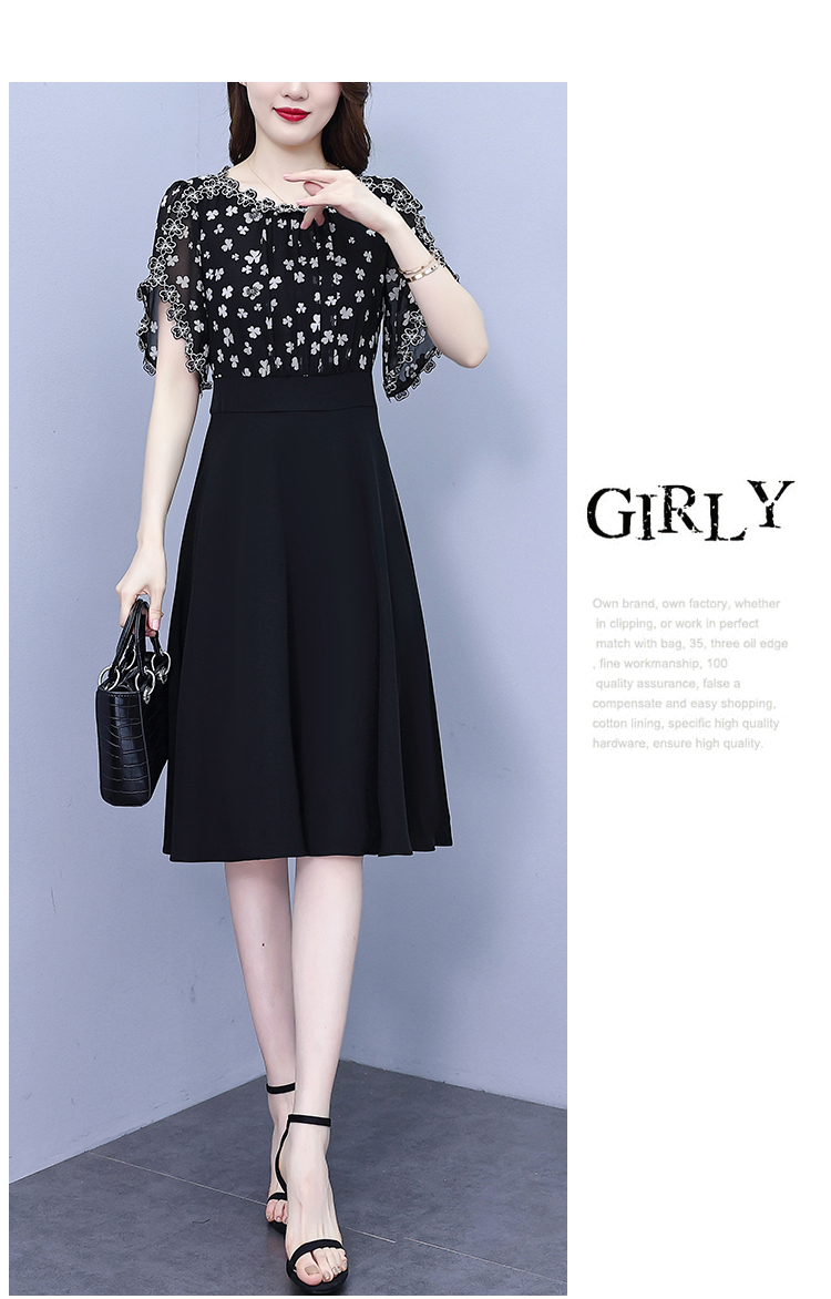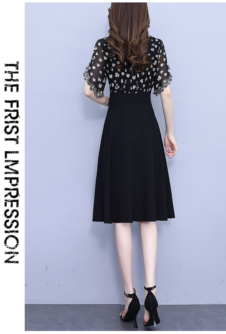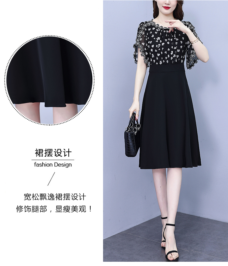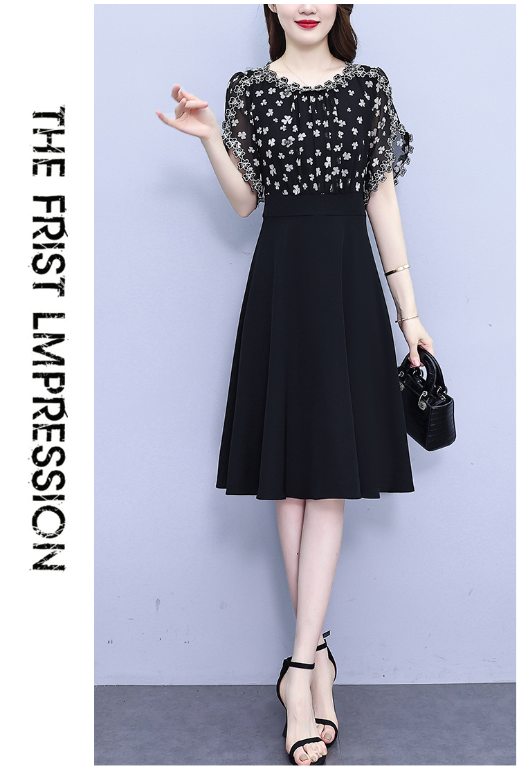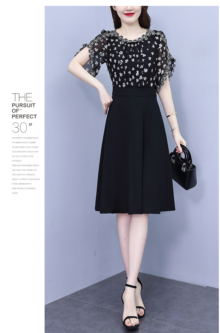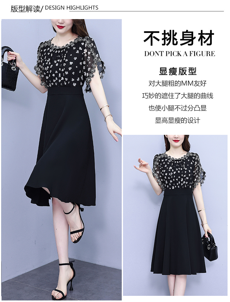 PF4428#大码女装2024夏季韩版修身拼接印花时尚气质减龄长款连衣裙女裝批發 服裝批發 服裝貨源