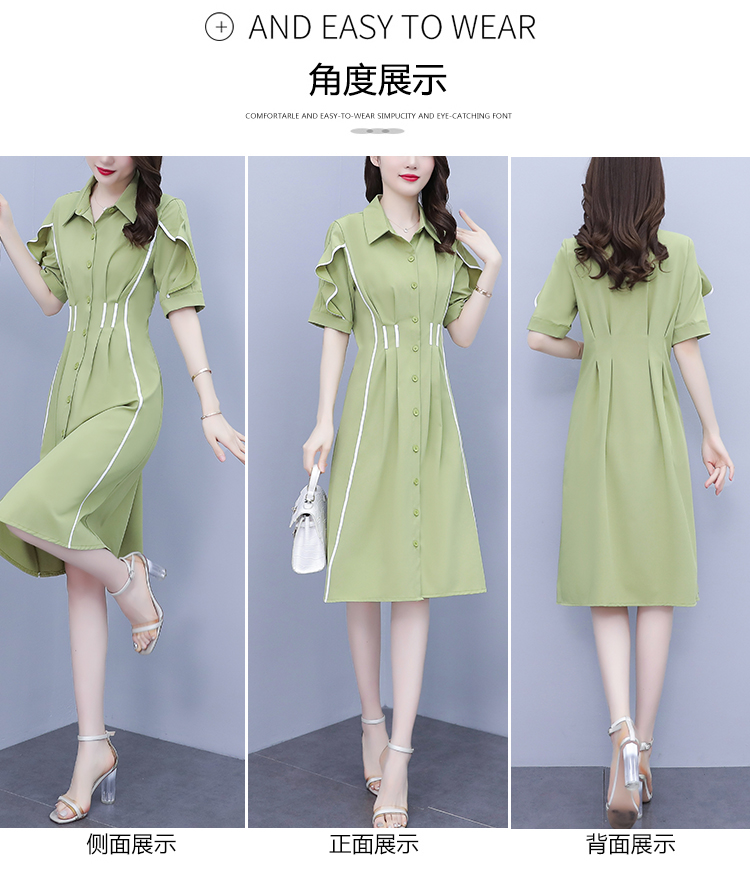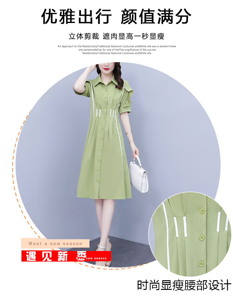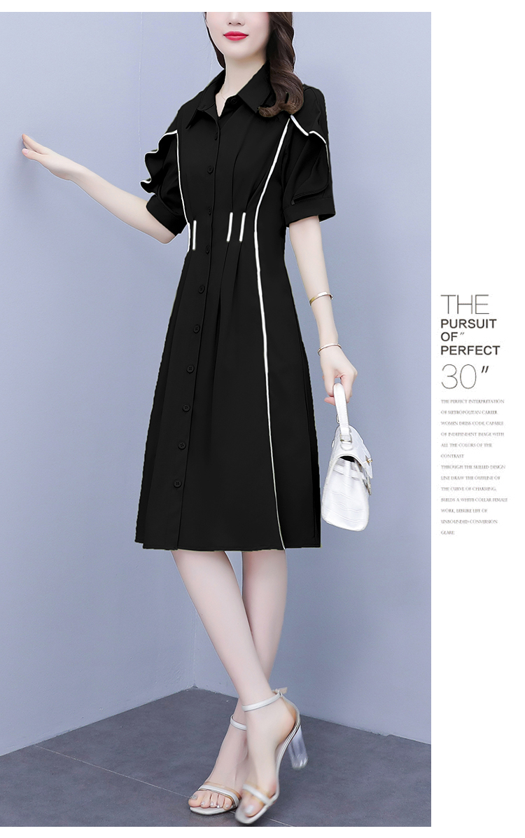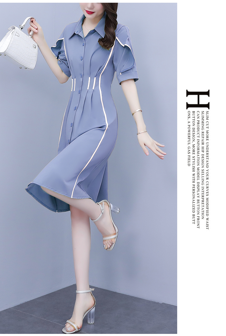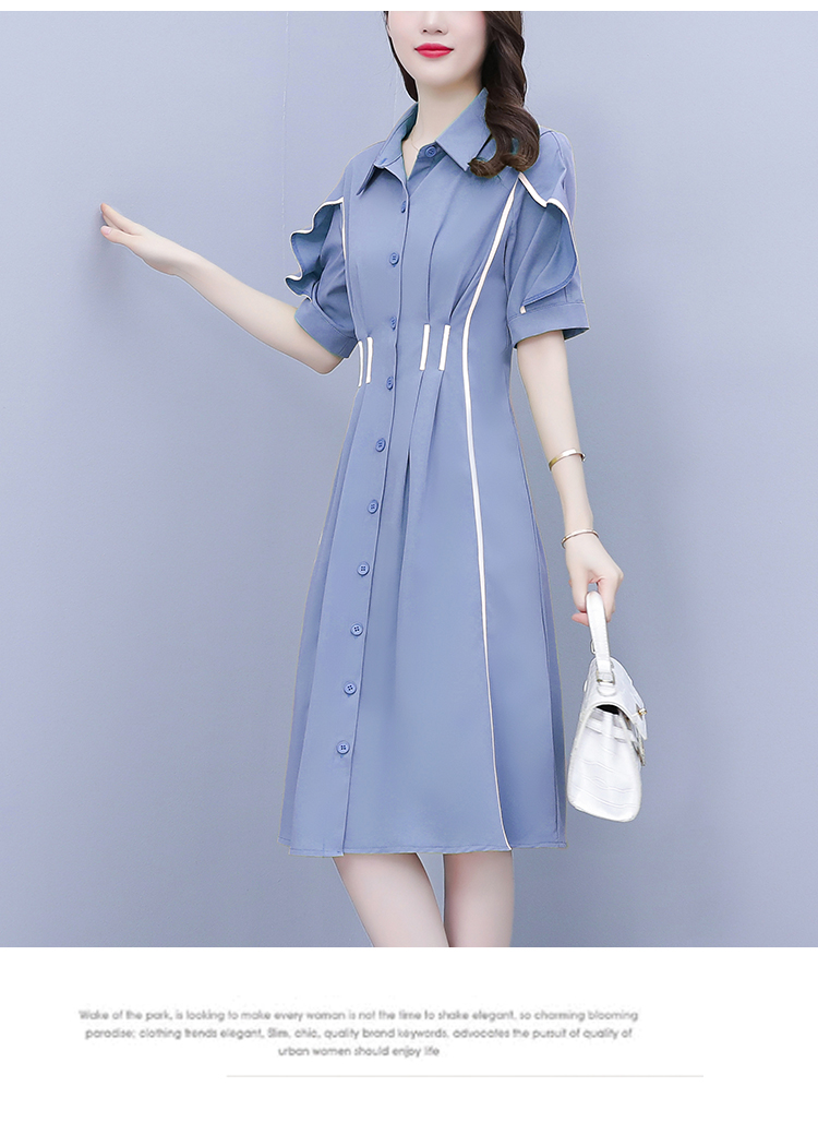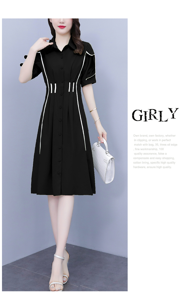 PF4429#大码女装2024夏季新款港风修身短袖轻熟气质长款衬衣连衣裙女裝批發 服裝批發 服裝貨源