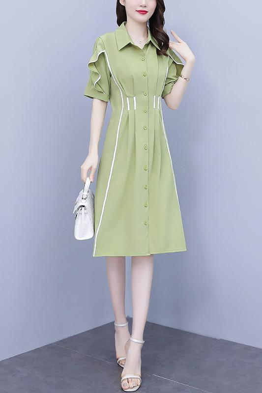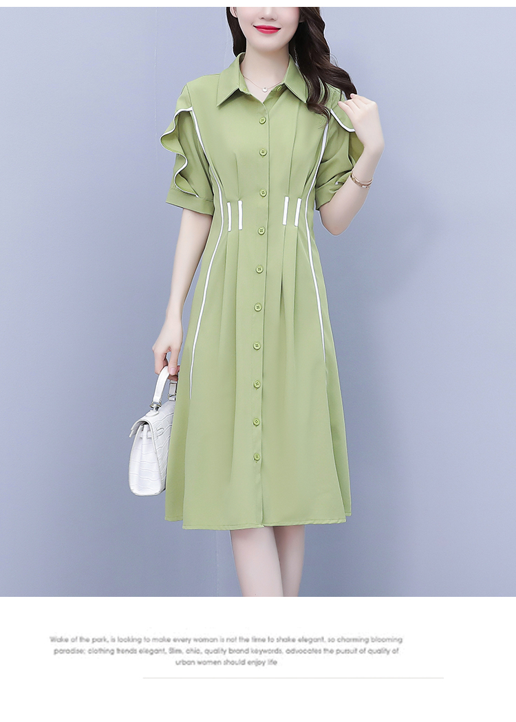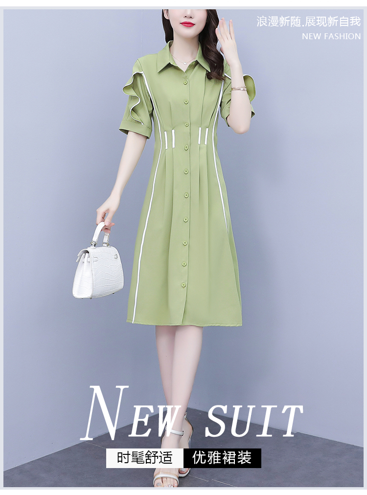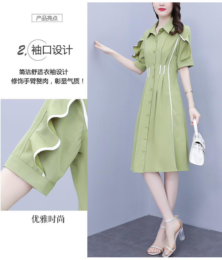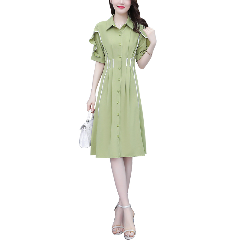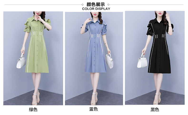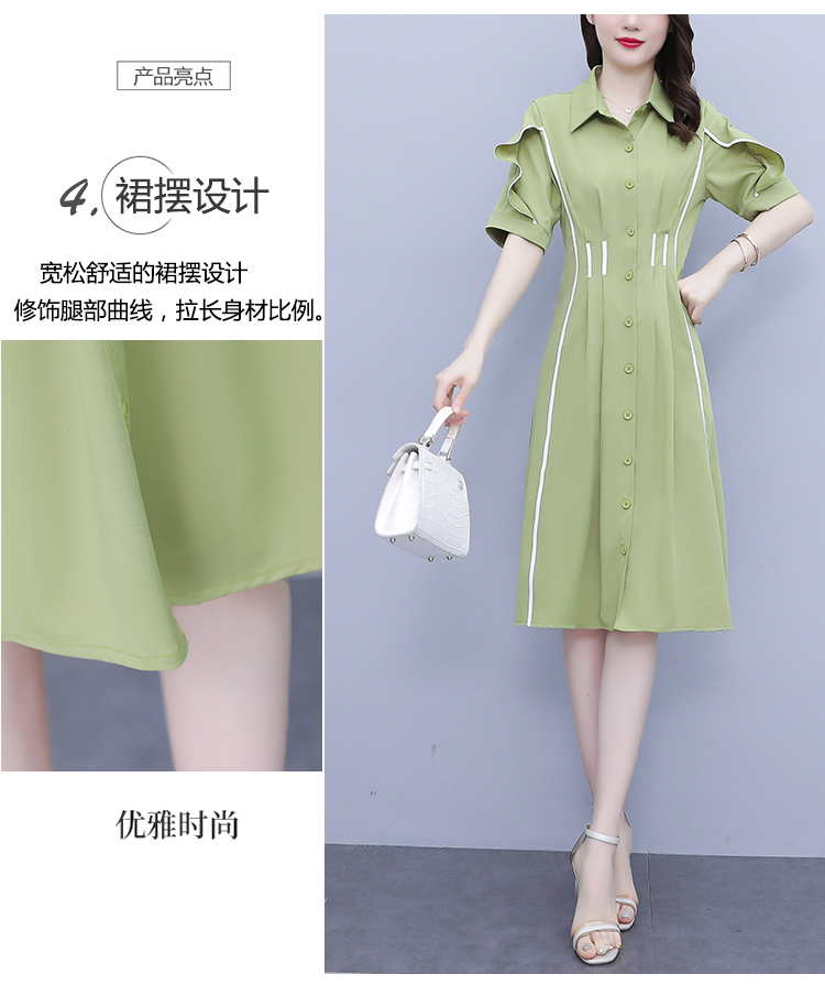 PF4429#大码女装2024夏季新款港风修身短袖轻熟气质长款衬衣连衣裙女裝批發 服裝批發 服裝貨源