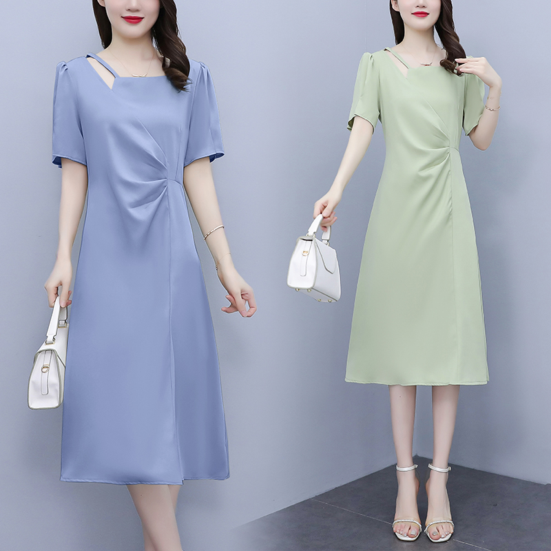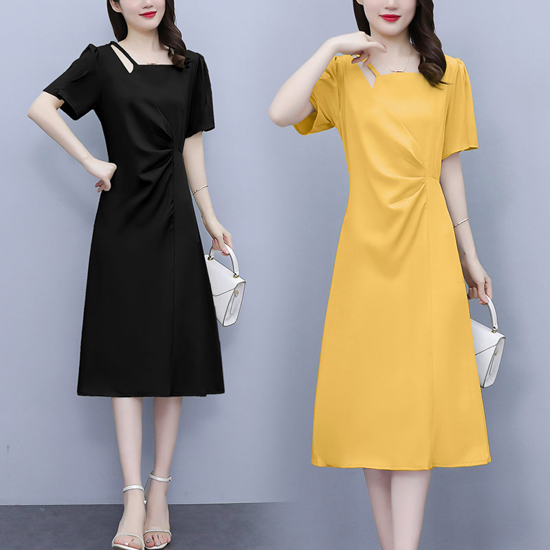 RM6851#减龄POLO领连衣裙2023夏季新款休闲直筒遮肉T恤裙子