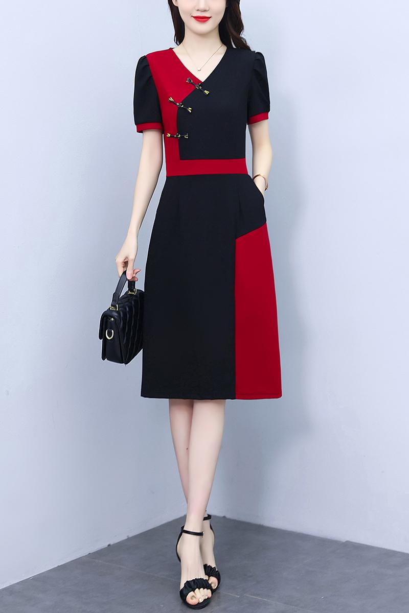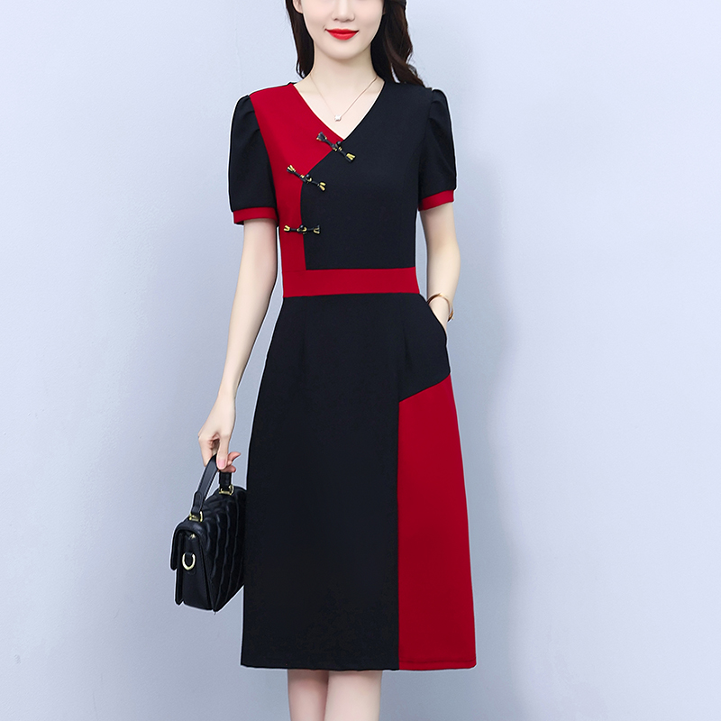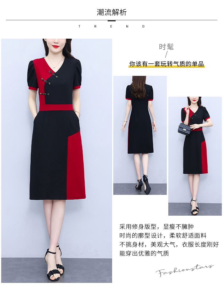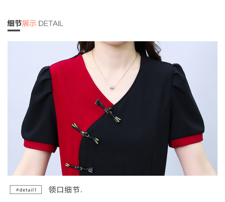 PF4447#大码女装2024夏季新款韩版收腰显瘦气质国风新中式妈妈连衣裙女裝批發 服裝批發 服裝貨源