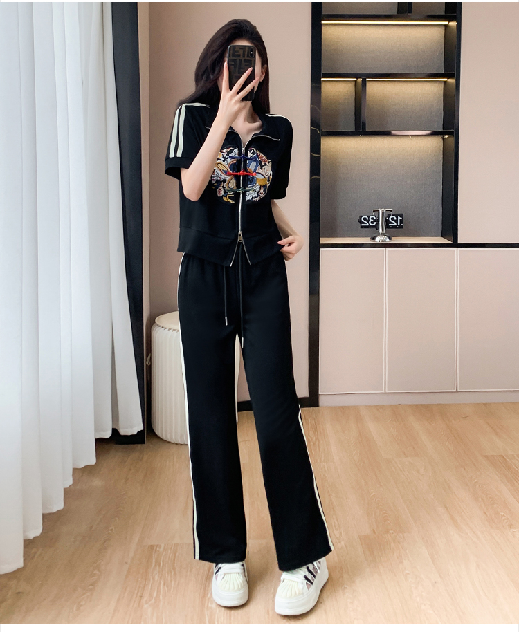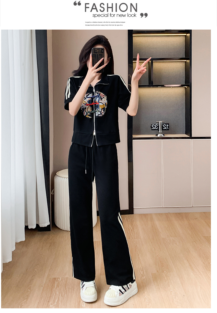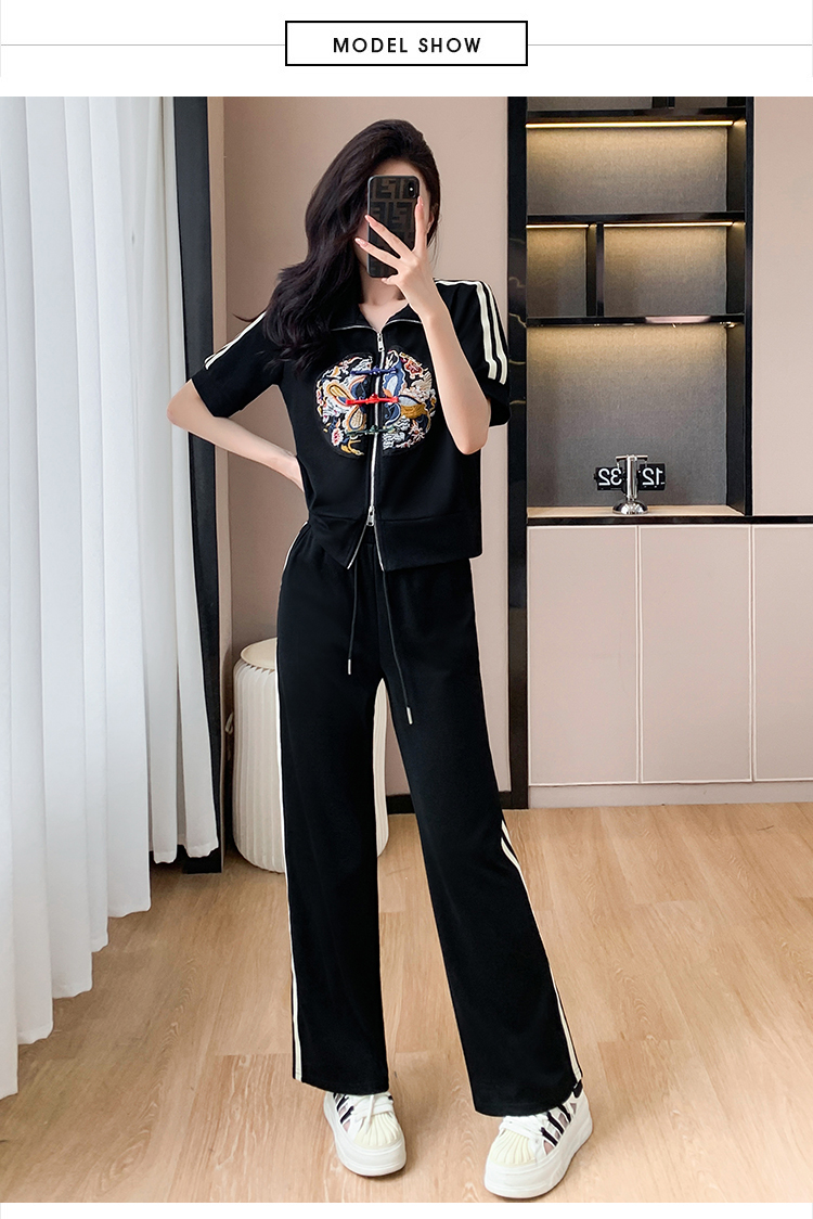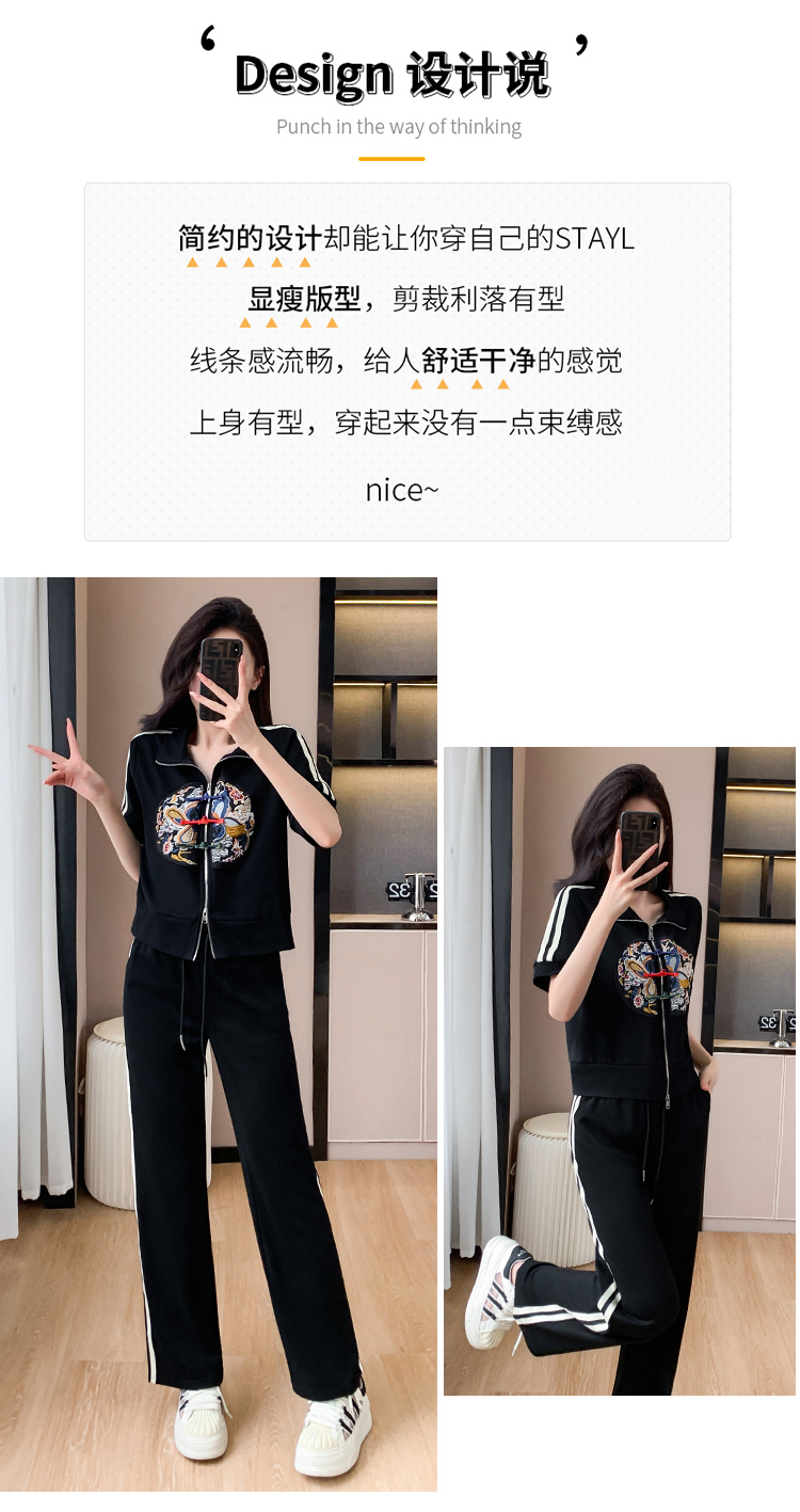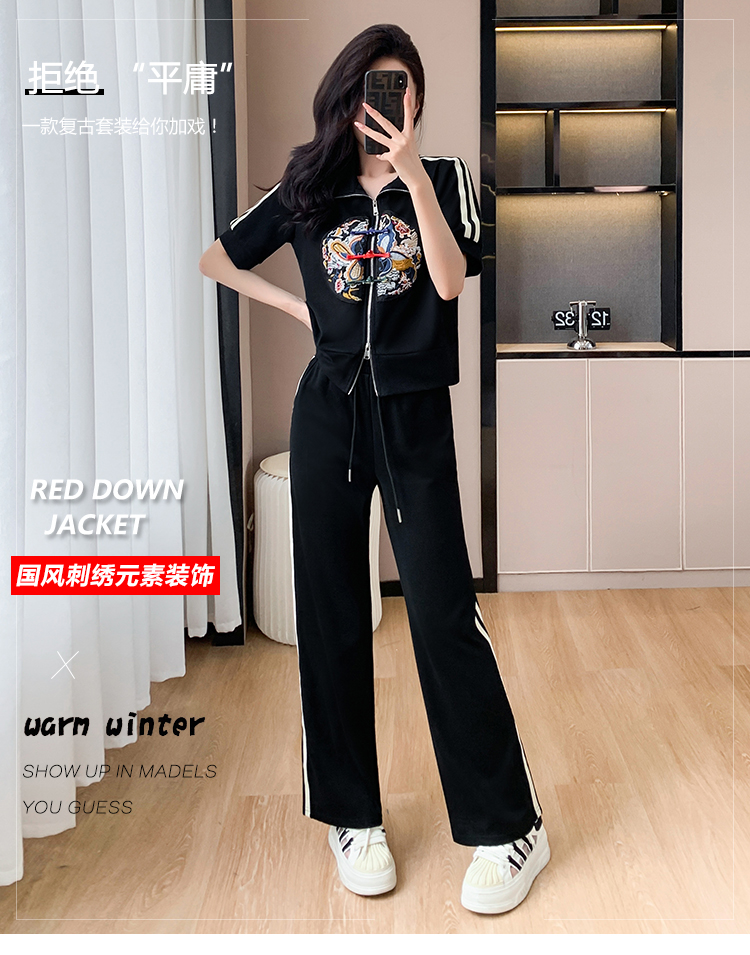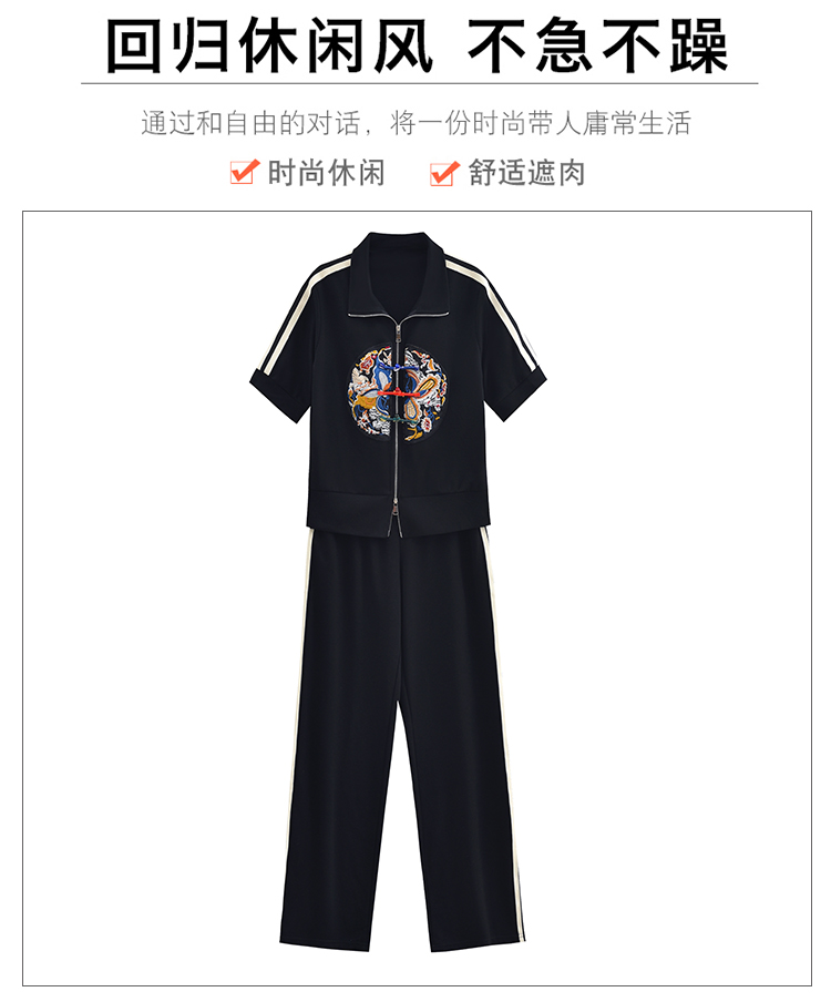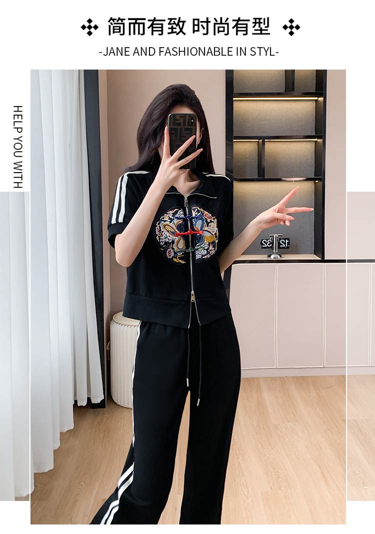 PF4497#夏季新款套装大码女装国风时尚减龄短袖9分裤两件套女裝批發 服裝批發 服裝貨源