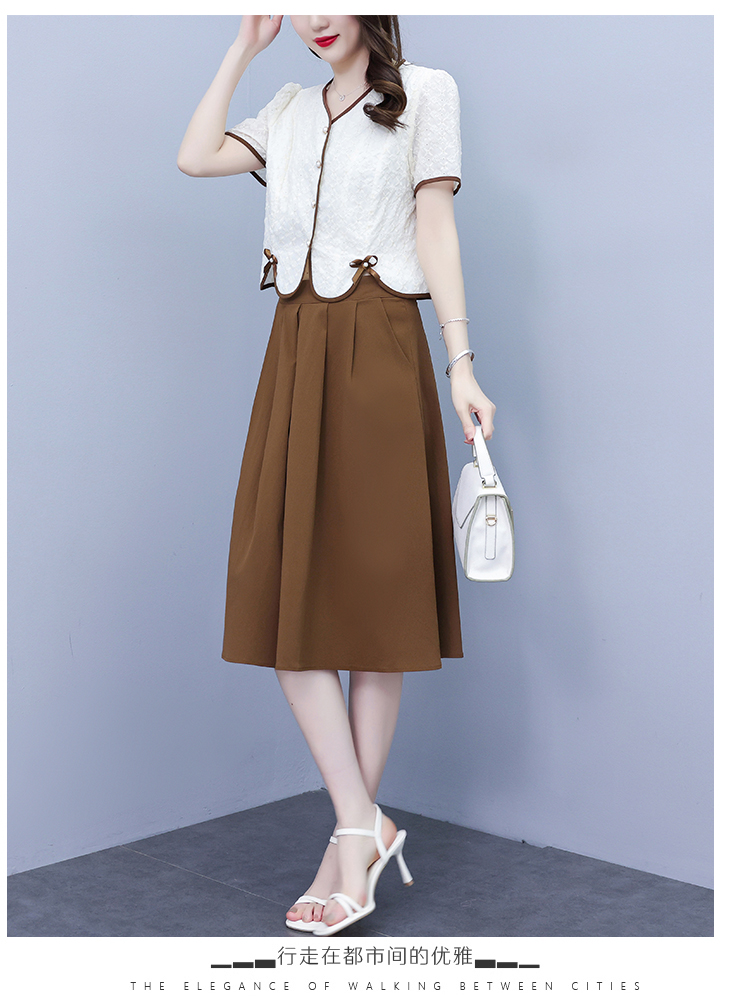 PF4506#夏季新款大码女装小香风上衣+半身裙裙两件套套装女裝批發 服裝批發 服裝貨源